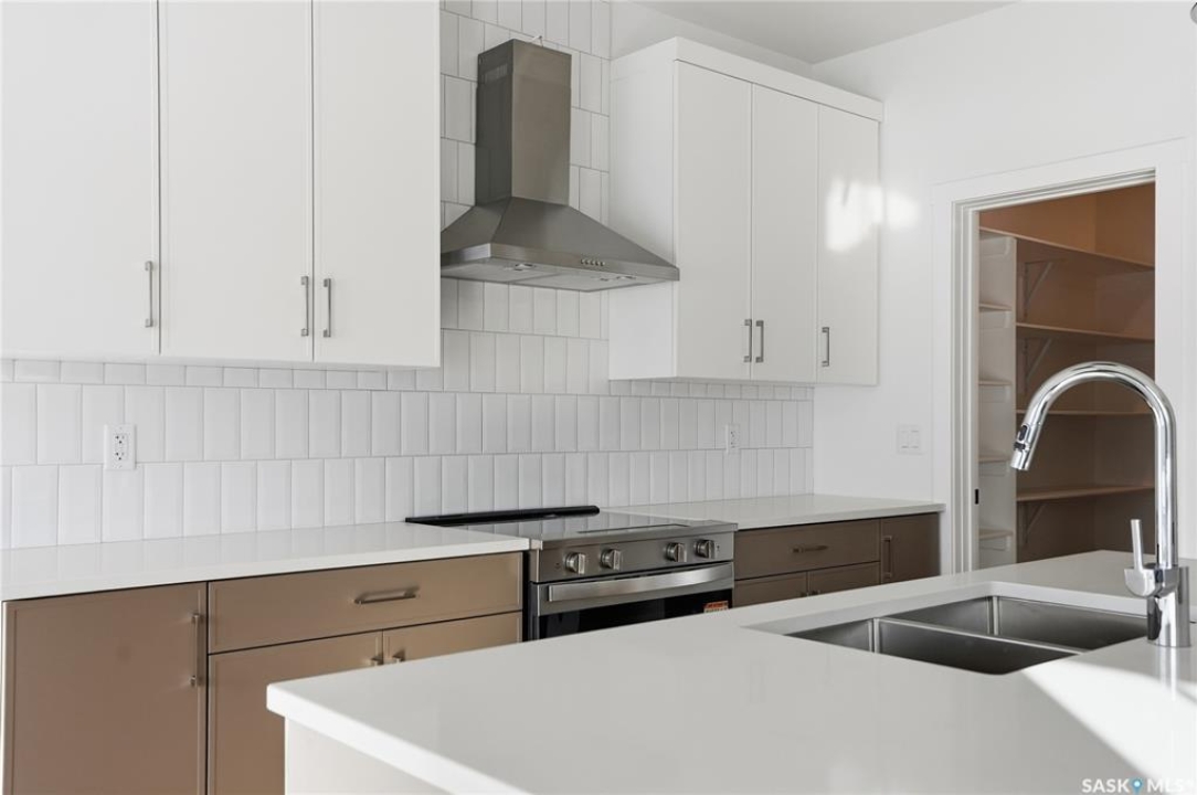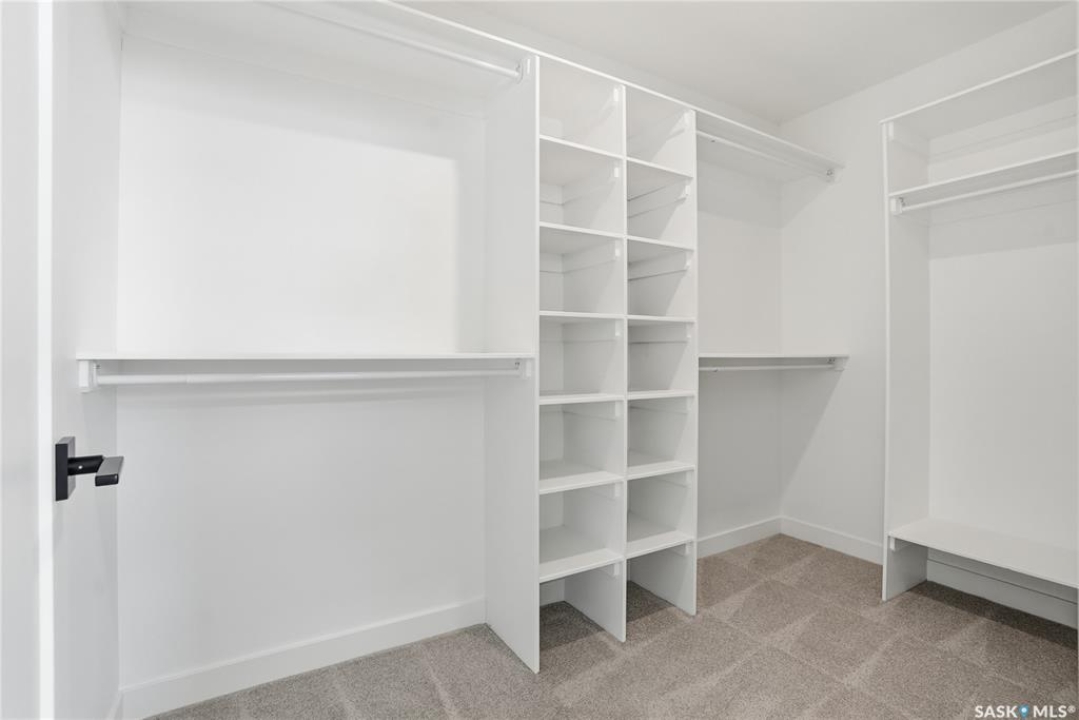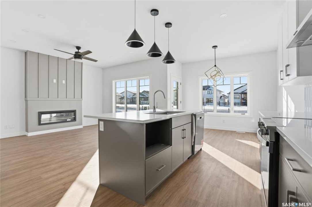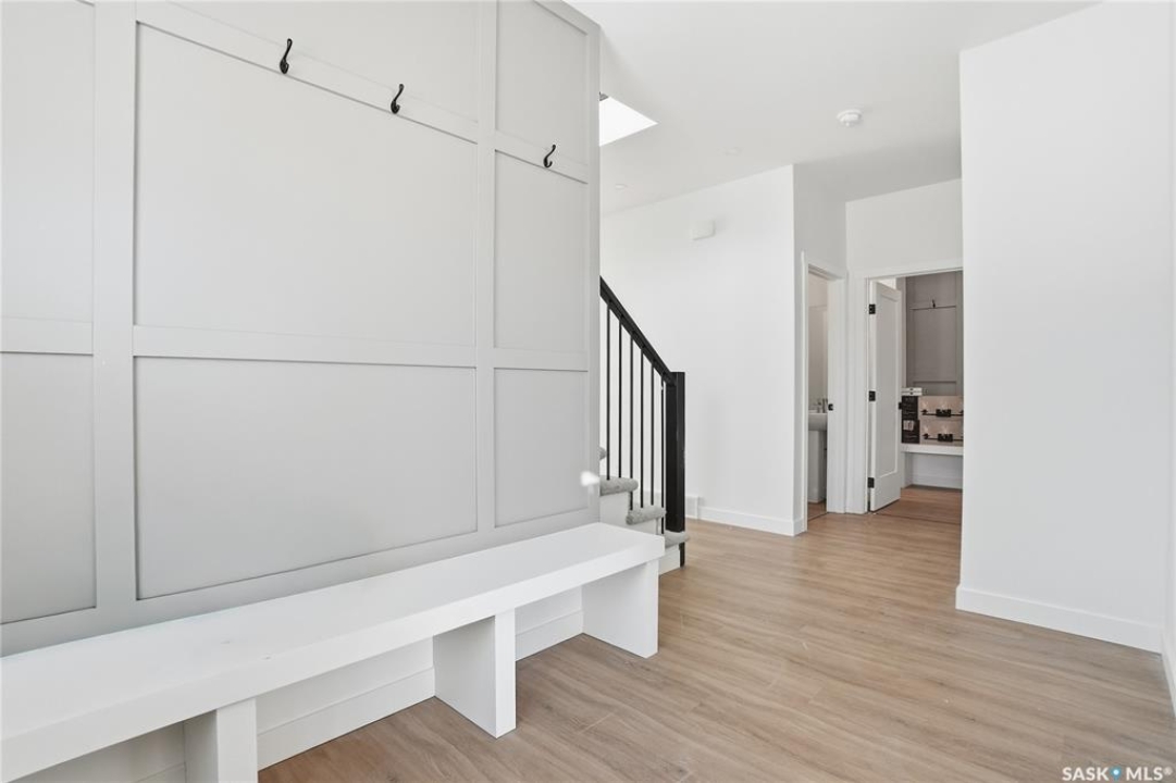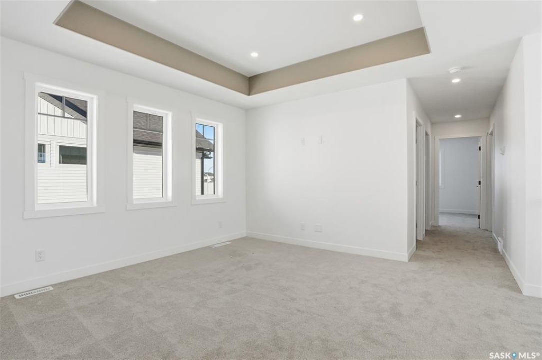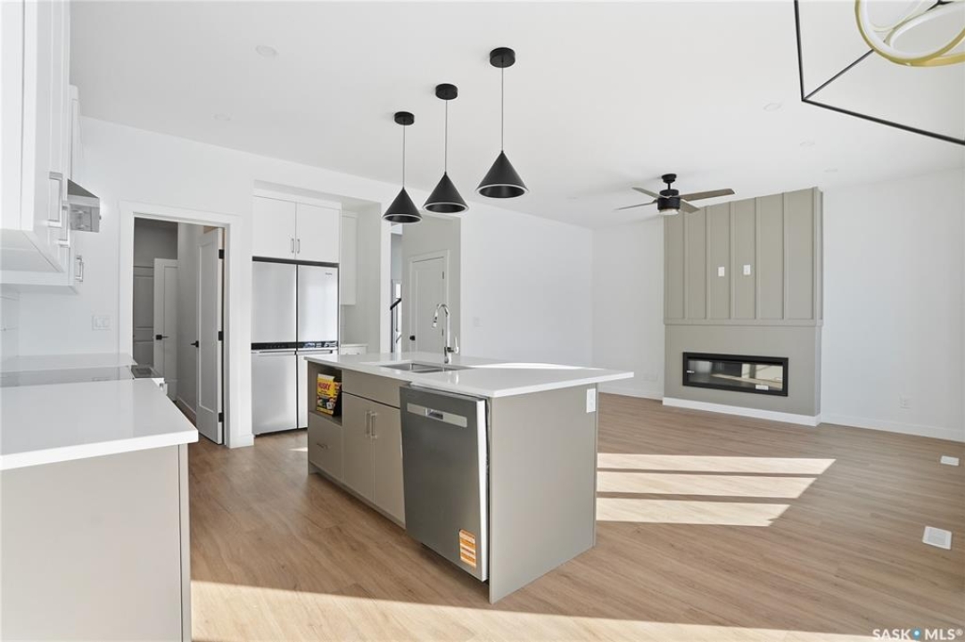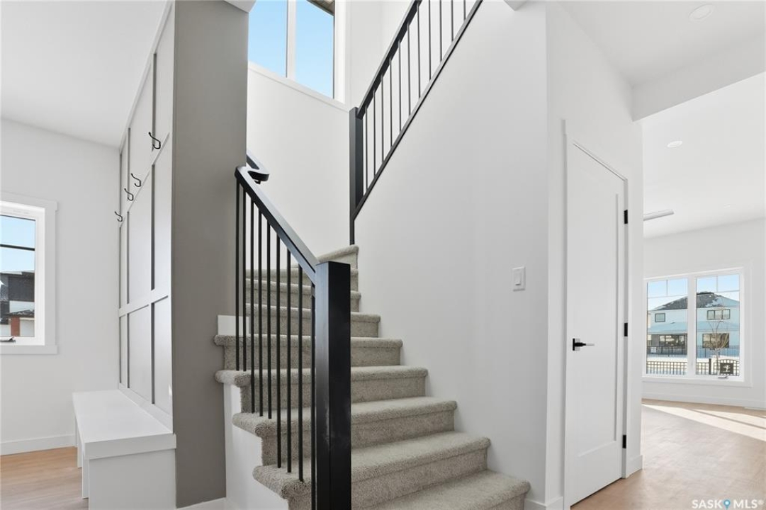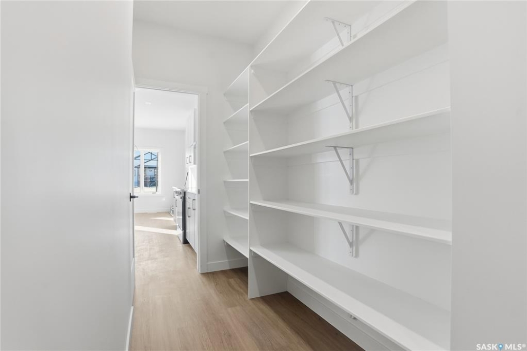 Welcome to another beautiful build by Zimroz Homes, The Frontier. This 1,880 sq ft two-storey offers a functional open-concept layout designed for modern family living, set in the desirable Aspen Ridge neighbourhood and backing onto greenspace. The main floor features a bright and spacious kitchen with quartz countertops, a walk-through pantry, and seamless flow into the dining and living areas. A shiplap fireplace adds warmth and character to the family room, creating an inviting central space for everyday living and entertaining. Upstairs, you'll find a versatile bonus room along with a well-appointed primary bedroom complete with a 4-piece ensuite. Two additional bedrooms and a full bathroom provide comfortable space for family or guests. Additional highlights include a 23' x 21' attached garage, concrete driveway, and a separate side entrance offering potential for a future legal suite or multigenerational living. Backing onto greenspace, this home offers a quiet, private setting with direct access to outdoor pathways—an ideal balance of location and lifestyle in one of Saskatoon's most sought-after communities. Please note: this home is currently under construction. Photos are of a previously built model with a similar layout and may not reflect exact finishes.