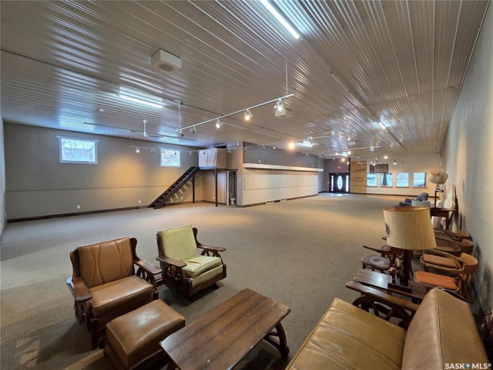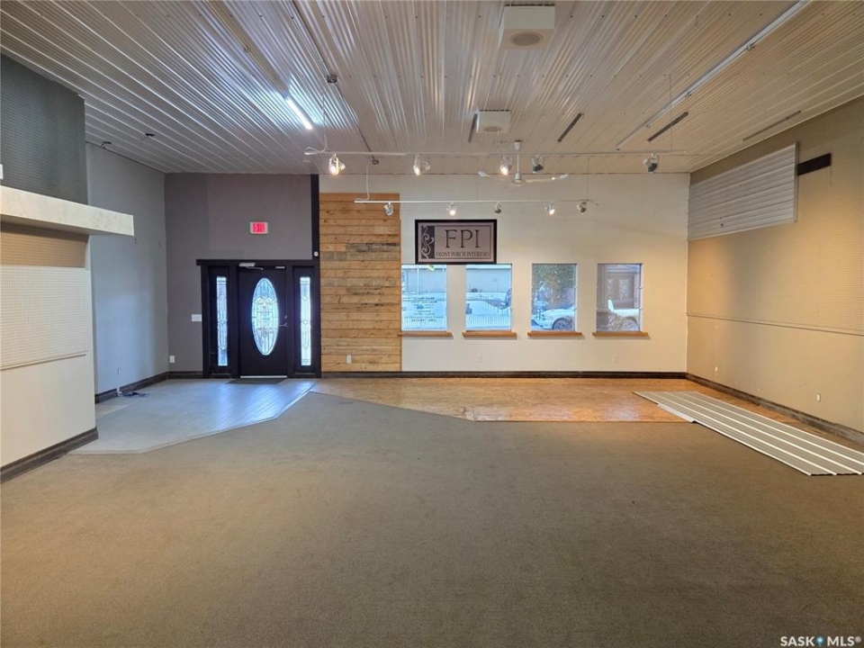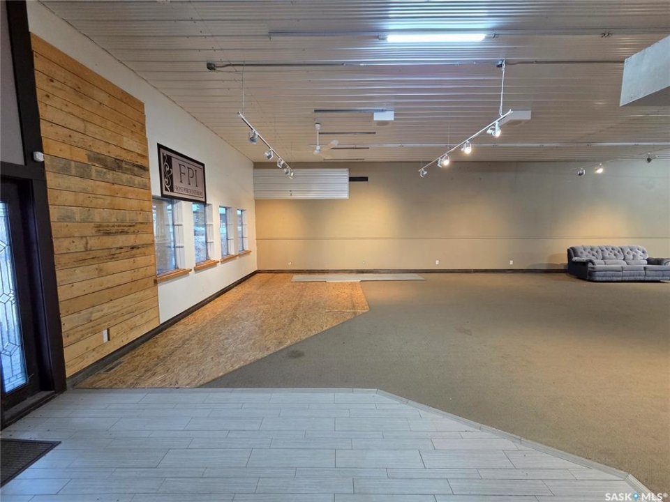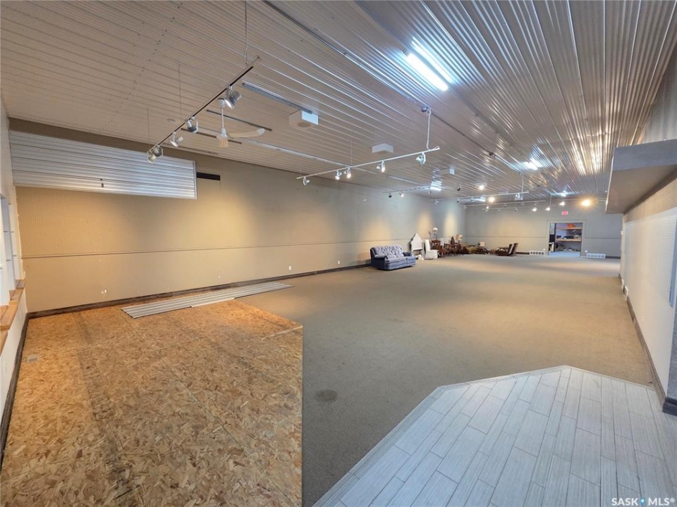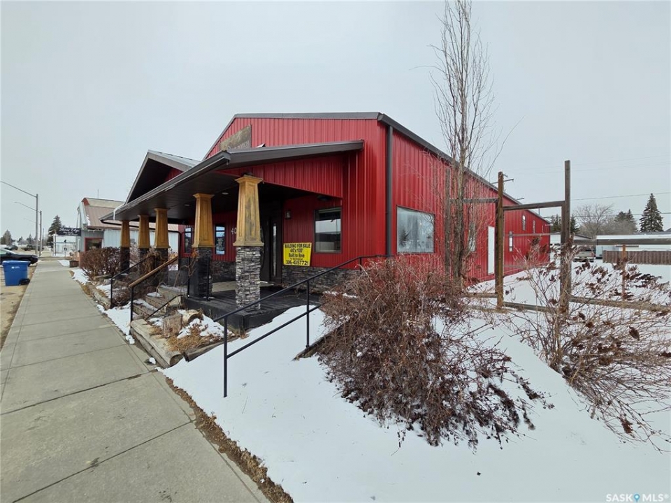 Stunning Commercial Opportunity in Wawota! - Built with the option to be relocated — seller is willing to sell the building to be moved if desired! Welcome to this eye-catching 40 x 100 (4,000 sq. ft.) commercial building located in a prime spot in Wawota—perfect for retail, showroom, or warehouse use! Beautiful curb appeal with a covered front veranda, featuring wood & stone pillars. Durable stone and metal exterior. Large front windows bringing in tons of natural light. New Furnace. Inside, you'll find a bright, expansive space with high ceilings, track lighting, and endless possibilities for customization. Whether you're looking to expand your business or invest in a versatile commercial asset, this property checks all the boxes. Spacious open-concept interior – ideal for retail display or flexible business use, Mezzanine area for added storage, 2 offices, 2 washrooms, and a staff/lunch room, Overhead door at the rear for easy loading/unloading, Wide open layout ready for your vision. Great location in Wawota with strong visibility, parking and access. If moved, it would make an exceptional shop building, acreage headquarters, or even a shop/house conversion.