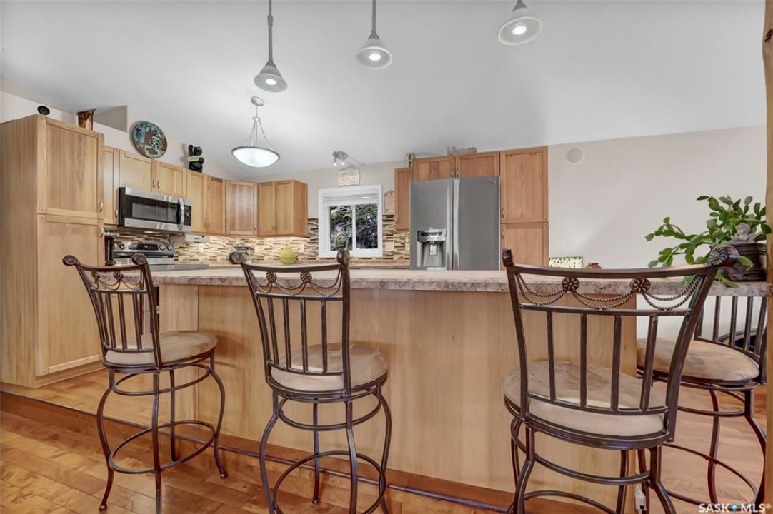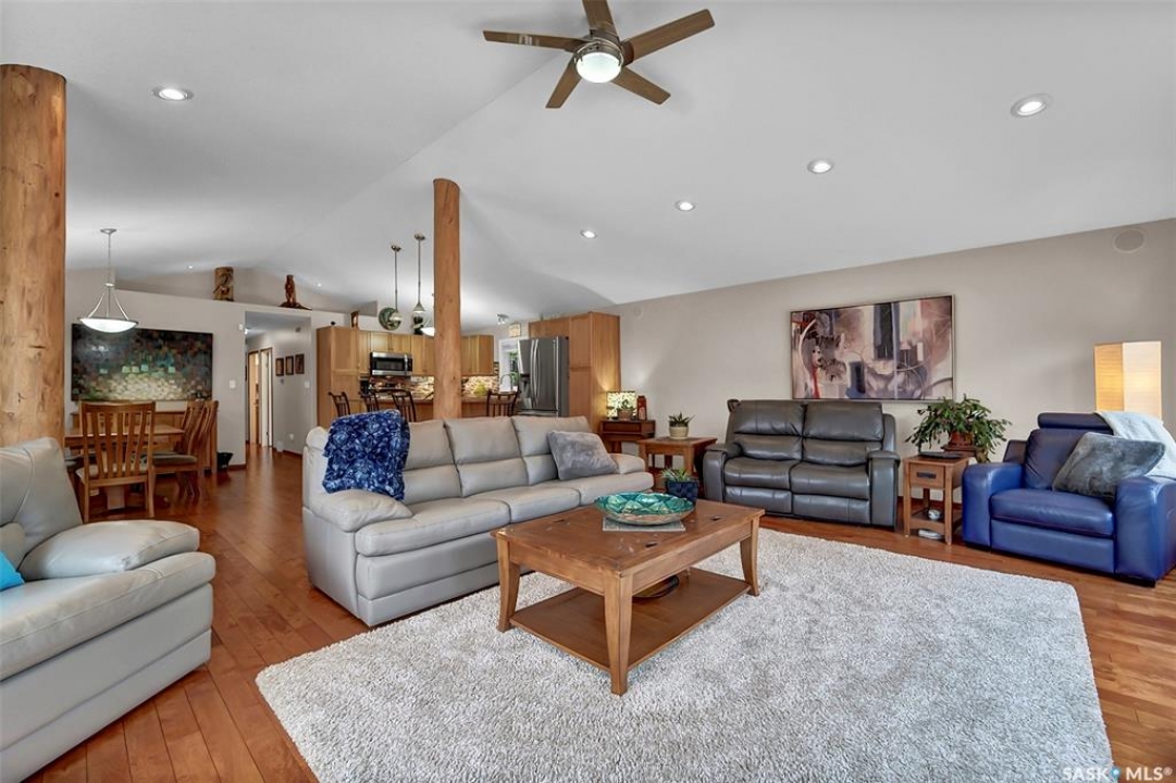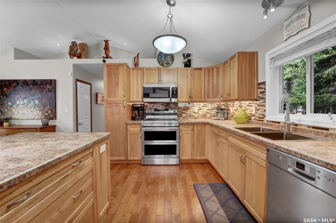 Experience year-round lakefront living at its finest with this beautiful waterfront retreat near Emma Lake. Tucked away on an exceptionally private lot, this property offers all-day sunshine and a peaceful escape just moments from the Emma Lake Golf Course. Meticulously maintained and in impeccable condition, the home welcomes you with an open-concept main floor designed for both comfort and style. Soaring vaulted ceilings elevate the living room, while the spacious kitchen—complete with an oversized island—flows seamlessly into a wall of floor-to-ceiling windows that bathe the space in natural light and showcase breathtaking views. The generous primary suite is a true sanctuary, featuring a beautifully appointed three-piece ensuite and a large walk-in closet. Two additional bedrooms provide plenty of space for family and guests. Step outside to an expansive deck highlighted by striking post-and-beam accents—perfect for entertaining or simply relaxing in the serene surroundings. The property also boasts a heated 24x24 detached garage, additional storage sheds, and ample parking, including space for an RV. The thoughtfully landscaped yard offers a cozy fire pit area, garden space, and direct access to Beaver Lodge Lake via your private dock—ideal for kayaking, canoeing, and enjoying pristine, fresh-water living. For added peace of mind, the home is equipped with an automatic Generac backup system, ensuring uninterrupted comfort year-round. This exceptional property truly must be seen to be fully appreciated.