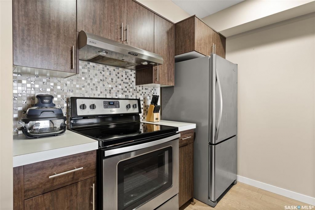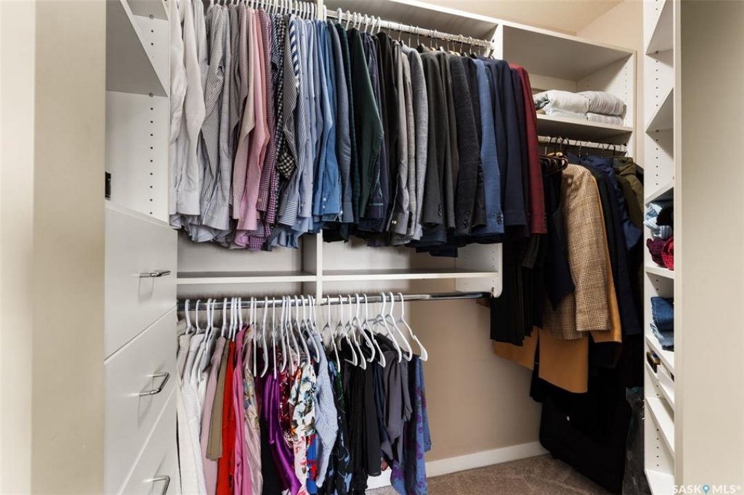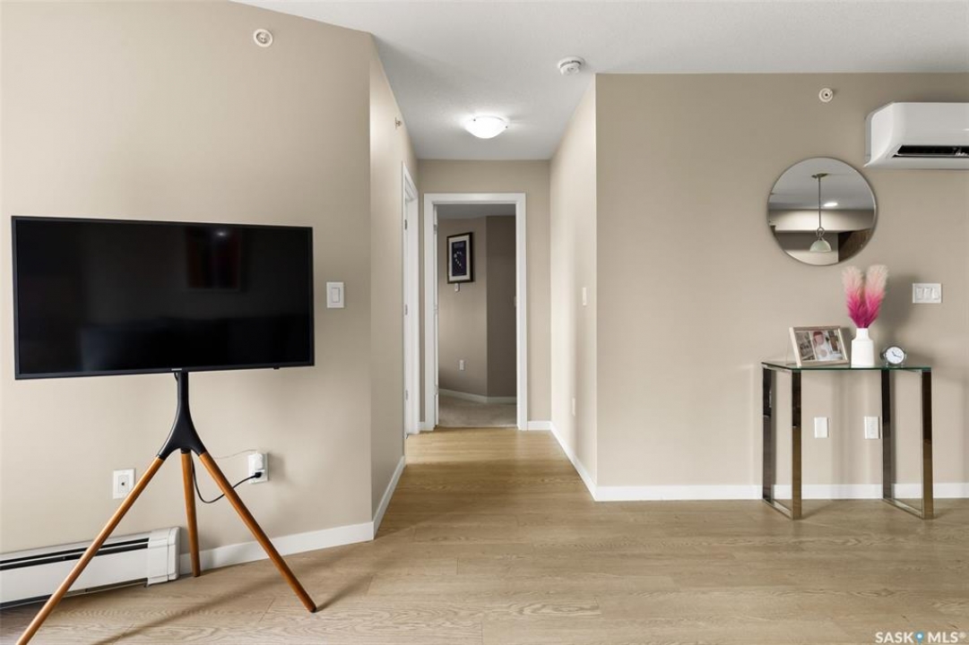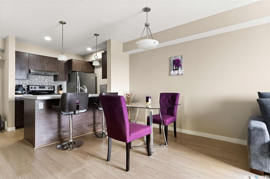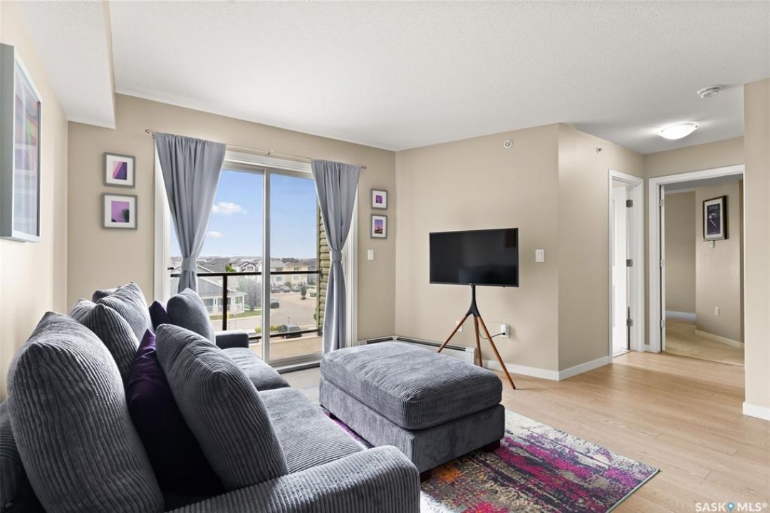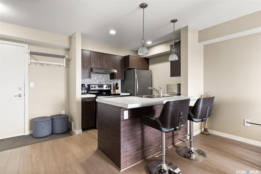 This top-floor Harbour Landing condo offers 2 bedrooms, 2 bathrooms, heated underground parking, and only one neighbouring unit. One of only a few built with this design, it also features an extra half foot of ceiling height for an even more spacious feel. South-facing exposure fills the open-concept living, dining, and kitchen area with beautiful natural light. Both bedrooms feature custom closets by Simply Stowed Custom Cabinets, and the laundry room provides extra in-suite storage. The Washer and Dryer were replaced in July of 2025, and condo fees include heat, water, and sewer for added everyday value and lower utility bills. Close to schools, daycares, parks, and all Harbour Landing amenities, this home offers comfort, convenience, and excellent value.