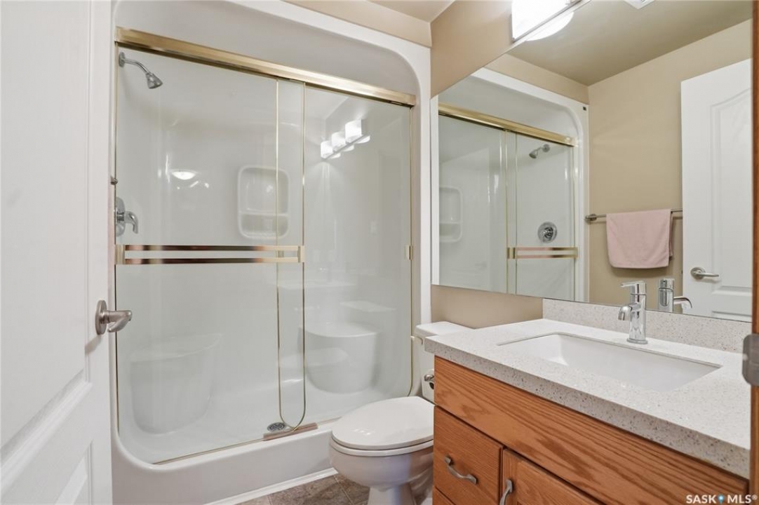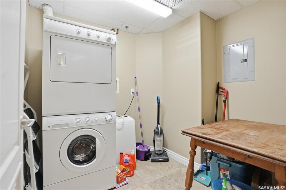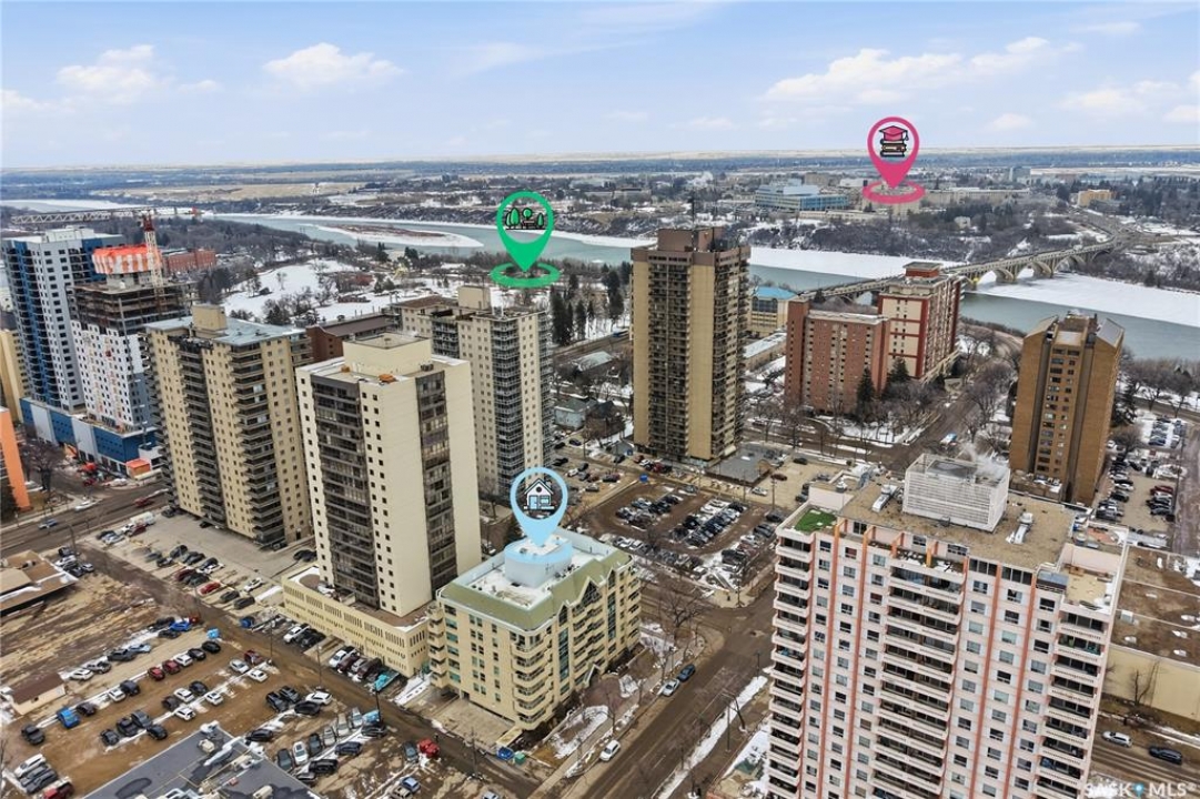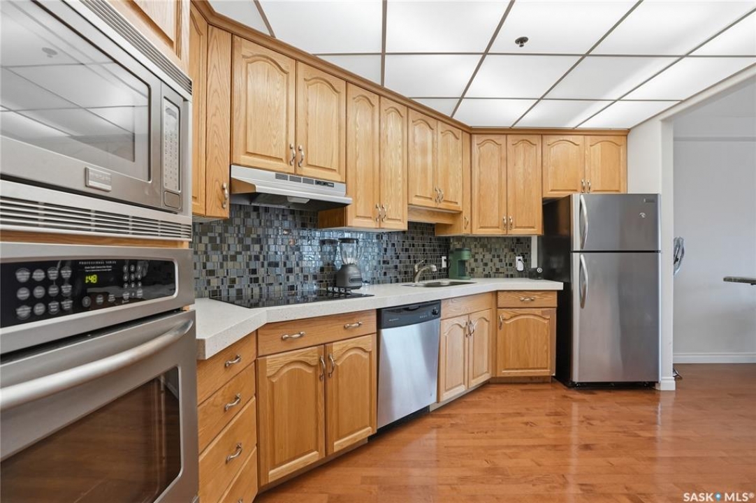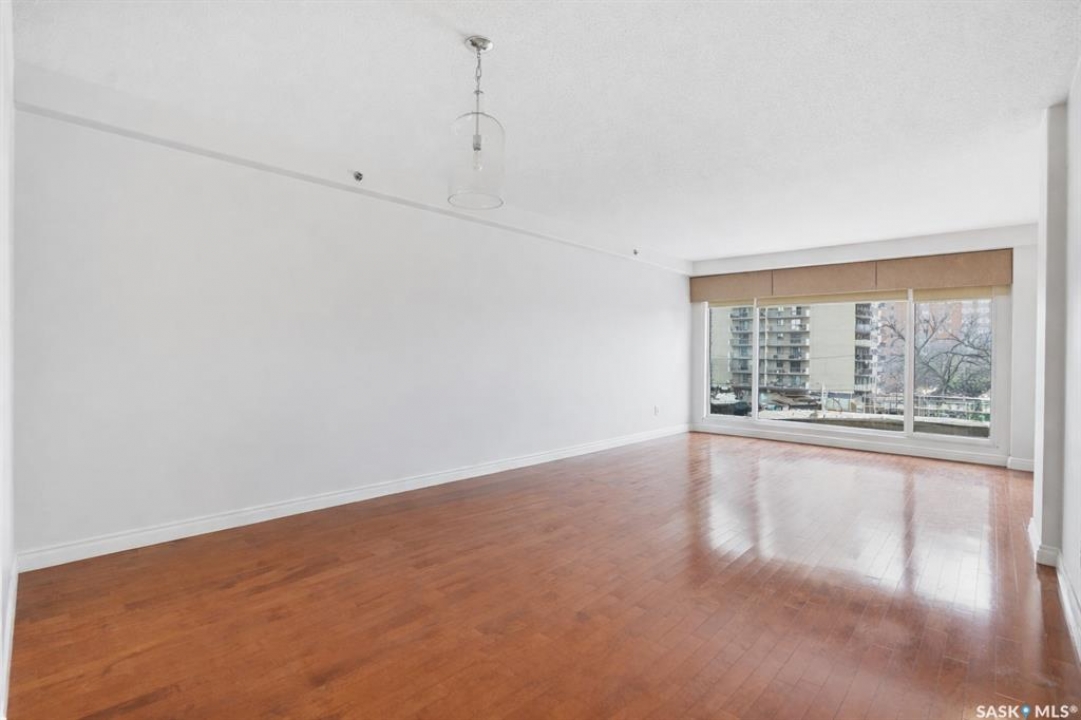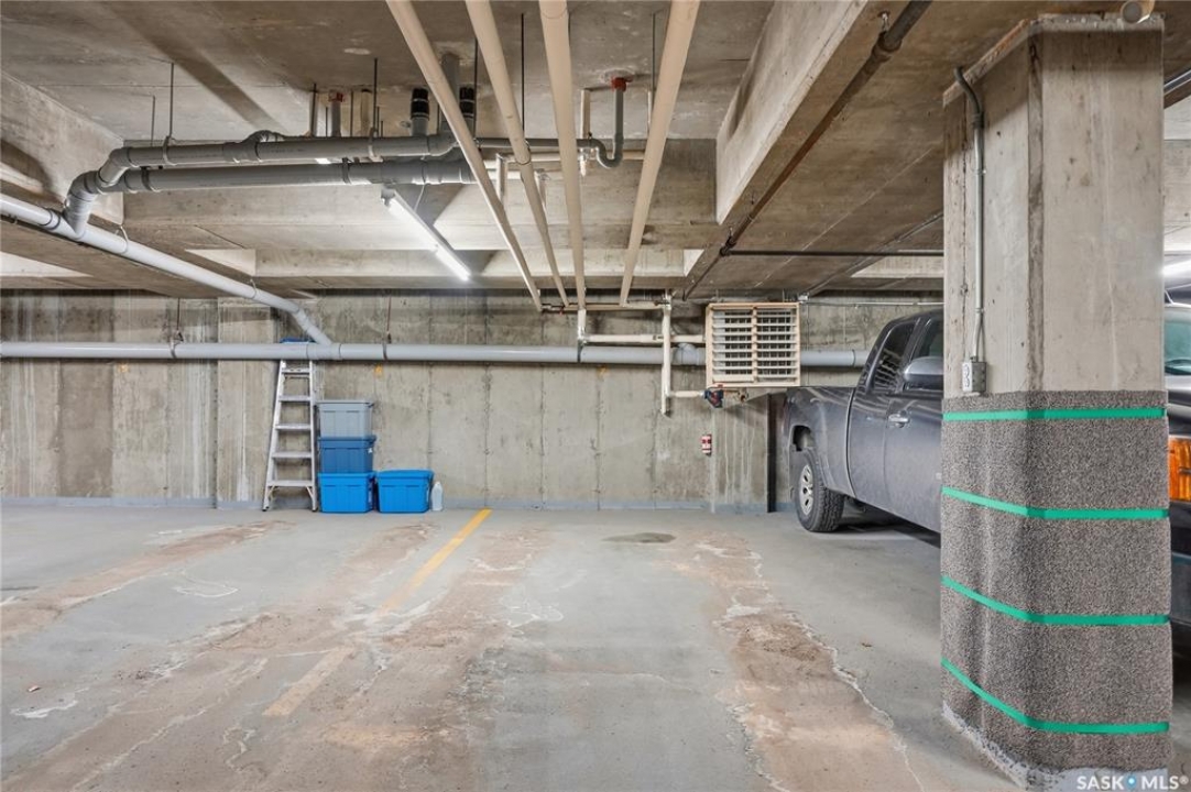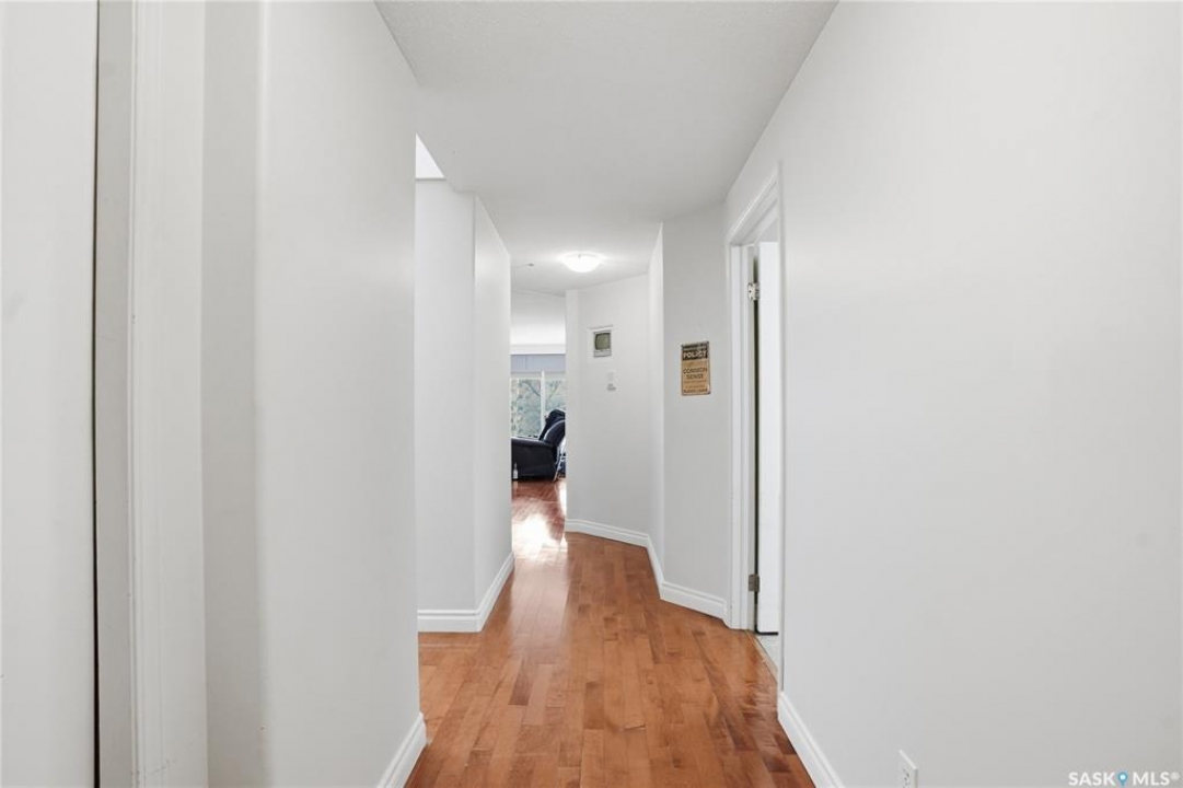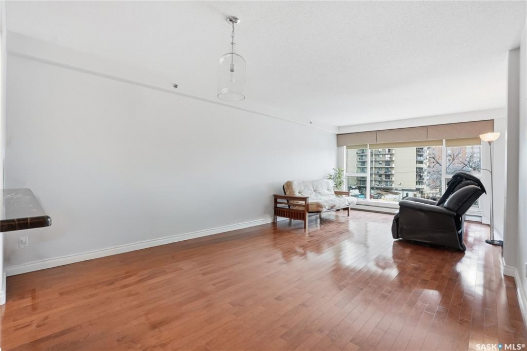 Welcome to Waterford on 5th Avenue North—one of the city's most desirable addresses. Perfectly positioned just a couple blocks from the South Saskatchewan River and Meewasin Trail, this exceptional condo offers the ideal blend of natural beauty and urban convenience. This spacious 2-bedroom, 2-bathroom bungalow-style unit features over 1,100 sq. ft. of refined living space with upscale finishes throughout. The open-concept layout is highlighted by rich hardwood flooring, granite overlay countertops, stunning backsplash, built in appliances and large windows that flood the living area with natural light while the balcony faces the front of the building towards the river. The primary bedroom is a private retreat, complete with a walk-in closet and a 3-piece ensuite. A second bedroom and full bath provide flexibility for guests, family, or a home office. Enjoy the added convenience of in-suite laundry, underground parking, storage #11 and access to a well-appointed amenities room. Step out onto your private balcony to relax and take in the serene surroundings. This condo truly checks all the boxes—style, comfort, and an unbeatable location walking distance to U of S and City Hospital. Don't miss your chance to call it yours.