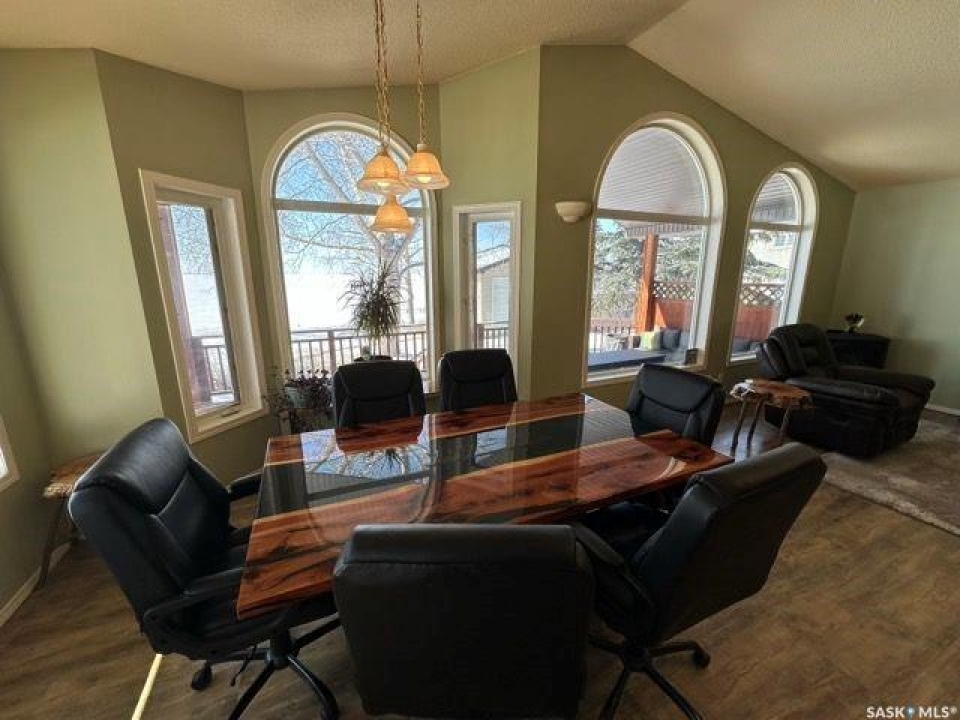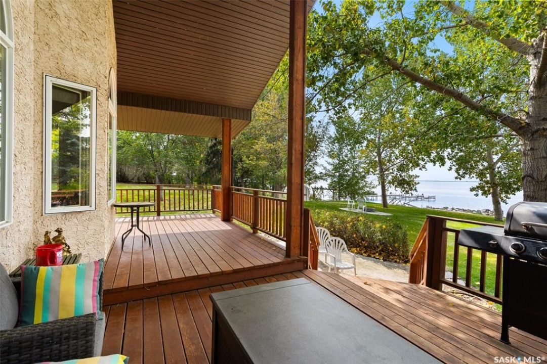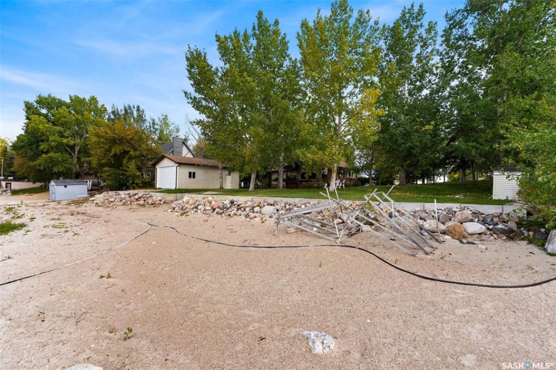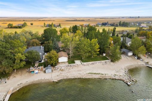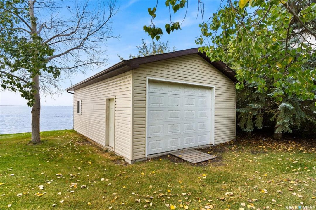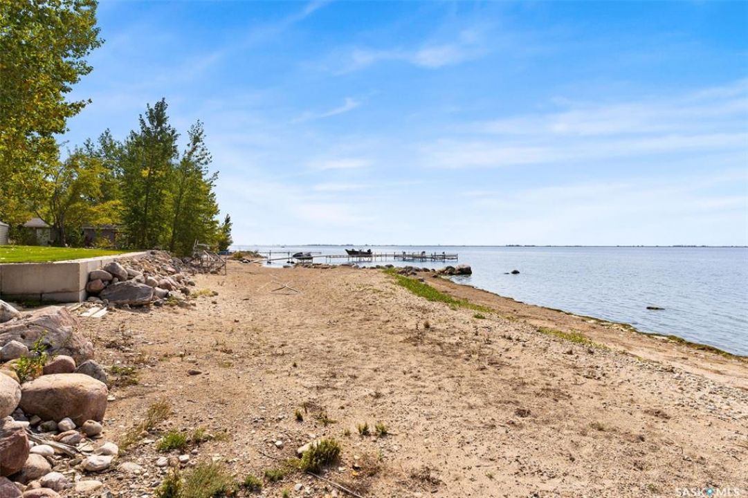 Check out this Fabulous waterfront property (144' of sandy beach) with oversize double car garage and an additional boathouse garage at Collingwood Lakeshore Estates just 1 hour North of Regina on Last Mountain lake. There is an ADDITIONAL titled lot across the street for future building or additional parking and storage that is included in the sale. This beautiful fully landscaped yard is so private with mature trees, underground sprinklers and numerous patios totalling just over a 1 acre land. Walking up to this 4 season home you automatically see has so much the property has to offer with a beautiful covered private deck just off the front entry which is absolutely perfect for those morning coffees. The smart design of the house gives you breathtaking west views of the lake. Stepping into the foyer you immediately see the modern entertainers kitchen which overlooks the livingroom and dining room with 14' vaulted ceiling with feature natural gas fireplace all overlooking west views of the lake the lake with oversize windows. The fabulous kitchen with granite countertops has a large breakfast island and comes complete with stove, fridge, built in dishwasher and microwave hood fan. The dining area is conveniently set off to the front and side of the great room with direct exit to another covered deck. The large primary bedroom has a convenient 3 piece ensuite. There are 2 additional bedrooms, 4 piece bath and a laundry /storage room that completes the home. The detached drive thru boat house garage is perfect for all of your toys. The detached double car main garage is also heated. This home is an absolute gem and is such a pleasure to show. For a virtual walkthru please click on link or view https://unbranded.youriguide.com/194_gordon_drive_collingwood_sk/