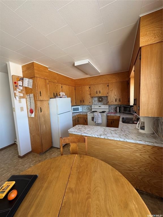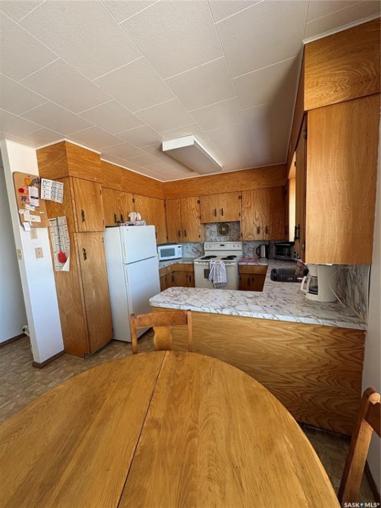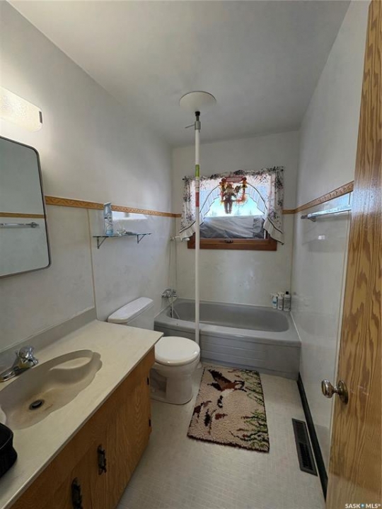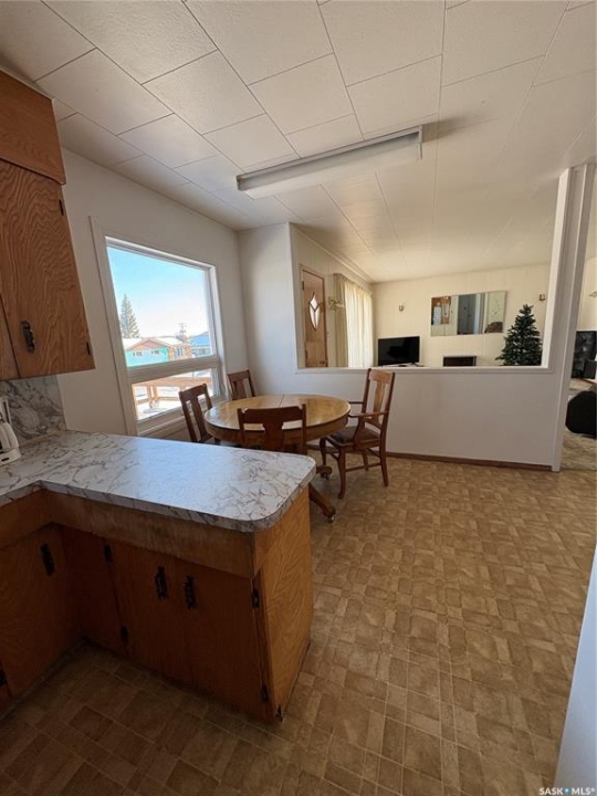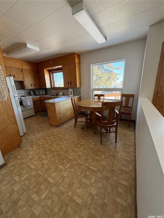 Great size family home, on double lot, with mature trees, single detached garage, garden area and large shed in the heart of Kelvington. This home has three bedrooms and one bath on the main floor with large family room, bedroom and bathroom in basement. Some noted features include shingles replaced apprx three years ago, HE furnace and central air conditioning two years ago. Possession no sooner that June 1, 2026. We are ready for showings so call your agent today.