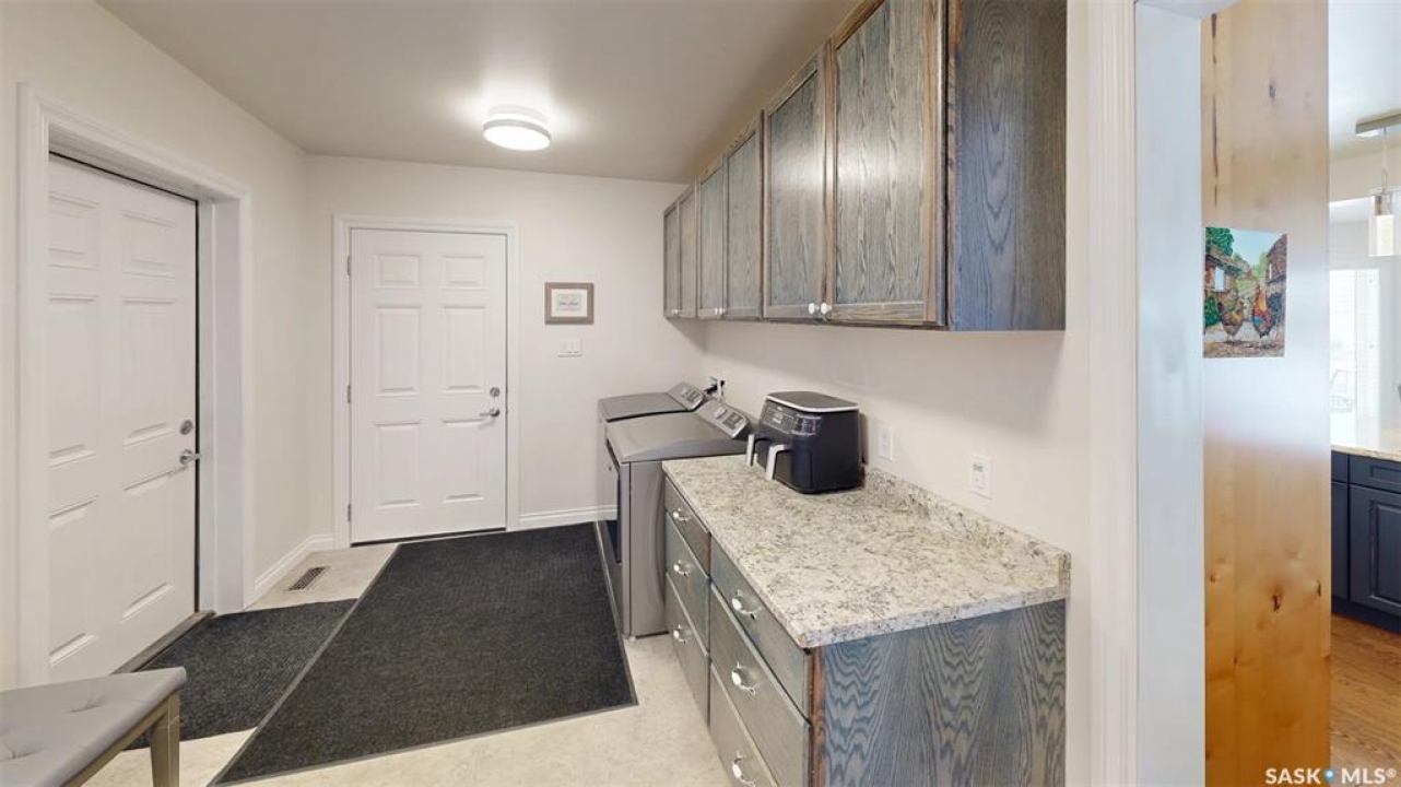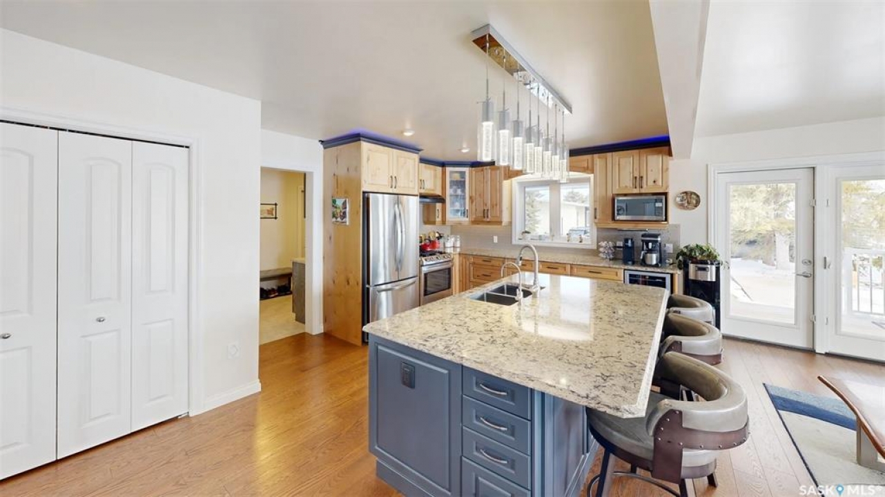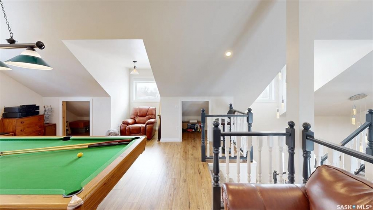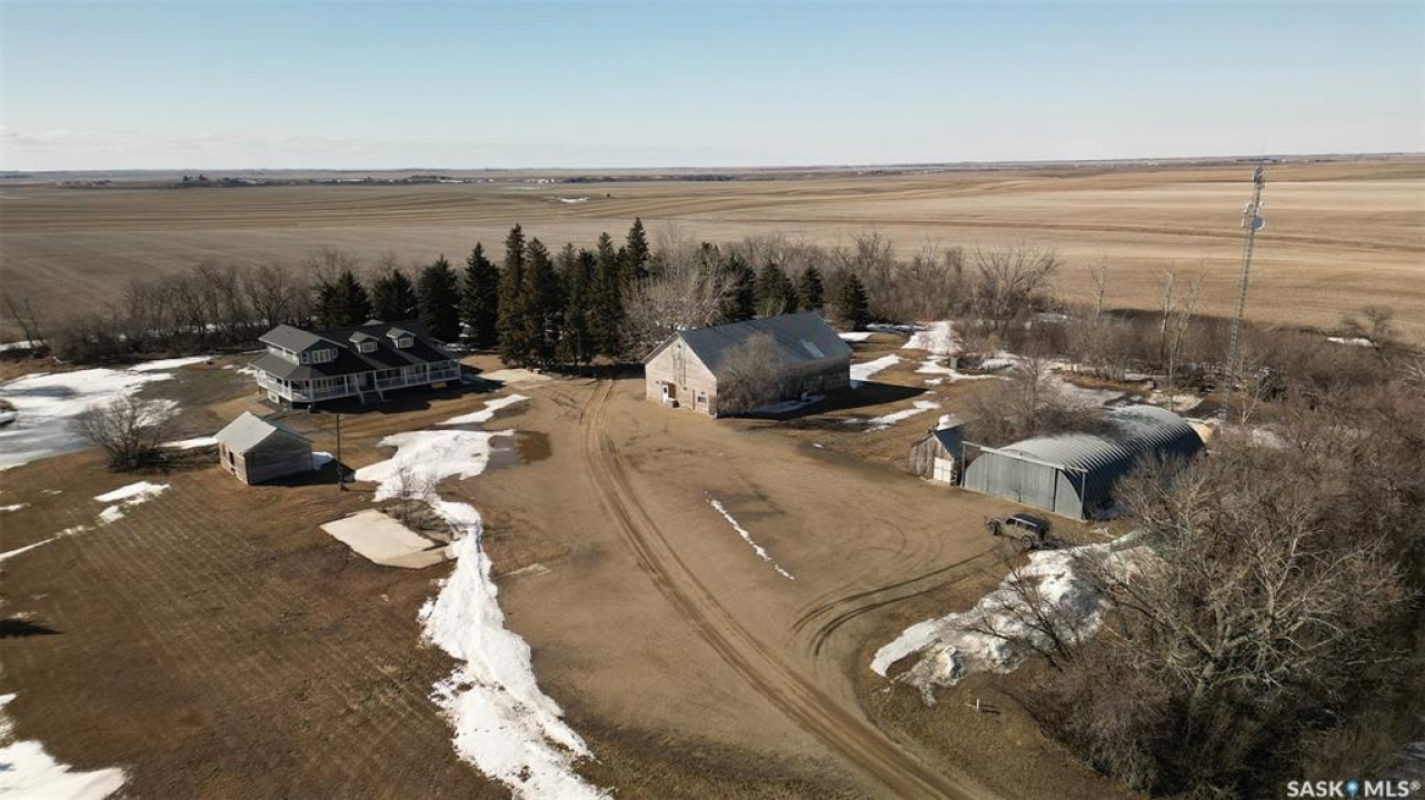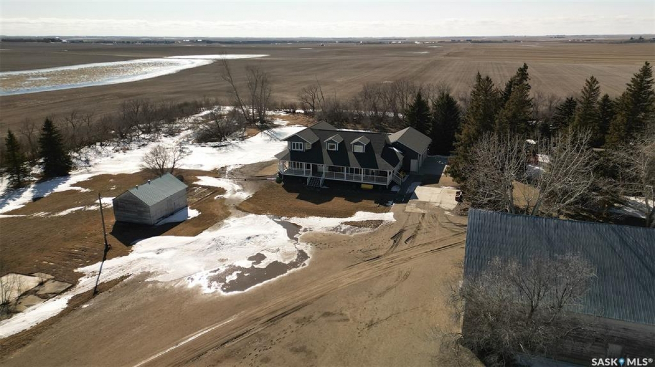 Welcome to the Bruce Acreage. This one-of-a-kind acreage is located 1 mile N of the Sherwood Forest Rd & Armour Rd NW of the City of Regina, Sk. Built in 2017, this 3 bedroom Custom Nelson home package on 19.29 acres features a direct entry attached 3 car garage, energy walls with additional 2" Styrofoam insulation, Hardie board siding, 2 full baths, 2 half baths plus a upstairs games room that includes a pool table. Mature landscaping of evergreens, poplars & assorted shrubs along with out buildings that consist of a 36' x 30' bungalow converted to a heated workshop, metal clad roof barn 40' x 70' that still has the stalls in it, ideal for horses, etc. metal Quonset–35' x 70', another workshop 14' x 24' & garden area. The building just by the house is not included & will be removed. The mature landscaping on the south side of the property is on the neighbouring � and new owners will be able to use the shade of the trees plus the lawn. The current owners keep the grass mowed. There is no easement at present just a hand shake agreement for the use. The cultivated 10 acres that belong to the acreage are rented out on a year to year basis. The crop belongs to the tenant. The owner receives a cash rent. Features: Triple glazed JELD-WEN windows, Hardie board siding, Kinetico water softener, Viqua Ultra Violet water treatment system, Culligan reverse osmosis system. The UV & RO systems were installed in 2020. Lennox high efficient furnace & Lennox c/air, Kitchen Craft custom built cupboards with quartz counter top, large island, gas stove, refrigerator, dish washer, wine fridge, main floor laundry appliances new in 2025, 3 person energy efficient low EMF FAR Infrared sauna, basement upright freezer, basement refrigerator, wrap around deck, 160 foot well, septic system installed in 2016. The TV is satellite–Shaw & there is an internet tower in the yard. Awaiting new owners, for further information or a viewing contact the selling agent or your real estate agent.