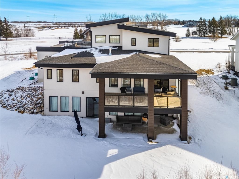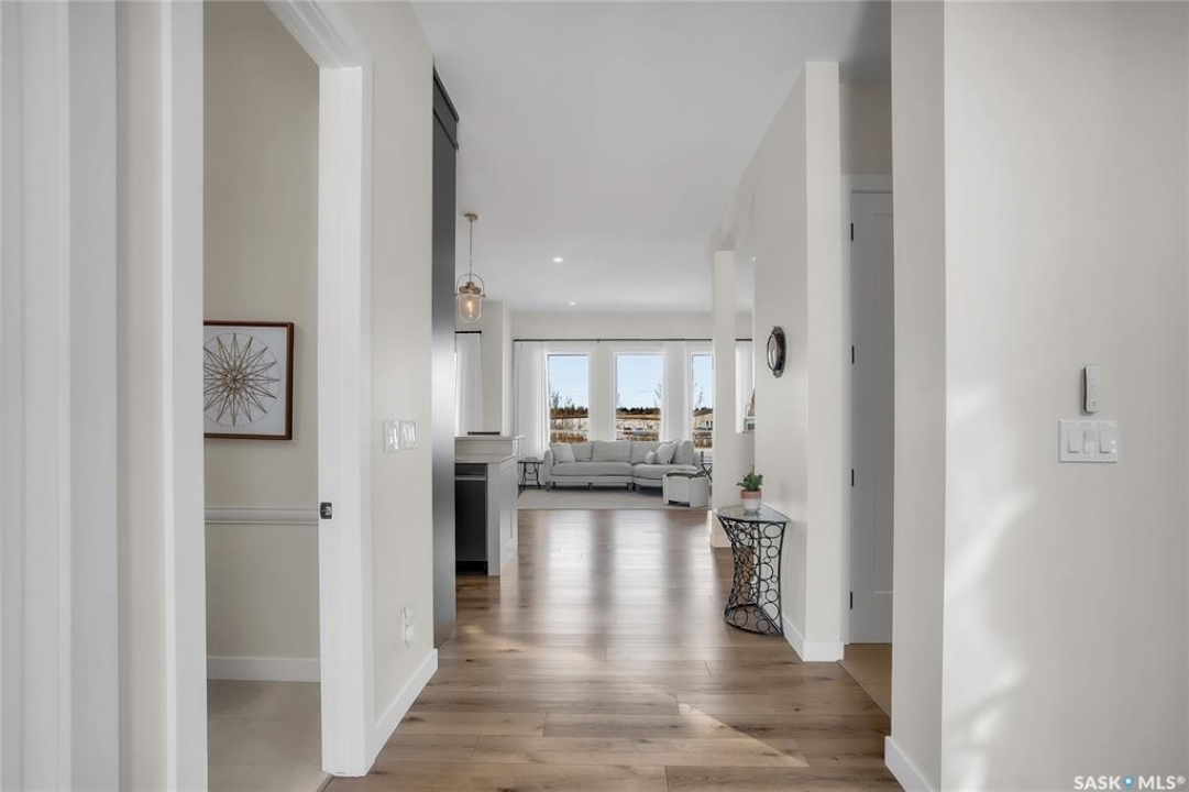 A rare opportunity in Greenbryre—crafted for those who expect more. This impressive 2,352 sq ft walk-out residence offers 4 bedrooms, 4 bathrooms, and an elevated living experience on a prominent corner lot just moments from the golf course. The main floor features a bright and functional layout with large windows providing abundant natural light. The living room is anchored by a stone gas fireplace, creating a warm and inviting space. A covered deck extends off the main living area, offering additional outdoor living space. The kitchen is well-appointed with ample cabinetry, a farmhouse sink, and a butler's pantry with built-in microwave. A dedicated den/office is located on the main floor, along with a spacious primary bedroom. The primary suite includes a 4-piece ensuite with double sinks, a custom walk-in shower, heated flooring, and a walk-in closet with direct access to the laundry room. The second level features a bonus room, two additional bedrooms, and a 4-piece bathroom. A rooftop patio provides additional outdoor space. The fully developed walk-out basement includes a wet bar, gym area with patio access, an additional bedroom, and a 3-piece bathroom. Additional features include a 26' x 28' heated attached garage and a four-car concrete driveway. Located in a desirable area with convenient access to amenities, this property offers a combination of space, functionality, and location.
