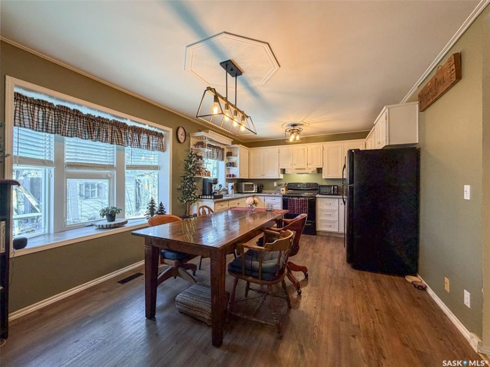 Welcome to 118 Cedar Avenue N in Eastend, SK — a charming & well-updated character home that blends timeless appeal w/modern efficiency. Originally built in 1926 w/thoughtful additions in 1996, this home offers comfortable living, smart upgrades & excellent functionality both inside & out. Step inside to a bright & inviting main floor where bay windows in the living room fill the space w/natural light. The home features 2 spacious bedrooms, 1 of which could easily double as a home office thanks to its beautiful bay window feature. The 4-pce bathroom/laundry combo on main floor adds convenience, while the kitchen/dining area also benefit from bay windows. Downstairs, the basement offers additional versatility w/ a den that could function as a secondary kitchen space, already equipped w/a sink & oven hookups. You'll also find a 4-pce bathroom, utility room & a cold storage area, along w/an insulated crawl space for added efficiency & storage. This home has seen extensive updates including a new furnace(2024), on-demand hot water heater(2024), updated stack, mostly updated water lines & a 100-amp panel. Roof was replaced & reinforced in 2012, featuring durable metal shingles designed to look like cedar shakes, backed by a 50-year warranty on both the home & garage. The property also includes a 19x22 fully insulated single detached garage(unheated) w/a 60-amp panel & 220V plug, along w/a convenient lean-to & gravel drive & 2 sheds & a landscaped area featuring a firepit and patio with log swing, pear tree and mature bushes. A standout feature is the installed generator system, capable of powering key components of the home including the furnace, sump pump, water heater, fridge, deep freeze & main living area—offering peace of mind during outages. This home can be considered an eco energy retrofit home, meaning it has been upgraded over time w/energy-efficient systems & improvements reducing energy consumption, increase reliability & enhance long-term cost savings.