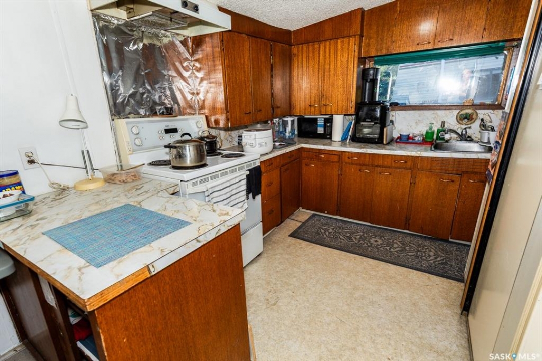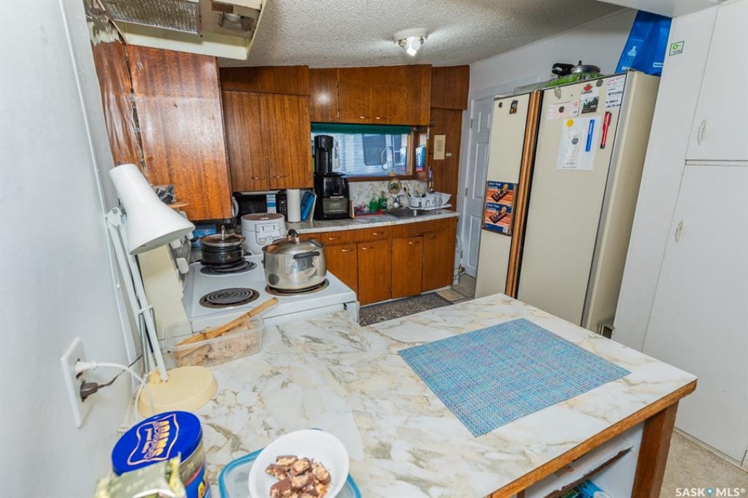 Tiny house.. approx. 560 sq. ft. Large lot: 112.5 x 120. with a 10 x 20 outbuilding. The owner is selling as is, some furniture, dishes, if the buyer wants these items, they will be included. 2 beds, 2 baths. 560 sq. ft. bungalow. Basement has a separate entrance, owner has rented this out in the past. Ceiling height is lower than 8 ft. in this home, does not show in the photos. Potentially there is a large pavement levy of $20,000+. Buyer should consult with the Town of Kerrobert admin. regarding the pavement levy and how it may affect this property If you are unable to view this property in person, you will require a different realtor than the listing realtor to offer on this property.