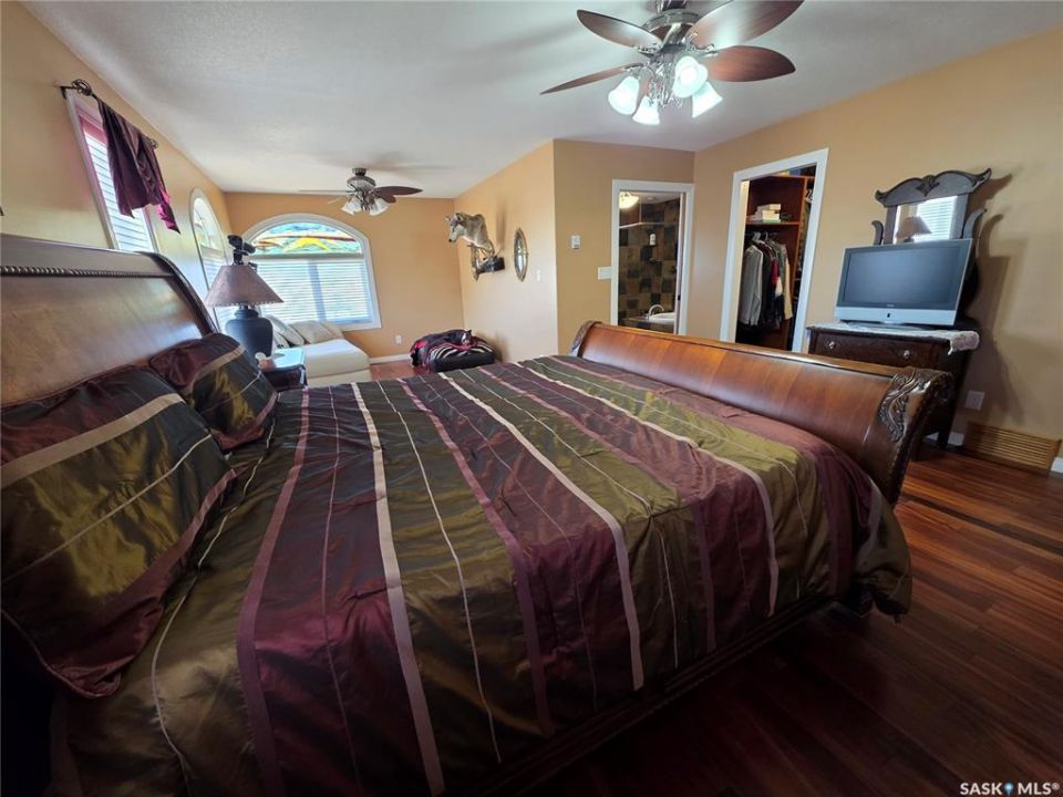 Nestled on the serene shores of pristine Reid Lake, just northwest of Simmie, SK, this stunning year-round waterfront home at 47 Ferguson Bay Resort offers comfort, style, and outdoor adventure. Boasting breathtaking views and direct lake access, this property is a dream for nature lovers and boaters alike. The beautifully updated kitchen features sleek granite countertops, an island with seating, and ample cabinetry for storage. Adjacent, the dining area provides a scenic spot to enjoy meals with a view. The expansive living room is a true showstopper, featuring a cozy wood-burning stove that creates the perfect ambiance for chilly evenings. Large windows let in an abundance of natural light while offering stunning lakefront views. A convenient 2-piece bathroom completes the main floor layout. Upstairs, the two spacious bedrooms offer plenty of comfort and privacy. The impressive main bedroom includes a separate seating area, tiger hardwood floors, a walk-in closet, and a stunning 4-piece ensuite that was once featured in a magazine. The second bedroom is bright and spacious, ideal for guests or family. A combination laundry/3-piece bathroom on this level adds extra convenience with same-floor laundry facilities. Aside from the attached 24x26 heated garage, the 18x48 boat house provides ample storage, keeping watercraft and gear secure and ready for adventure. A private dock extends into the water, offering easy access for boating, swimming, and fishing. The screened-in deck is perfect for relaxing, providing a bug-free, wind-protected retreat to soak in the sights and sounds of lake life. Designed for year-round enjoyment, this home includes all-season utilities, efficient heating for winter comfort, and central air conditioning for hot summer days. With an unbeatable waterfront location, a thoughtfully designed interior, and exceptional outdoor features, this home is the ultimate lakeside escape. Don't miss your chance to own this incredible piece of paradise!