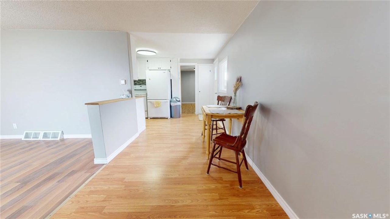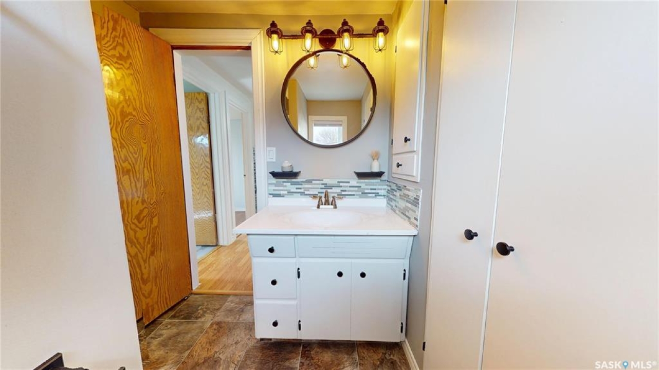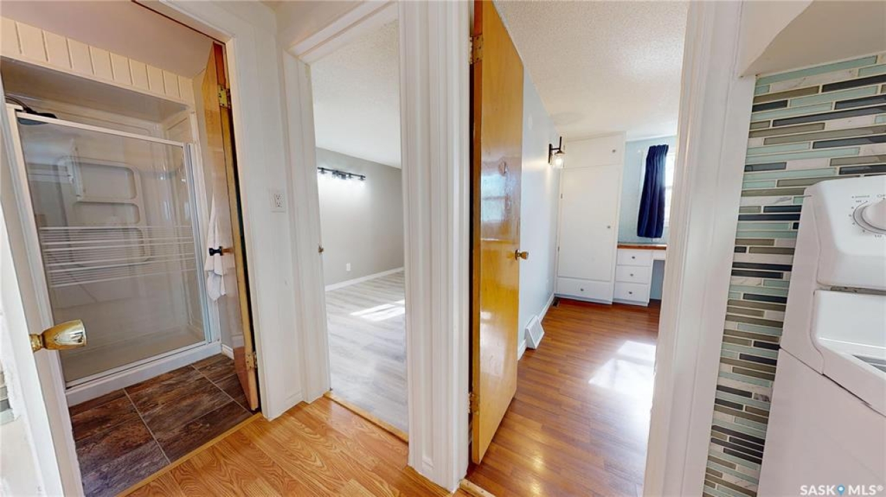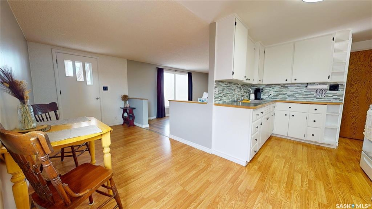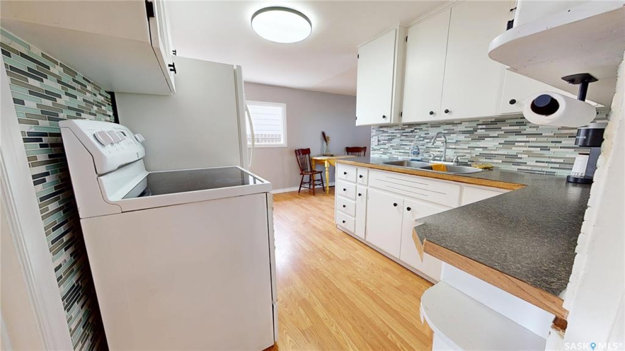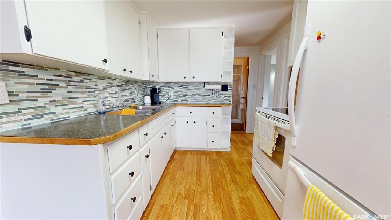 This quaint, move-in-ready home offers an affordable opportunity in the growing community of Maple Creek, just 20 minutes from Cypress Hills and 1 hour from Medicine Hat. Ideal for a single buyer tired of renting or a couple looking to downsize, the home features a bright living room with updated laminate flooring and fresh paint, a functional kitchen with plenty of storage, and a main bedroom that fits a queen bed with updated flooring and window. The second bedroom makes an excellent office or guest room, while the third bedroom off the kitchen offers flexible space for a mudroom, main floor laundry, storage, or bonus area. The 3-piece bathroom is compact but nicely updated with good storage, a new vanity, and updated fixtures. Additional updates include all new light fixtures, fresh paint, furnace (2023), hot water tank (2022), central air/heat pump (2025), and shingles around 2021. The basement provides laundry, storage, and a small bonus space, while outside you'll find a low-maintenance stucco exterior, partially fenced yard, front-drive, additional rear parking, and an older storage shed with room to build a new garage. Priced to sell in today's competitive market.