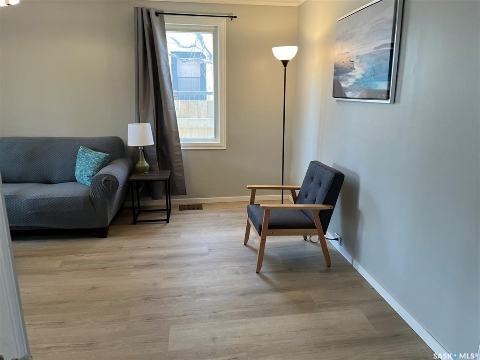 Put this storey and a half on your viewing list, situated right across the street from the school it has a lot of appeal. The home has had new flooring added to the main floor, fresh paint throughout the house, new baseboards, shingles that are not that old and a nice sized garage add to the property value. Gravelbourg has all services like a Hospital, schools, grocery store, restaurants, retail stores, gas station, pharmacy, curling and skating rink and much more. Hurry to book your private viewing today!!