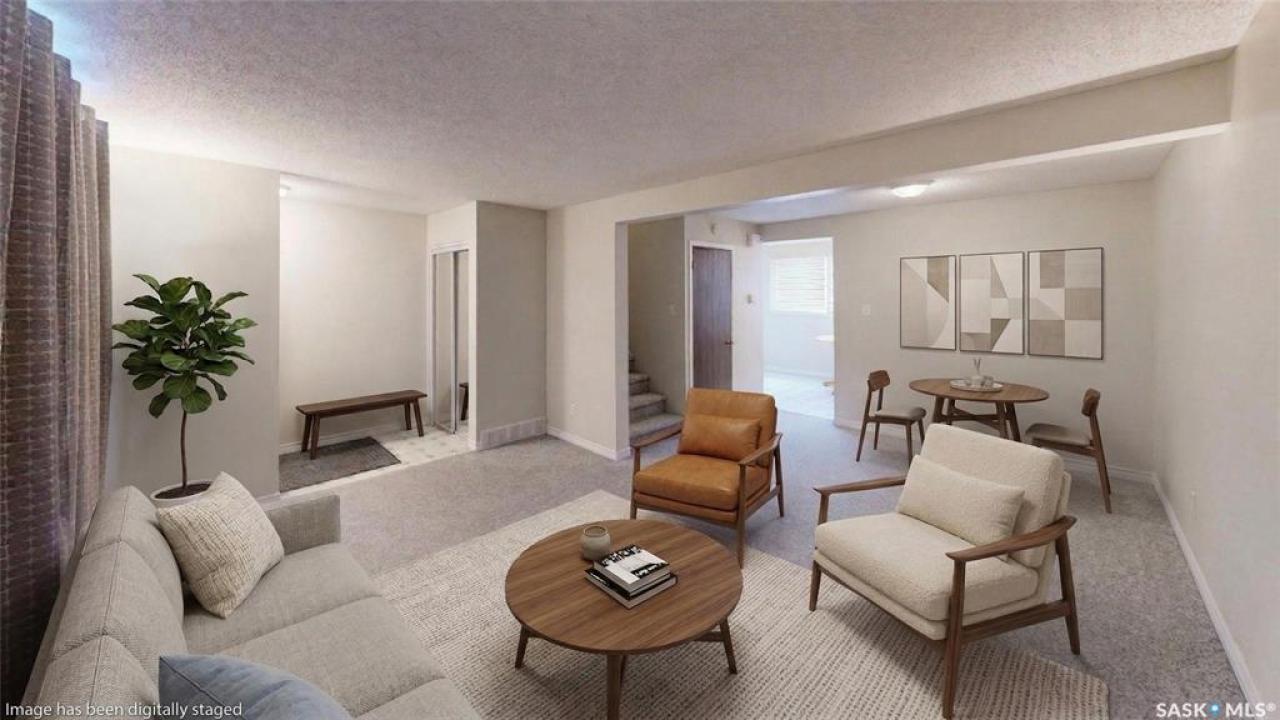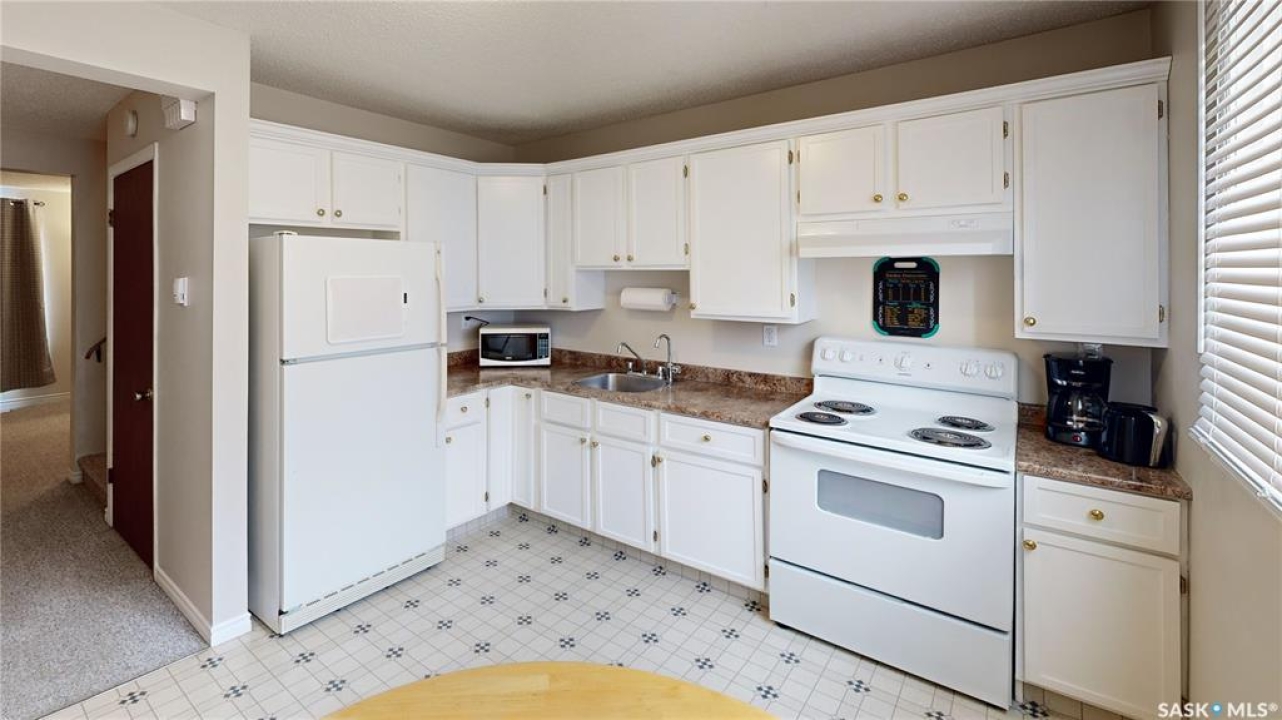 Welcome to 6 Mackenzie Mews in the family oriented Glencairn Village neighborhood steps away from St. Theresa Elementary School, Judge Bryant Elementary School, tennis courts, multiple parks, Judge Bryant Rink and much more. This 1976 built, 3 bedroom 2 bathroom, 1134 square foot, 2 storey, townhouse style condo is located in the Village Green Estates complexes. Condo fees are $330 a month and include common area maintenance, external building maintenance, garbage, common insurance, lawn care, sewer and reserve fund. You have one exclusive parking stall right out your front door and there is a visitor parking section for guests. The fully fenced backyard offers a secure outdoor space for children and pets to play. You enter this home into the foyer with a coat closet and space for a bench or shoe storage. The living room is bright and spacious with a large picture window that lets in plenty of natural light. The dine-in kitchen has space for a table and chairs and includes the fridge, stove and hood fan! To the side is a handy two piece bathroom and access to the backyard. Upstairs on the second floor begins with the generous primary bedroom featuring a large closet with double doors. Next is the main 4 piece bathroom followed by two more bedrooms! The basement is undeveloped but exceptionally clean, offering excellent potential for future customization. The owned furnace, washer and dryer are all included.