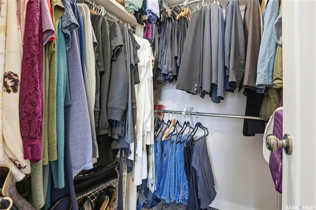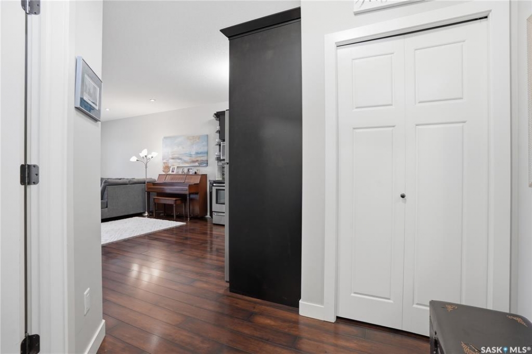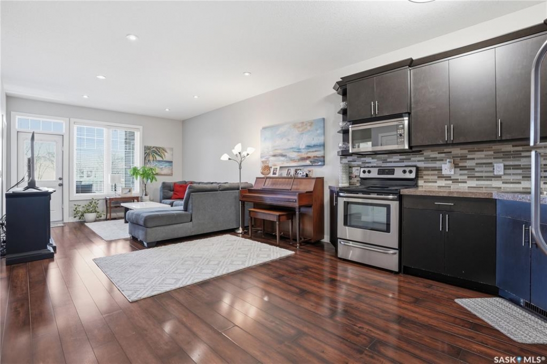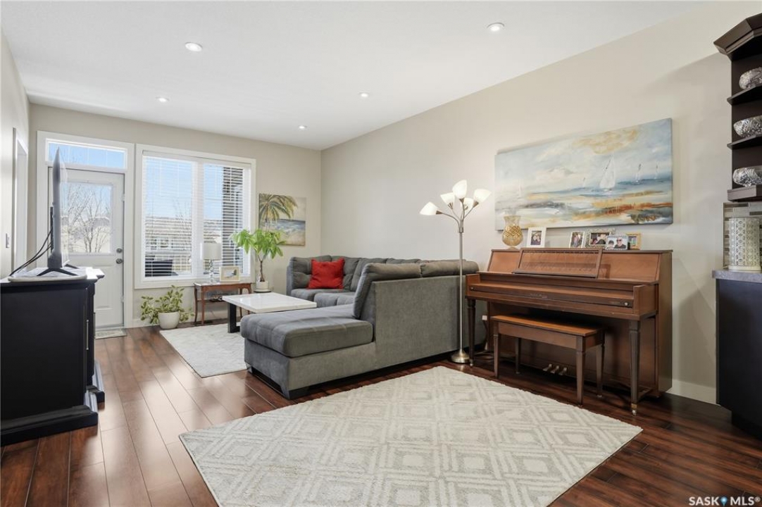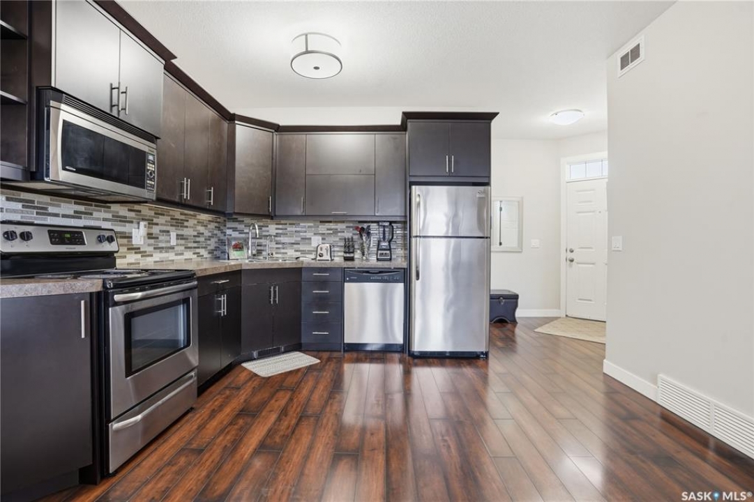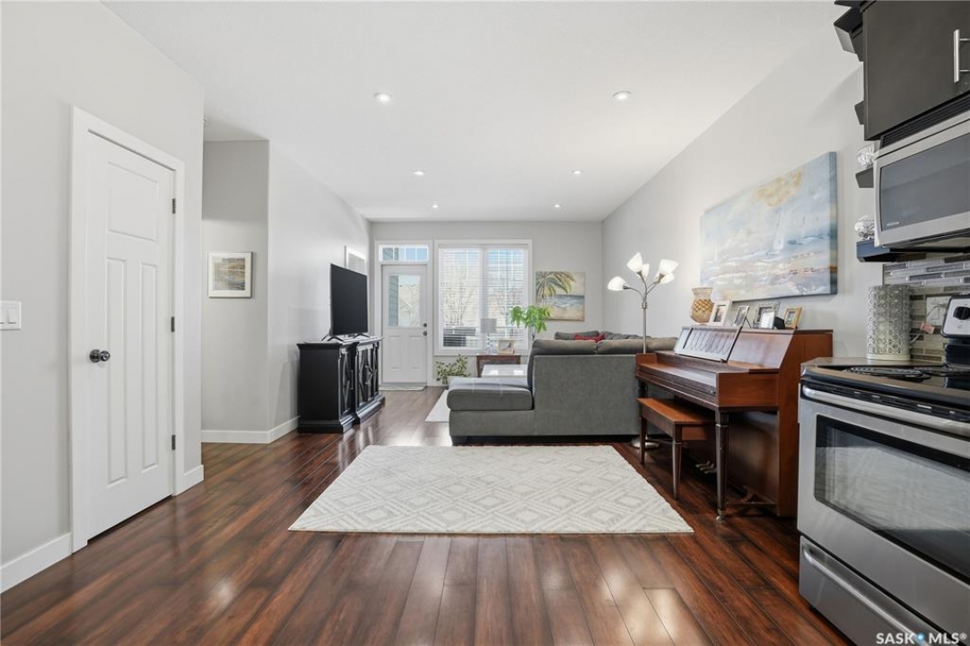 Welcome to this 2 bedroom condo located at 3237 Green Bank Road. This exceptionally clean, practical, with TWO parking spots, move-in-ready 829 sq ft condo offers low-maintenance living in one of Regina's most sought-after east end neighbourhoods, The Greens on Gardiner. Located on the main level with an west/east configuration, this unit features an open-concept layout enhanced by 9' ceilings allowing a natural flow from room to room without restricting walls or different flooring. This condo allows for a smart & seamless weaving of the living spaces. The kitchen offers espresso-stained maple cabinetry, a tile backsplash, & generous space for an island, eat up bar, & dining area (if desired). Along the wall is a closet that is perfect for a pantry. A spacious living room is bright with the afternoon sun & provides access to a cozy deck & no back neighbors. The deck has a utility room with the owned on-demand water heater, furnace, & room for storage. A bonus is the natural gas BBQ hookup. The large primary bedroom easily accommodates a king-size bed, furniture, & is positioned at the back & includes a well-designed, oversized walk-in closet. As well, you'll find the hatch to the FULL concrete crawl space that is clean, dry, & solid - this is great space beneath the entire unit & ideal for extensive storage. A second bedroom at the front is a versatile room that can function as a bedroom, office, yoga room, or studio. The full bathroom has a large vanity, new washer & dryer (Fall '25) & with access from the primary bedroom, it offers great functionality, too! 3237 Green Bank Rd has a fabulous location & is tucked away into the residential area of The Greens neighborhood, the location is super! A huge bonus: 2 titled parking (electrical) stalls, #33 & #42, & visitor parking on both sides of the common area. Walking paths, parks, shopping, restaurants, & schools are all close by. Condo fees are reasonable $215.21/month. This is truly a move in ready condo!