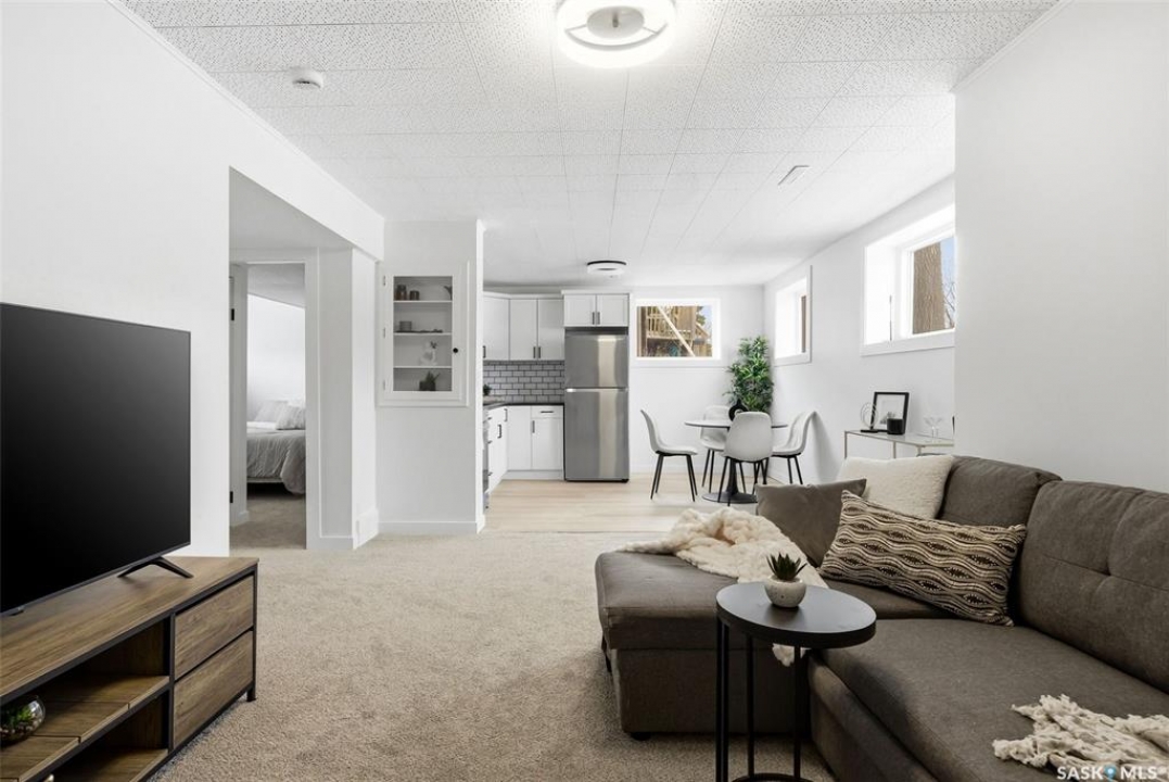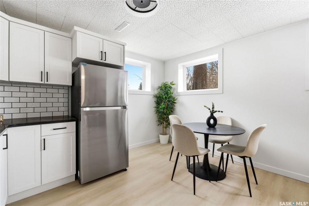 Welcome to 809 Horace Street in Regina's Rosemont neighborhood! This updated bungalow offers 974 sq ft on the main floor with a fully developed basement, providing excellent value for homeowners or investors alike. The main level features a bright and modern interior with luxury vinyl plank flooring throughout, a spacious living room with large front windows, and an updated kitchen complete with white cabinetry, subway tile backsplash, black countertops, and stainless steel appliances. Three comfortable bedrooms and a 4-piece bathroom complete the main floor. The basement is fully developed with additional living space, including a second kitchen, living/recreation area, bedroom, and a 4-piece bathroom—offering great potential for extended family or revenue opportunities. Situated on a 5,611 sq ft lot, the property features a large backyard with mature trees, a double detached garage, and plenty of space to enjoy the outdoors. Located close to schools, parks, and amenities, this home is a great opportunity in an established neighborhood. RECENT UPDATES INCLUDE A NEW FURNACE AND NEW WINDOWS. Don't miss your chance to own a move-in ready home with income potential!