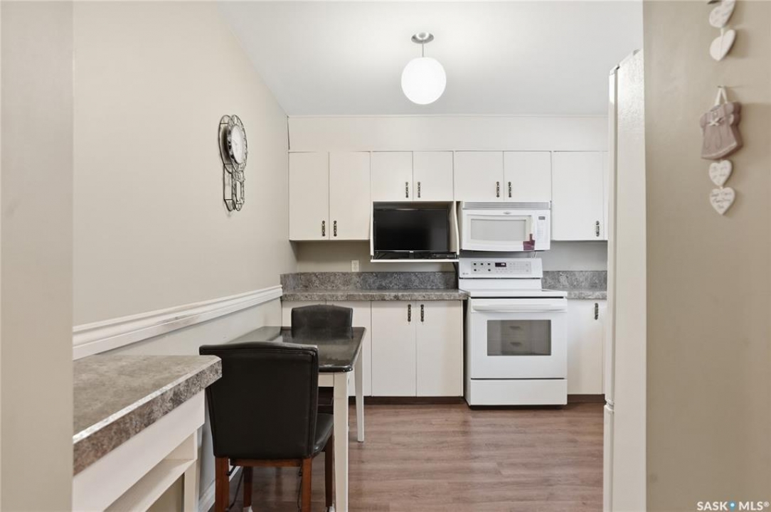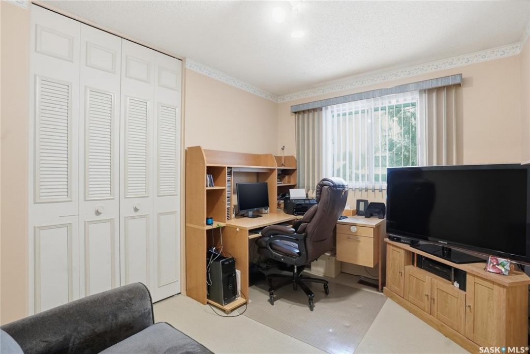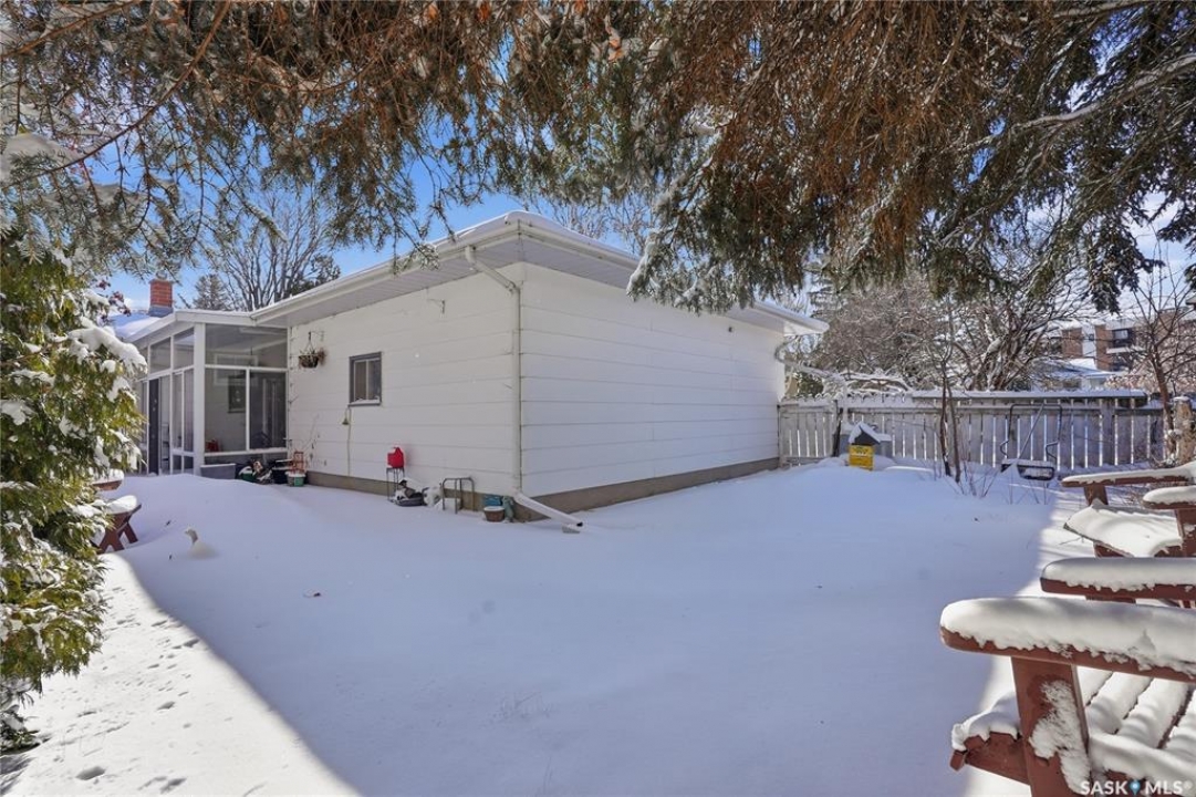 Well-maintained 4 bedroom + 2 bath home on a quiet crescent in East College Park! This bungalow offers almost 1,200 sqft of living space plus a finished basement and sits on corner lot with a double attached garage. Upstairs offers a spacious living room and dining room, with plenty of room to entertain, a good sized kitchen with all appliances included, as well as 3 bedrooms, full bath plus 2pc ensuite. Enjoy relaxing in the sun room which also provides direct access from the garage to the house! The basement gives you even more living space with a large family room, 4th bedroom with 3pc ensuite, and laundry. The backyard is fenced with mature landscaping and lots of privacy. Great family-friendly location close to parks and schools and 8th St amenities, this home could be the perfect fit for your needs! Be sure to book your showing with your favourite Realtor today!