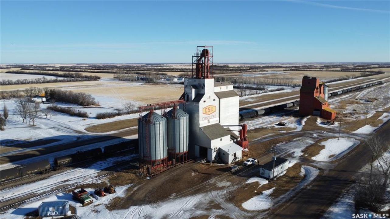 Grain elevator facility located on 8.16 acres of fully owned land in Saskatchewan. A rare opportunity to acquire an elevator property where the land is owned outright, with no railway land lease agreements tied to the site. Improvements include elevator structures, multiple grain bins, scale infrastructure, and an on-site office building. Storage capacity is approximately 4,500 metric tonnes. The property offers direct highway access suitable for truck traffic and ample yard space. Large parcel provides flexibility for a variety of agricultural or industrial applications.