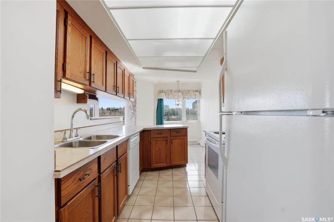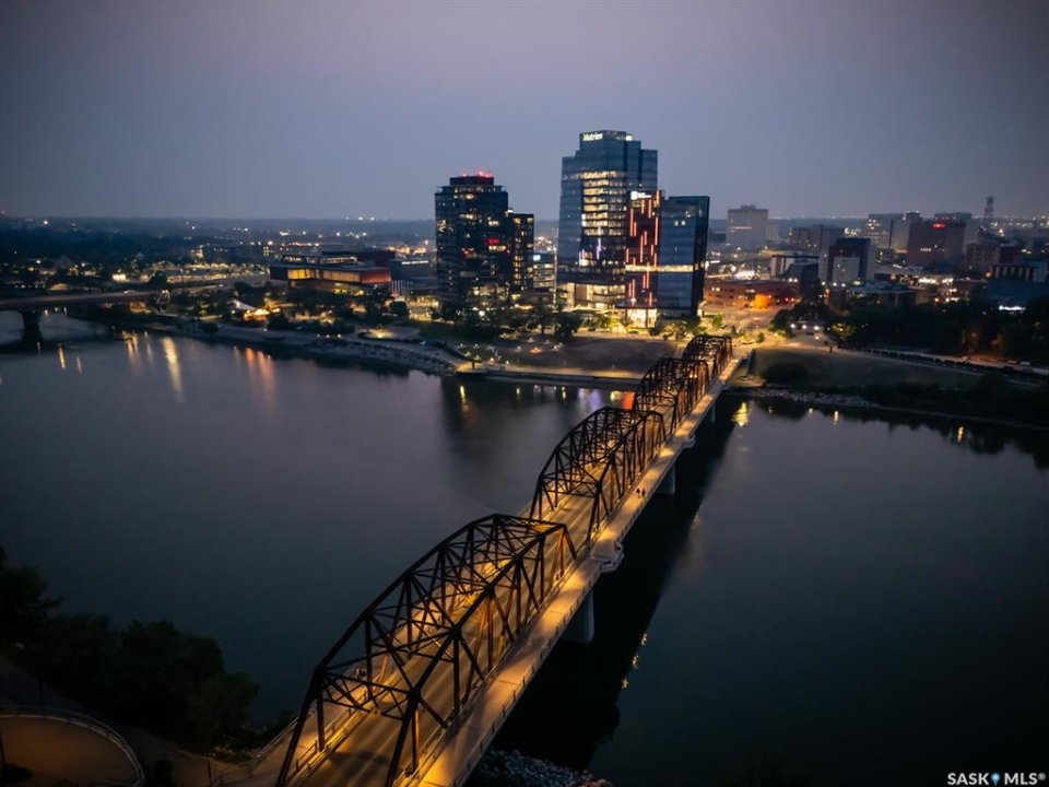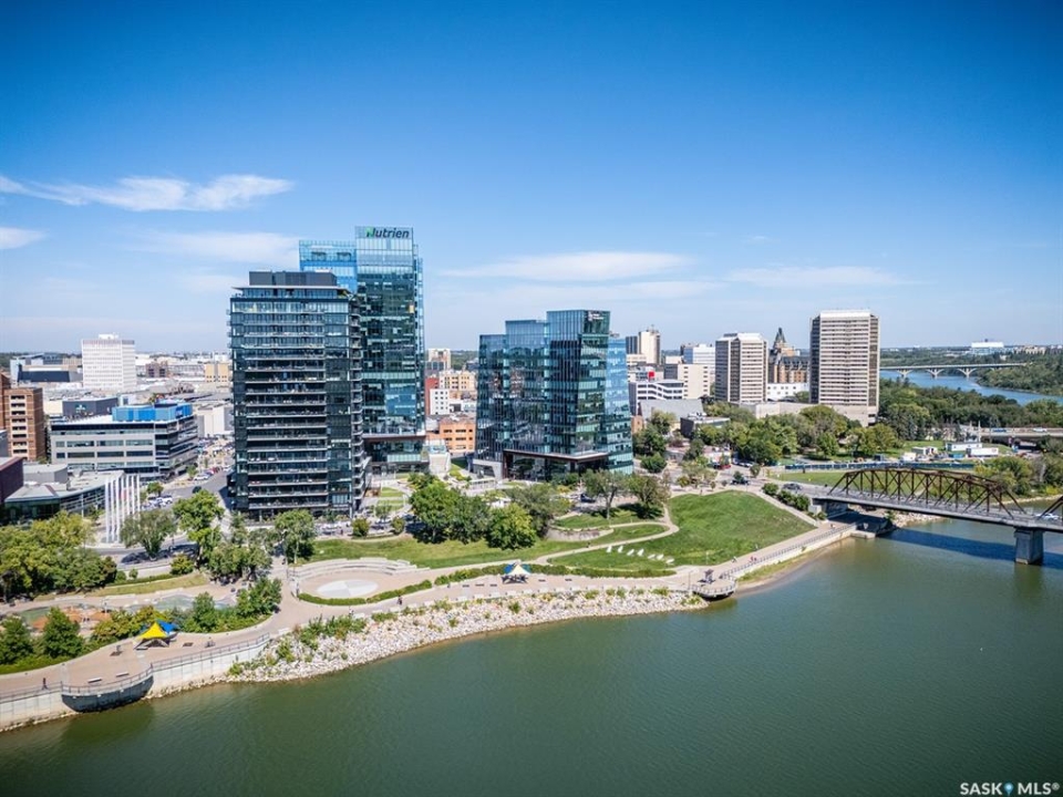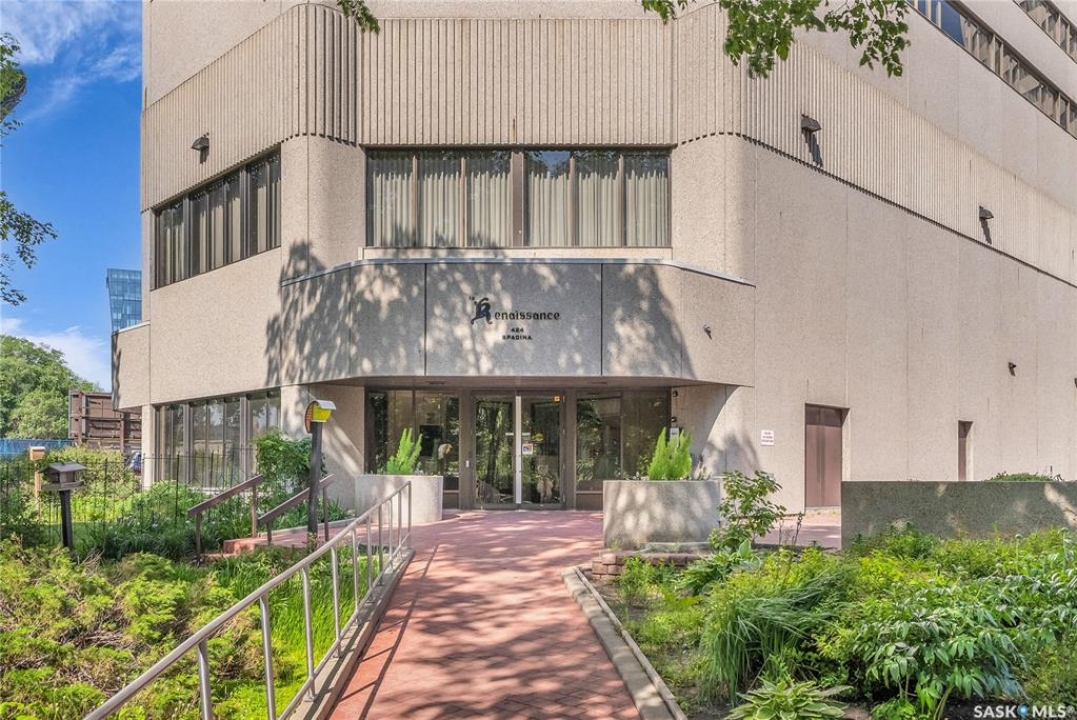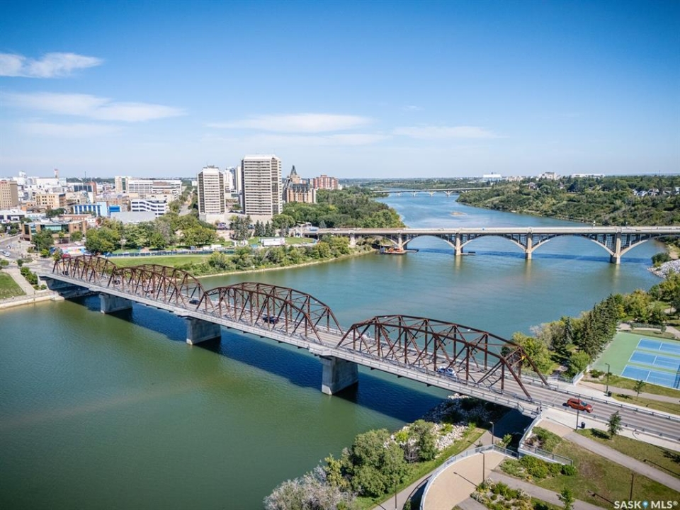 An incredible suite location in Saskatoon's downtown district overlooking beautiful Kiwanis Memorial Park, with views of the river and the historic Delta Bessborough Hotel! Enjoying what is arguably the best floor plan in the building (40), the sun-filled suite offers an east-facing position and nearly 1,200 square ft of architecturally designed space, a large window wall across the entire entertaining area, 2 bedrooms & 2 full bathrooms, formal dining, and impressive views of the Bessborough Hotel from both bedrooms. Whether considering a modest or high-level remodel, this is a most attractive opportunity to renovate a river-front condo to your personal tastes. Additional interior features include a white Oak kitchen, radiant heating, double-wide bedroom closets, tiled kitchen & bathroom flooring, private entry, and in-suite laundry. The Renaissance enjoys a large resident lobby, heated underground parking and storage facilities, an indoor pool, spa & waterslide, gym, and sound reserve fund. This river-front location is within a 5min walk of Broadway and River Landing, and offers the best in daily conveniences and walkable city life with easy access to the downtown's and Nutana's amazing parks, cafés, globally-renowned eateries, and fantastic shopping. Saskatoon's many music, festival sites, and cultural venues also take centre stage in the Summer months in the river valley mere minutes from your door.! The suite comes complete with a full appliance package, 1 underground parking stall, and a heated storage locker (strata fees of $702.50 include heat & water utilities). You are invited to inquire with your local realtor to schedule your private tour. Open House Sun, Apr. 12, 11am-Noon.