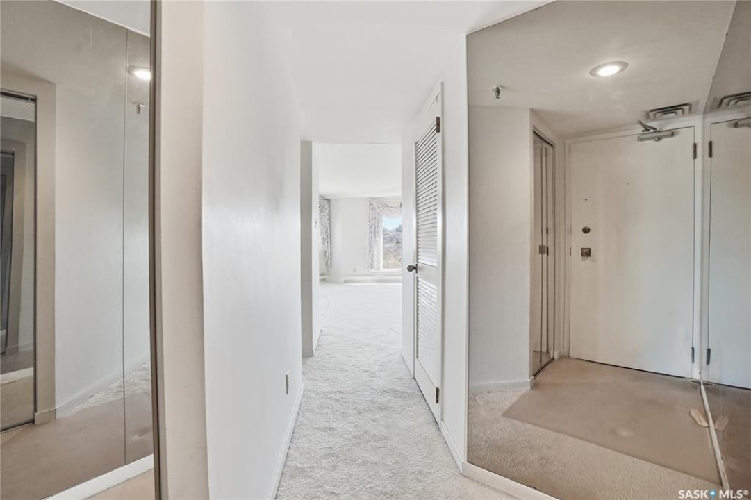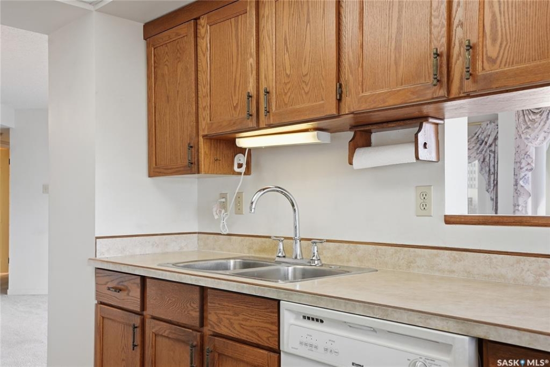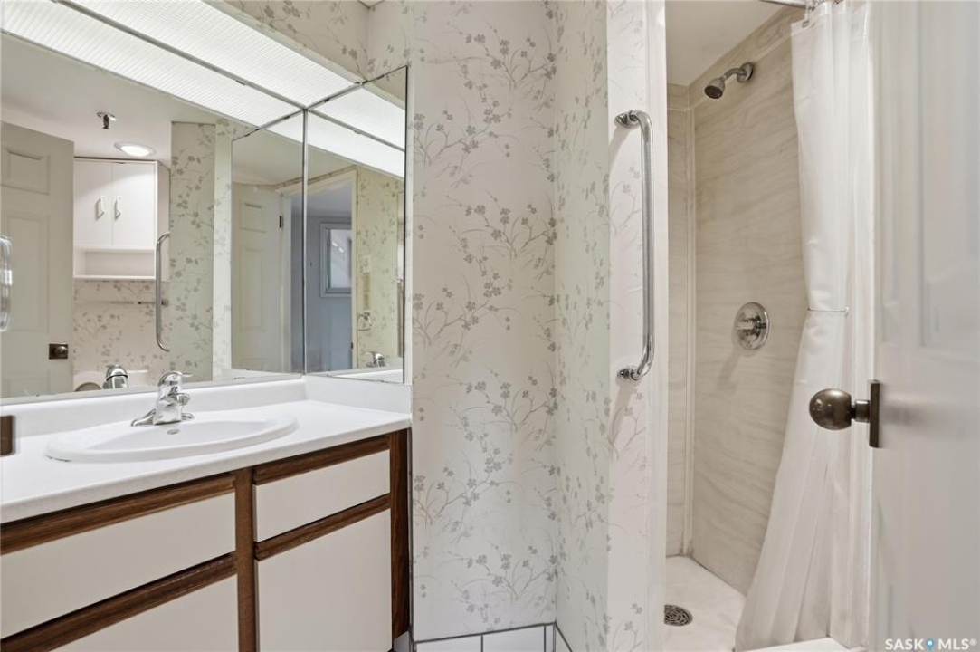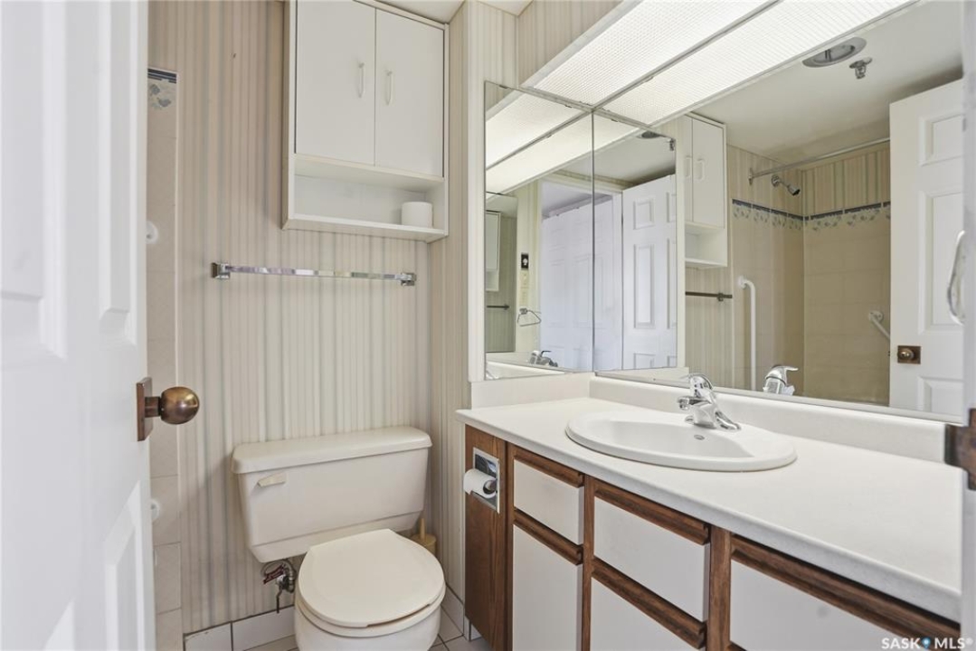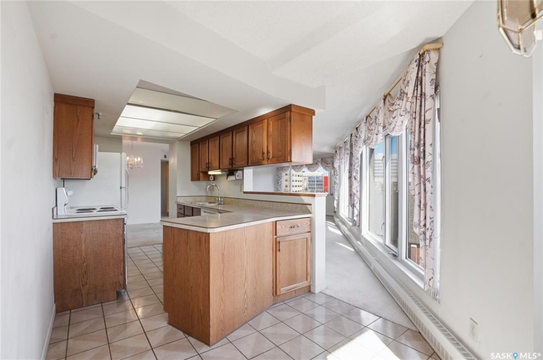 An incredible suite location in Saskatoon's downtown district overlooking beautiful Kiwanis Memorial Park, with views of the river and the historic Delta Bessborough Hotel! Enjoying what is arguably the best floor plan in the building (40), the sun-filled suite offers an east-facing position and nearly 1,200 square ft of architecturally designed space, a large window wall across the entire entertaining area, 2 bedrooms & 2 full bathrooms, formal dining, and impressive views of the Bessborough Hotel from both bedrooms. Whether considering a modest or high-level remodel, this is a most attractive opportunity to renovate a river-front condo to your personal tastes. Additional interior features include a white Oak kitchen, radiant heating, double-wide bedroom closets, tiled kitchen & bathroom flooring, private entry, and in-suite laundry. The Renaissance enjoys a large resident lobby, heated underground parking and storage facilities, an indoor pool, spa & waterslide, gym, and sound reserve fund. This river-front location is within a 5min walk of Broadway and River Landing, and offers the best in daily conveniences and walkable city life with easy access to the downtown's and Nutana's amazing parks, cafés, globally-renowned eateries, and fantastic shopping. Saskatoon's many music, festival sites, and cultural venues also take centre stage in the Summer months in the river valley mere minutes from your door.! The suite comes complete with a full appliance package, 1 underground parking stall, and a heated storage locker (strata fees of $702.50 include heat & water utilities). You are invited to inquire with your local realtor to schedule your private tour. Open House Sun, Apr. 12, 11am-Noon.