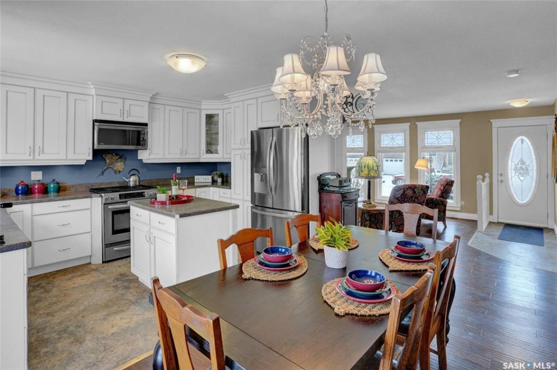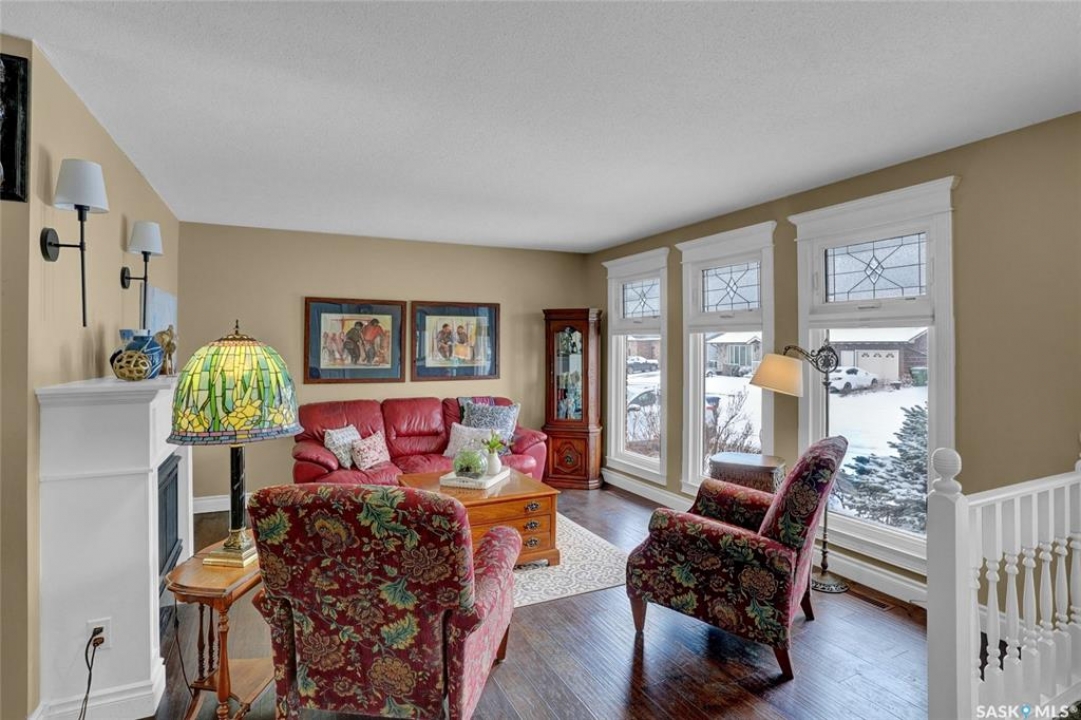 Discover your next home in Sunningdale neighourhood, set on a spacious lot in a quiet crescent close to parks, walking paths, & school. This property offers a setting for family life. Step into the welcoming foyer, showcasing a bright living room w/large picture window that fills the space with natural light, highlighting the hardwood floor extending into the dining area. The updated kitchen boasts antiqued cabinetry, a central island, built ins & patio doors to a deck with a built-in BBQ w/natural gas hookup. On the 2nd floor, find 3 bedrooms, w/the primary suite featuring a 2pc. ensuite & patio doors to a deck complete with a hot tub. A 4pc. bath w/a tub surround & spacious vanity completes this level. The 3rd floor offers fantastic windows, a cozy family room with a wood-burning fireplace, & decorative shelving/cabinetry for ample storage. This level also features a wet bar and extra area currently used for crafts. Also, a laundry & 3pc. bath (needing your final finishes) on this floor. From this level is direct access to the att. single garage adding extra convenience. On the 4th floor, enjoy a theater room w/tiered seating, recliners, & AV equipment (excluding a couple of speakers) included, plus abundant storage and utility space finish this floor. The beautifully landscaped backyard is nearly park like, with a large deck accessible from both the dining area and the primary bedroom. Enjoy mature trees & flower beds creating a relaxing and entertaining space. With updates including shingles, windows, kitchen upgrades, built-in cabinetry, wet bar, & fresh trims/baseboards, this home is nestled in a prime location, waiting for you to make your next move. CLICK ON VISUAL TOUR LINK FOR A TOUR and call today!