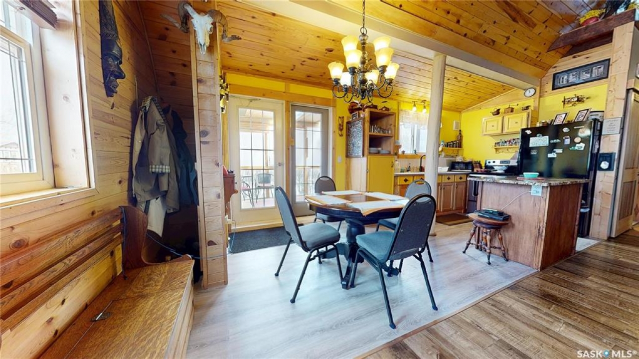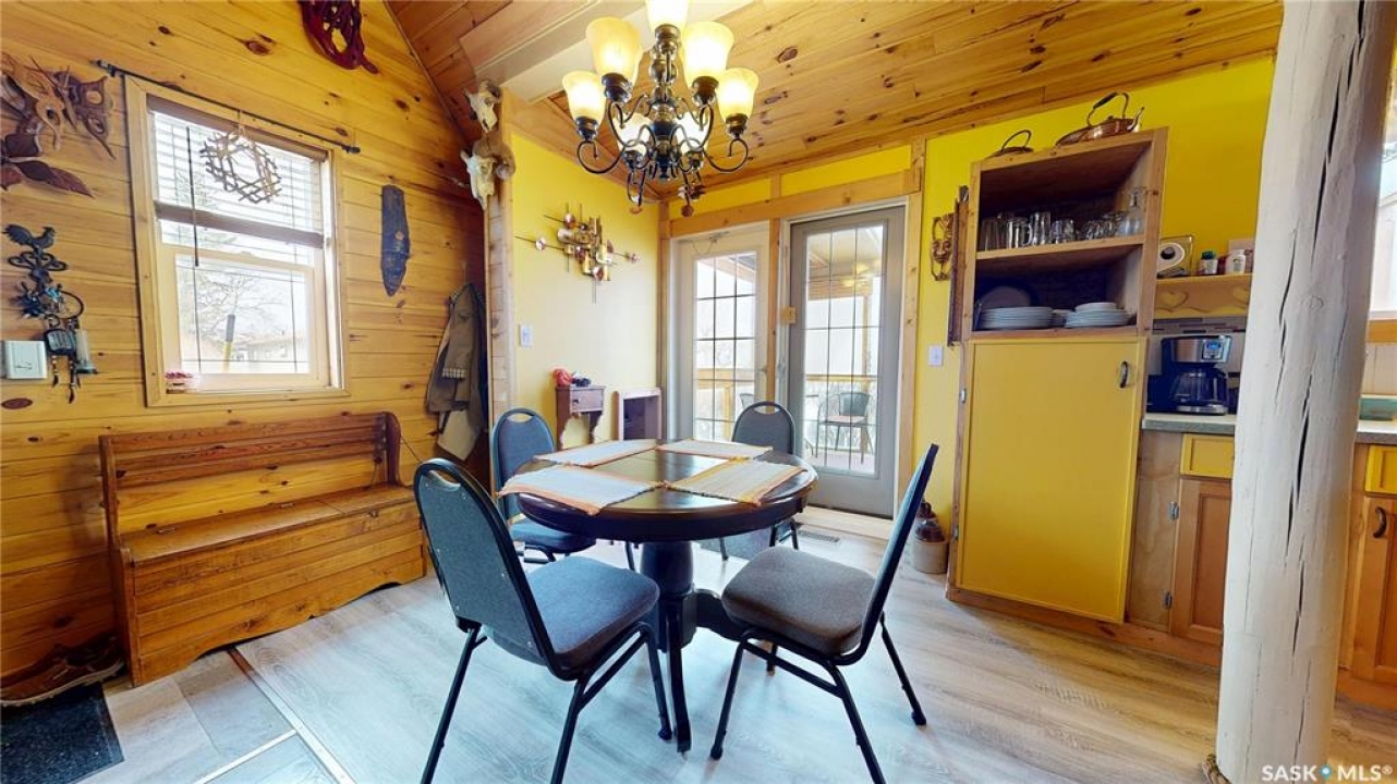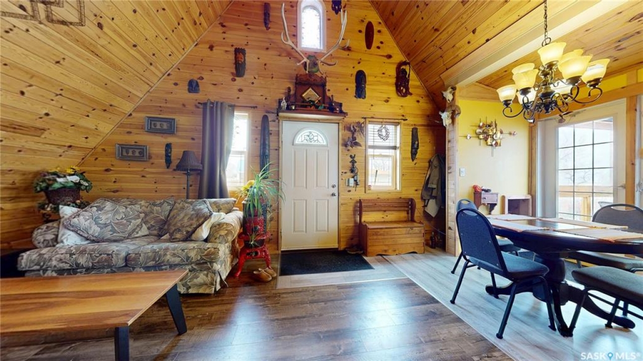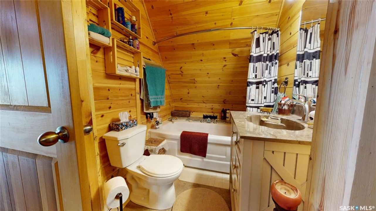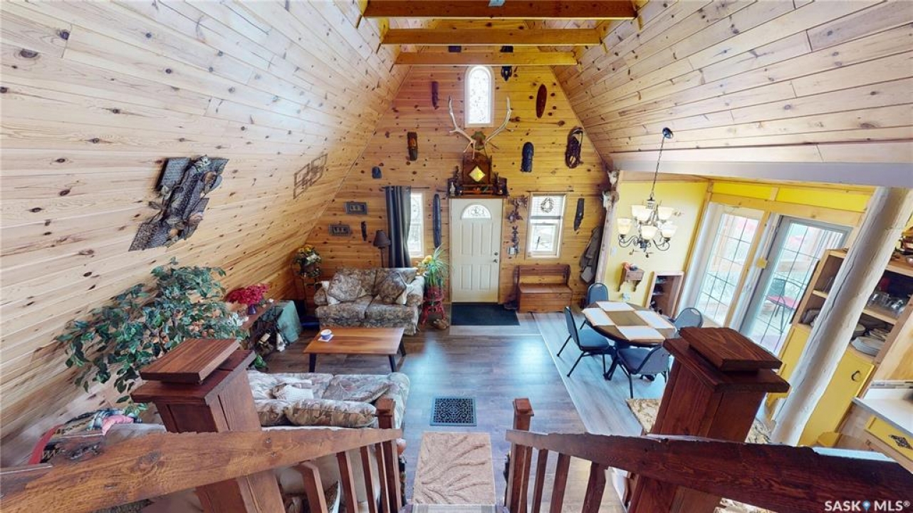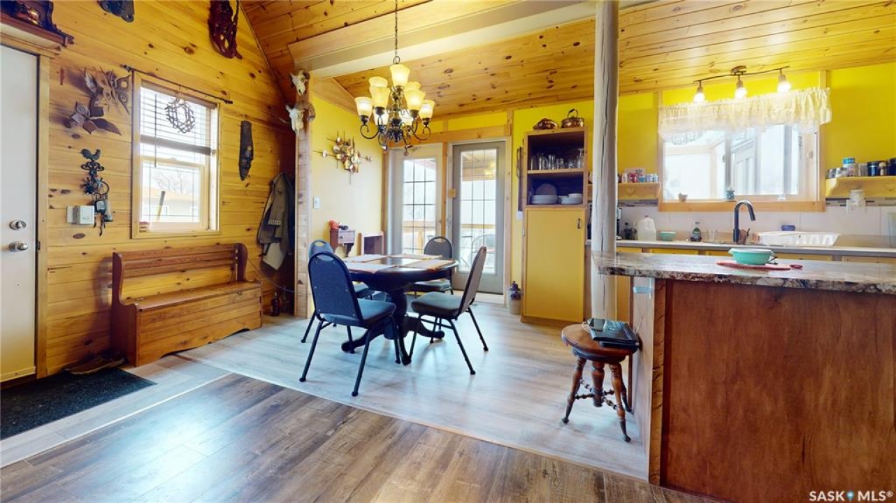 Escape to your own cottage retreat in Southwest Saskatchewan—without the cabin price tag. This charming A-frame in Tompkins offers cozy comfort and open-concept living, featuring a bright kitchen with island, inviting living space with a stone-accented gas fireplace, and a peaceful loft ideal for guests or creative space. The main floor bedroom has plenty of room and offers a spacious closet with storage space above. The bathroom is a picture of relaxation, featuring a generous tub for soaking, complimented by natural wood accents. The laundry/utility room has high ceilings and ample space for shelving. Set on a generous 150 X 122 corner lot, the property includes a covered deck, and unique outbuildings that have endless possibilities as storage, man caves, or studio space. The garden area is well established with plenty of room to expand. Every corner of this property, both inside and out, has been meticulously designed to maximize space and comfort. This property also offers an opportunity to get into the Air-BnB business. Located central to the Cypress Hills Destination Area, just off the No. 1 highway, everything is ready, and sellers would consider leaving some furniture to get you started. Whether you're looking for a weekend getaway, business opportunity or year-round retreat, this one delivers the cabin lifestyle—at an affordable price.
