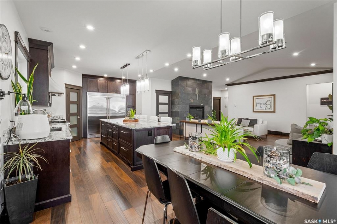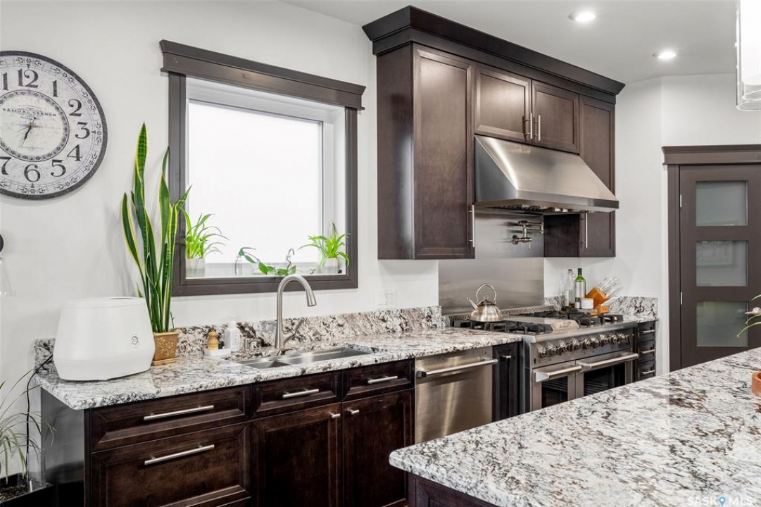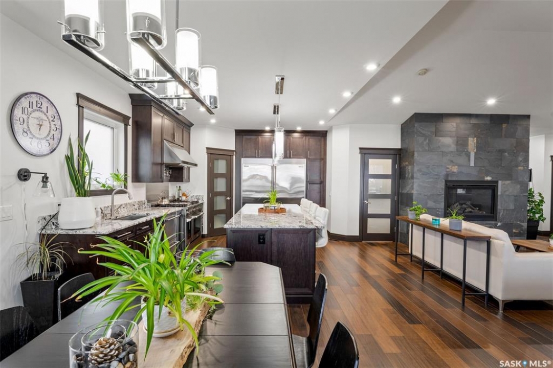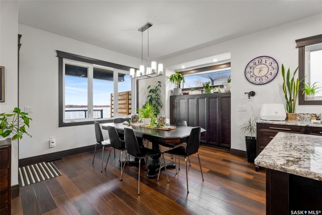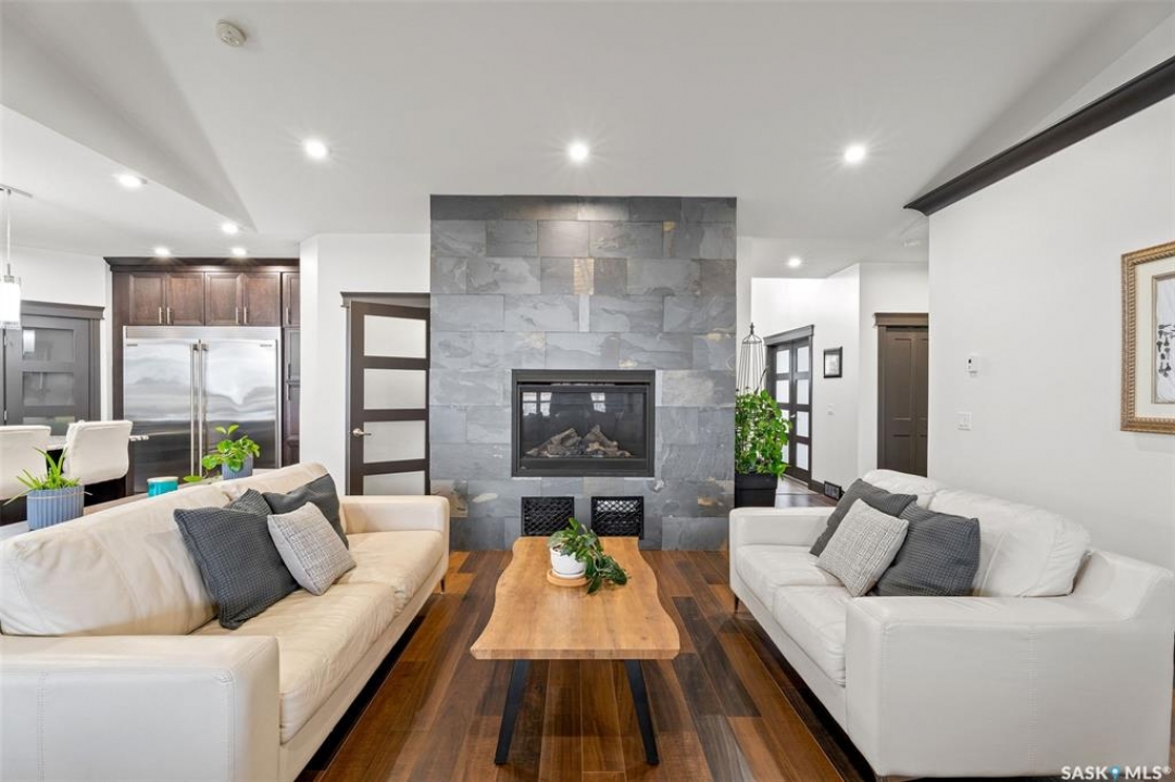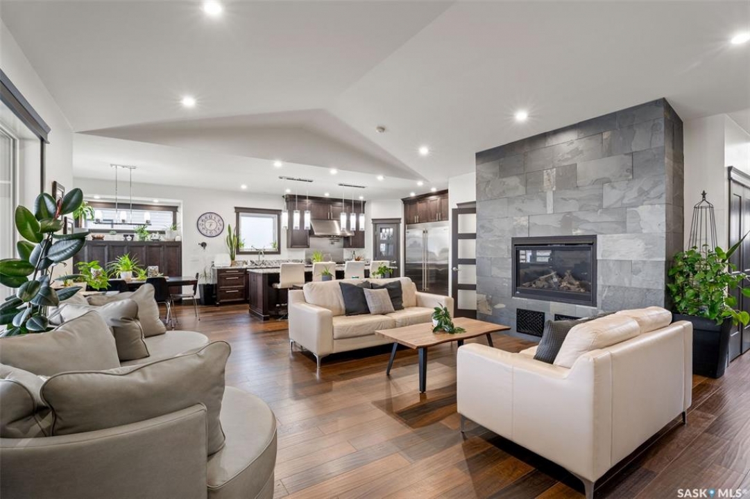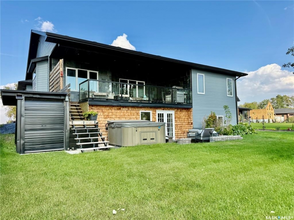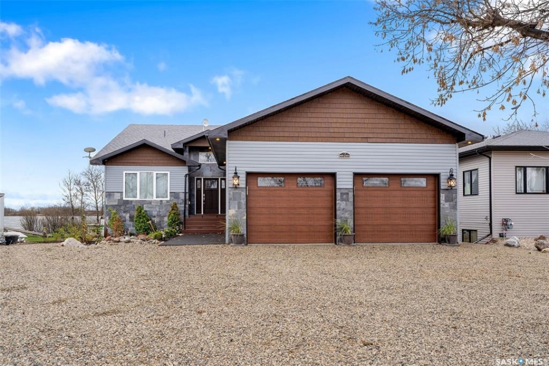 Lakefront Executive Style home at Humboldt Lake! Welcome to this stunning lakefront executive bungalow offering 1,733 sq. ft. of refined living space in a serene and private setting. Elegant Interiors & Gourmet Kitchen: The open-concept main living area features soaring vaulted ceilings and a striking natural gas slate fireplace, creating both warmth and elegance. A chef's dream kitchen awaits with gleaming granite countertops, a large island with seating, and a THOR Professional six-burner gas stove with griddle and pot filler tap. High-end appliances—double drawer dishwasher, ,including a built-in coffee maker, Miele speed oven, Miele espresso/coffee maker , Miele dish warming drawer and a well-planned butler's pantry—make entertaining effortless. Thoughtful Design & Luxurious Details: This home offers five bedrooms and three bathrooms, including a lakeside master retreat complete with walk-in closet and spa-inspired ensuite. A spacious foyer off the 1,000 sq. ft. attached garage with mezzanine sets the tone for style and function, while in-floor heating in both the garage and basement ensures year-round comfort. Outdoor Living & Recreation: The west-facing lot is perfect for evening sunsets, enjoyed from the covered deck with direct basement access. A dedicated sauna room overlooks the 6 person hot tub with waterfall feature, providing the ideal spot to relax after a day on the water. The basement boasts 9 ft ceilings, a large family room, an exercise area, and a versatile sauna/games room. Modern Comfort & Efficiency: Equipped with natural gas forced-air heating and central air conditioning, in floor heat in the basement and garage, this home blends contemporary convenience with lakeside tranquility. Experience the unmatched lifestyle of the Lakefront Executive at Humboldt Lake—where luxury meets comfort at every turn. Call today to arrange your private viewing!