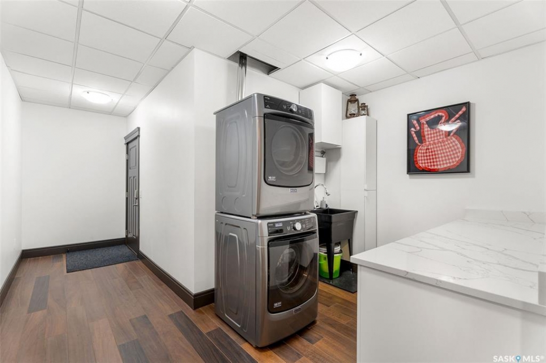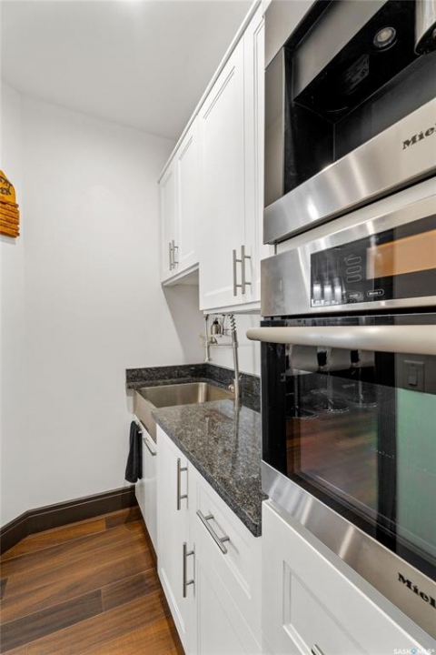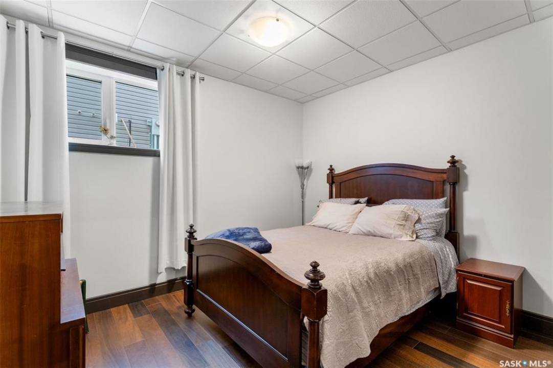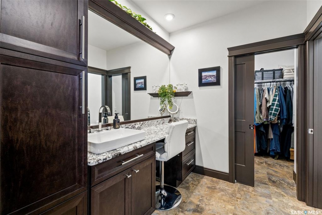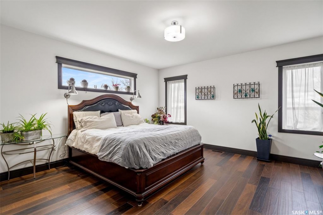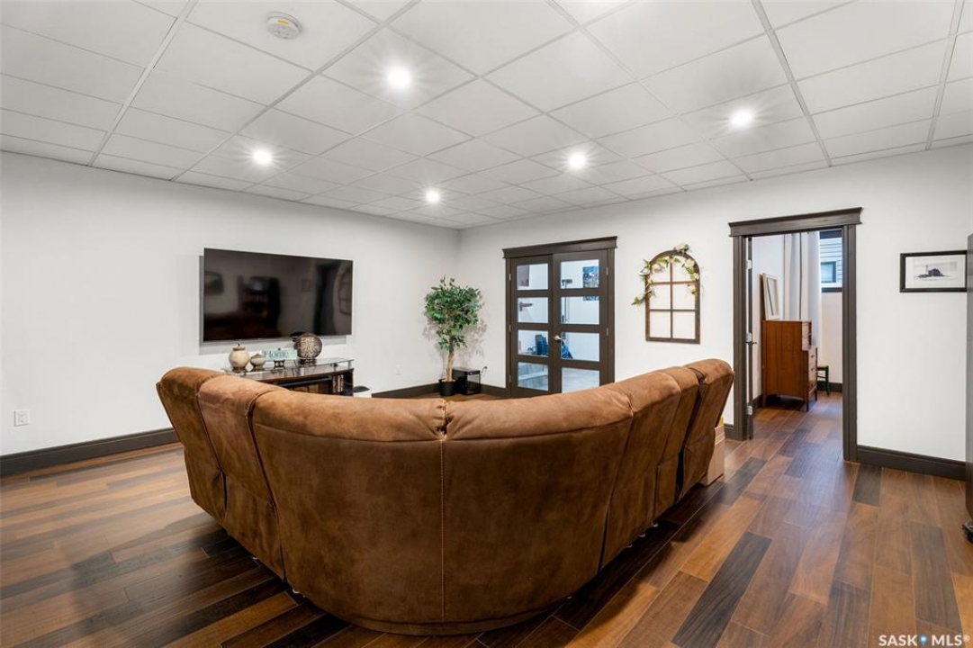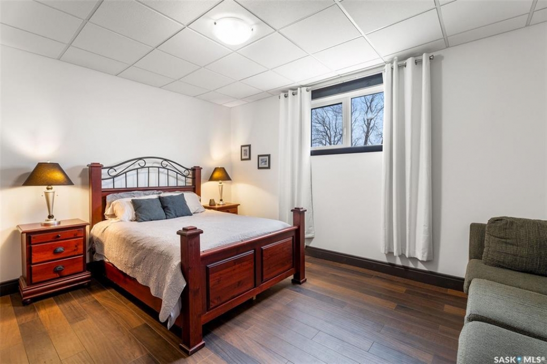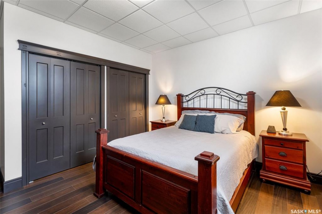 Lakefront Executive Style home at Humboldt Lake! Welcome to this stunning lakefront executive bungalow offering 1,733 sq. ft. of refined living space in a serene and private setting. Elegant Interiors & Gourmet Kitchen: The open-concept main living area features soaring vaulted ceilings and a striking natural gas slate fireplace, creating both warmth and elegance. A chef's dream kitchen awaits with gleaming granite countertops, a large island with seating, and a THOR Professional six-burner gas stove with griddle and pot filler tap. High-end appliances—double drawer dishwasher, ,including a built-in coffee maker, Miele speed oven, Miele espresso/coffee maker , Miele dish warming drawer and a well-planned butler's pantry—make entertaining effortless. Thoughtful Design & Luxurious Details: This home offers five bedrooms and three bathrooms, including a lakeside master retreat complete with walk-in closet and spa-inspired ensuite. A spacious foyer off the 1,000 sq. ft. attached garage with mezzanine sets the tone for style and function, while in-floor heating in both the garage and basement ensures year-round comfort. Outdoor Living & Recreation: The west-facing lot is perfect for evening sunsets, enjoyed from the covered deck with direct basement access. A dedicated sauna room overlooks the 6 person hot tub with waterfall feature, providing the ideal spot to relax after a day on the water. The basement boasts 9 ft ceilings, a large family room, an exercise area, and a versatile sauna/games room. Modern Comfort & Efficiency: Equipped with natural gas forced-air heating and central air conditioning, in floor heat in the basement and garage, this home blends contemporary convenience with lakeside tranquility. Experience the unmatched lifestyle of the Lakefront Executive at Humboldt Lake—where luxury meets comfort at every turn. Call today to arrange your private viewing!