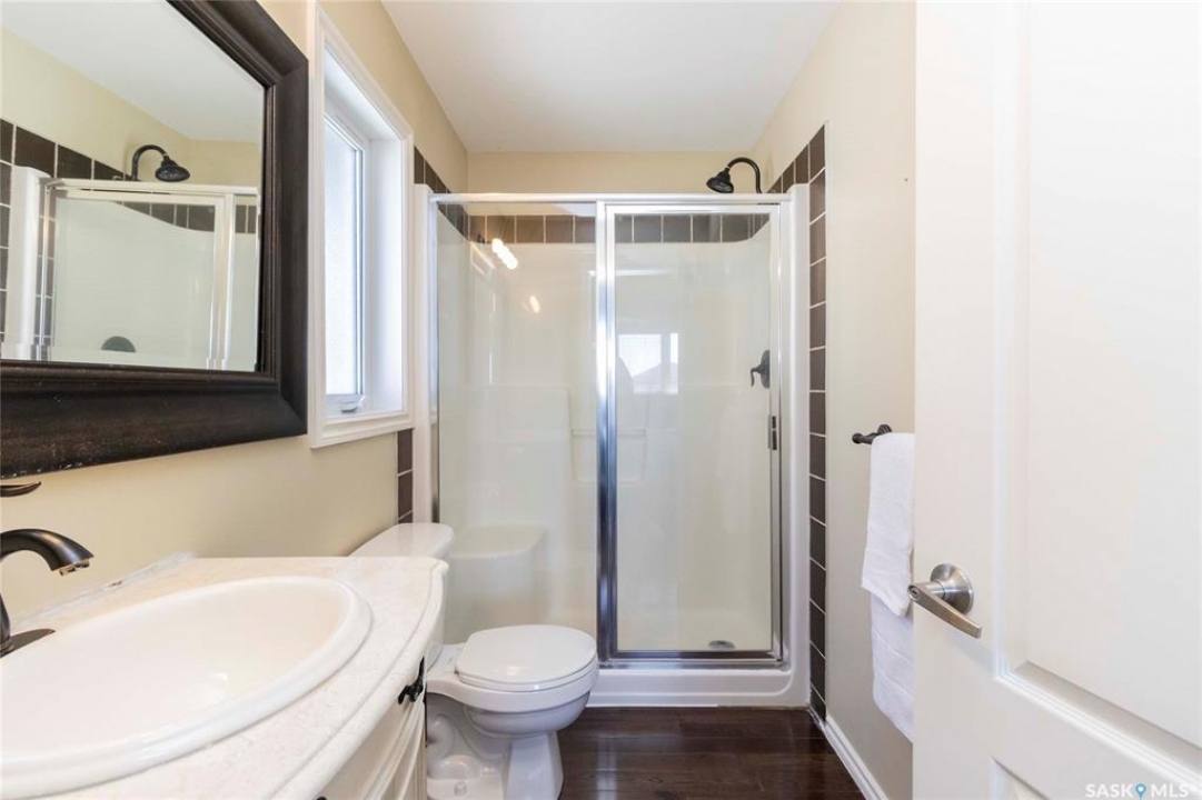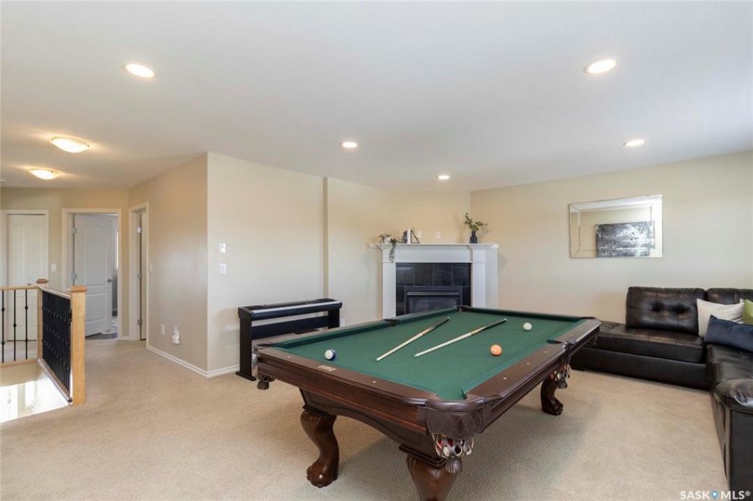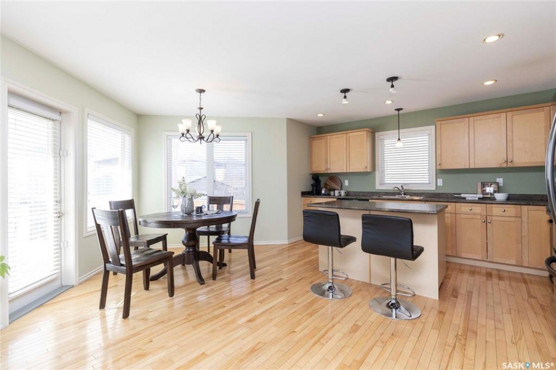 Welcome to this two-storey home in the highly sought-after Stonebridge neighbourhood, offering over 1,700 sq ft above grade plus a fully finished basement—perfect for families seeking space, comfort, and value. The bright, open-concept main floor features hardwood flooring, a spacious living room, and a functional kitchen with maple cabinetry, island with eating ledge, and abundant storage. The adjoining dining area is filled with natural light from large windows and provides direct access to the deck and fully landscaped, fenced backyard—ideal for entertaining. A convenient main-floor laundry and direct entry to the insulated double attached garage add everyday practicality. Upstairs, you'll find a generous bonus room with a cozy gas fireplace, along with three bedrooms including a spacious primary suite complete with a walk-in closet and private 3-piece ensuite. A full bathroom featuring a jetted tub and slate tile surround completes the upper level. The finished basement offers excellent additional living space with a large family/recreation room, an extra bedroom, and a full bathroom. Outside, enjoy a beautifully landscaped yard with mature trees, shrubs, and a sandbox. Ideally located close to parks, schools, and all amenities, this home delivers the perfect blend of style, function, and location—an exceptional opportunity in a family-friendly community.