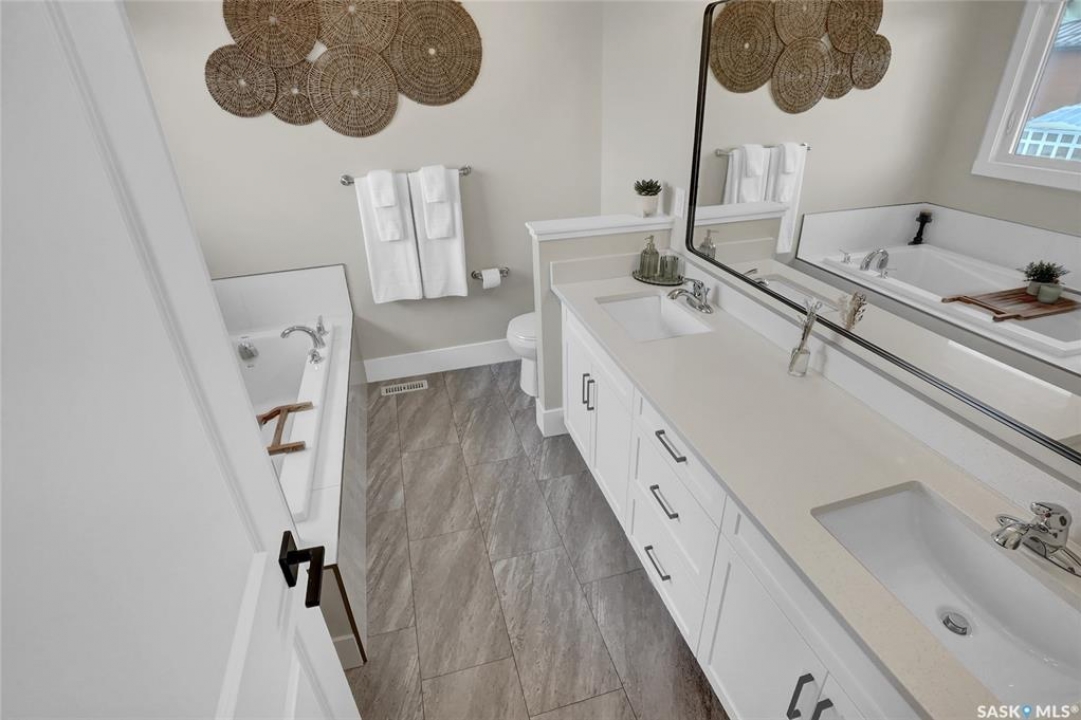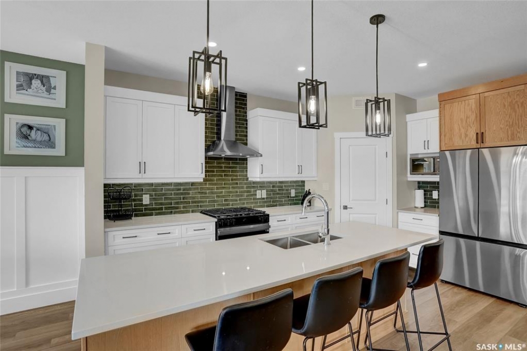 Discover a remarkable family home in the desirable West Park Village neighborhood of Moose Jaw. This property is better than new, fully finished & beautifully landscaped, offering everything a family needs. This home provides ample space, including a bonus family room on the 2nd floor. The open-concept design is illuminated by an abundance of windows, filling the home with natural light. Enter through the inviting front covered steps into a spacious foyer that leads to the main living area. The living room, featuring a cozy gas fireplace, seamlessly connects to a modern kitchen. This chef's haven boasts cabinetry to the ceiling, a gas stove, a corner pantry, and a center island, all adorned with elegant quartz countertops. Adjacent to the dining area, step out onto the covered deck, complete with durable composite decking, perfect for future screening to provide indoor/outdoor living. The main floor also includes a convenient 2pc. bath & a mudroom designed for family life. Upstairs, you'll find 3 bedrooms, including a luxurious primary suite w/5pc. ensuite including a soaker tub & a generous walk-in closet. The expansive bonus room is ideal for adapting to your family's needs & the floor also features a 4pc. bath & well-appointed laundry room w/cabinetry, counter, and sink. The lower level is perfect for family movie night, with a family room, 2 additional bedrooms, a 4pc. bath, and excellent storage all w/impeccable finishes. The oversized Dbl. Att. garage is insulated & heated, providing ample space for vehicles and more. Outside, the yard is a haven with a covered deck, composite decking, natural gas BBQ hookup & newly landscaped yard & fenced. This fantastic family home is located just steps from park and walking paths, this dream home in West Park Village is a place to love and live beautifully. Remaining Home Warranty will be transferred. CLICK ON THE MULTI MEDIA LINK FOR A VISUAL TOUR and call today for your personal viewing.