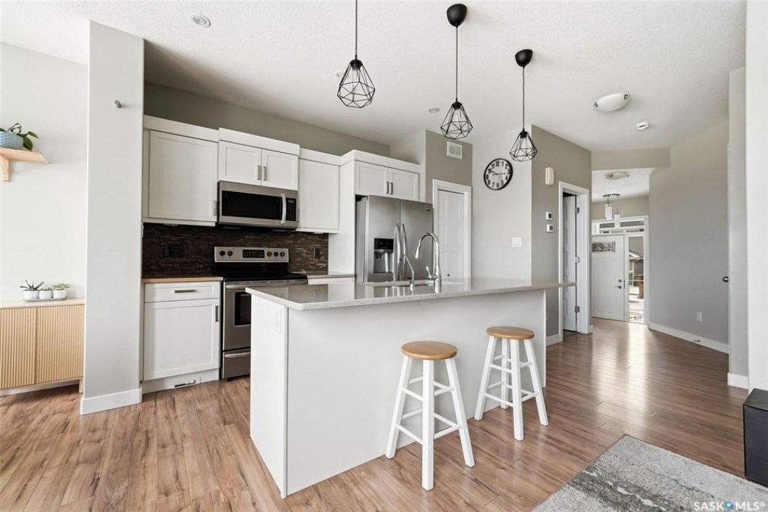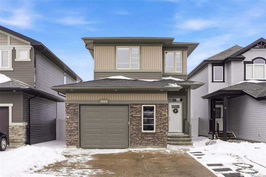 Welcome to 5668 Pearsall Crescent, ideally located in Harbour Landing and backing open green space, offering both privacy and beautiful prairie views. This well maintained two storey home, built by Dream and constructed on piles, provides 1,324 sq ft of functional living space with 4 bedrooms and 3 bathrooms. The main floor features a bright, open concept layout, perfect for everyday living and entertaining. The kitchen is thoughtfully designed with a central island, granite countertops, corner pantry, and stainless steel appliances, seamlessly flowing into the dining and living areas. A convenient two piece bathroom completes the main level. Upstairs, you will find a spacious primary bedroom with a large walk in closet and a four piece ensuite showcasing marble flooring and granite countertops. Two additional bedrooms offer great space for family or guests. The original laundry and linen area has been reconfigured to create a versatile bonus space, ideal for a home office, reading nook, den, or TV area. The partially developed basement adds even more value, featuring a fourth bedroom with a large egress window for added safety and comfort. The remaining space has been drywalled, includes rough in plumbing for a future bathroom, and is ready for your personal finishing touches. Enjoy the fully fenced backyard complete with a two tiered Trex deck and patio stone area, perfect for relaxing or entertaining outdoors, all while taking in the beautiful prairie sunsets that make evenings here truly special. Additional features include hot water on demand, owned water softener and reverse osmosis system, air to air exchanger, central air conditioning, and rough in for central vacuum, offering both comfort and convenience. Offers to be reviewed Monday April 13th at 12:00pm.