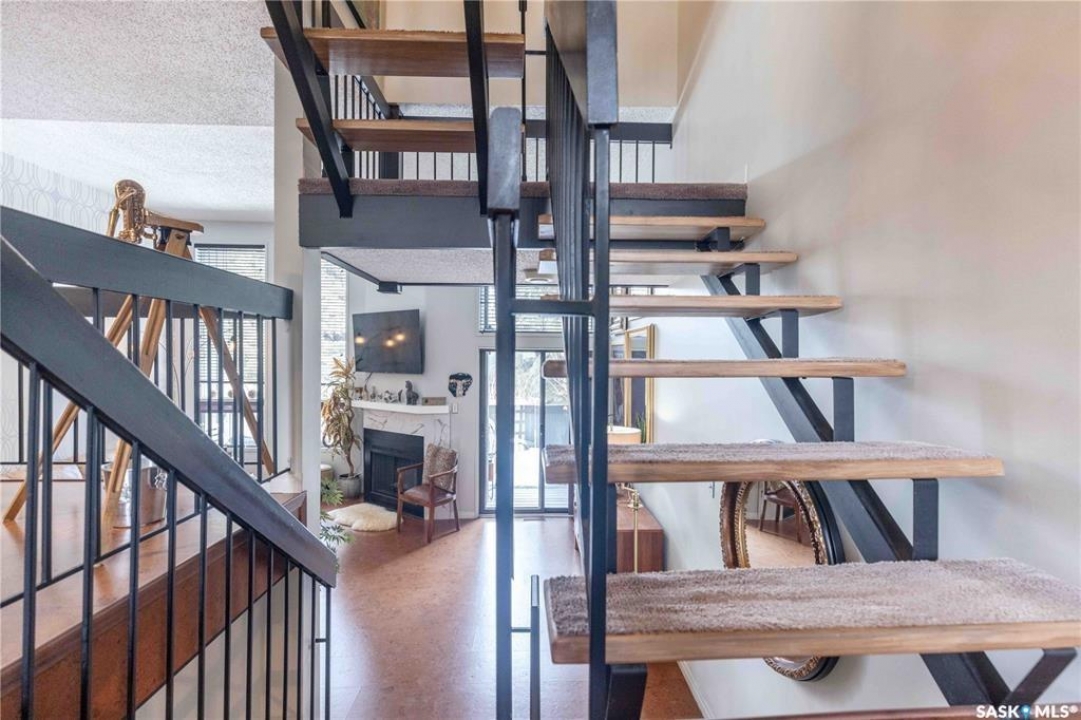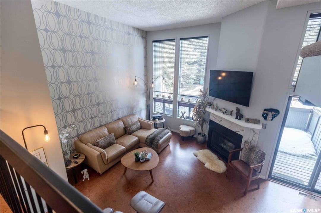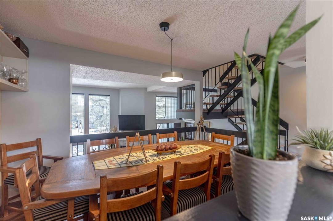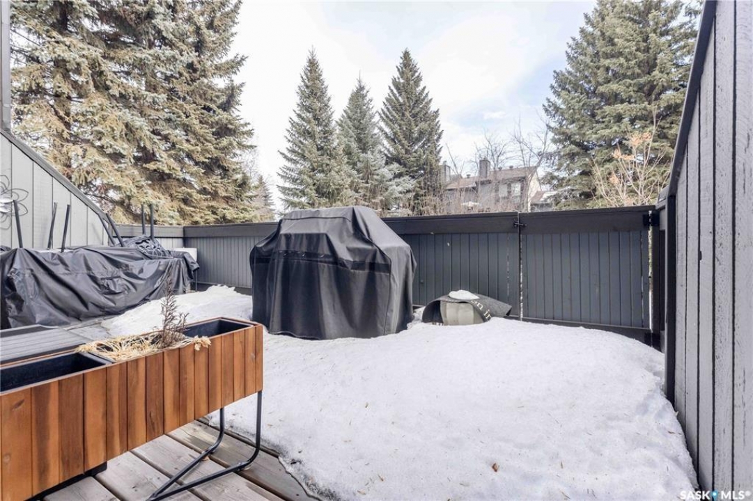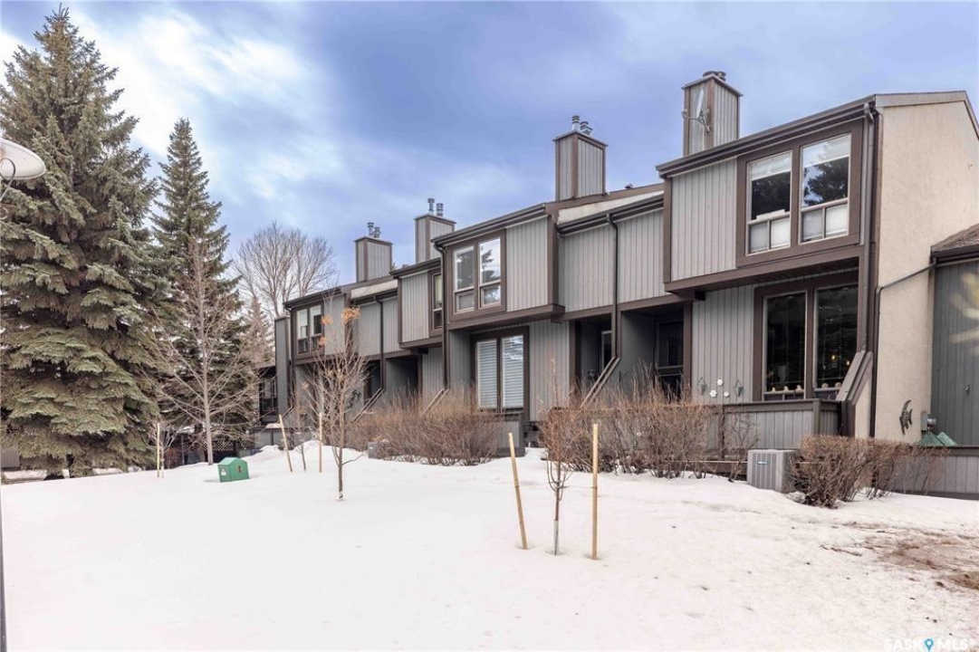 Classy best describes this tastefully designed townhouse in the sought-after Aspen Chase community, ideally located just steps from the river and all that the Meewasin Valley has to offer. Upon entry, you're welcomed by a spacious foyer that sets the tone for the home. The main living area features soaring vaulted ceilings and large windows that showcase beautiful views of the surrounding grounds while filling the space with natural light. Just off the living room, patio doors lead to a private, generously sized deck—perfect for relaxing or entertaining. The kitchen is equipped with newer stainless steel appliances and flows seamlessly into the dining area, making it ideal for hosting family and friends. A conveniently placed 2-piece powder room completes this level. Upstairs, the third floor offers a spacious primary bedroom with a walk-in closet and a 4-piece ensuite. Two additional bedrooms and another full 4-piece bathroom provide plenty of room for family or guests. The lower level includes a laundry area and additional storage space for added convenience. Enjoy the beautifully maintained grounds year-round, complete with an outdoor swimming pool, lounging area, and barbecue space—perfect for unwinding and fostering a true sense of community. Additional highlights include a single attached garage with direct entry, newer furnace, hot water heater, central air conditioning, and a natural gas barbecue hookup.