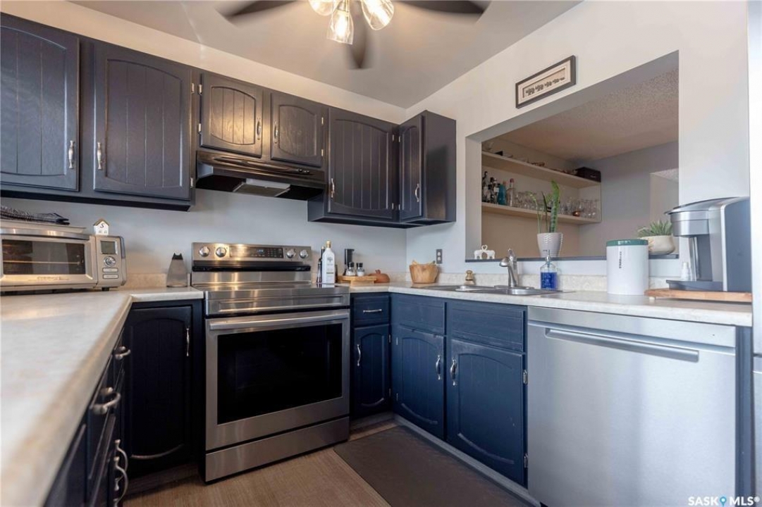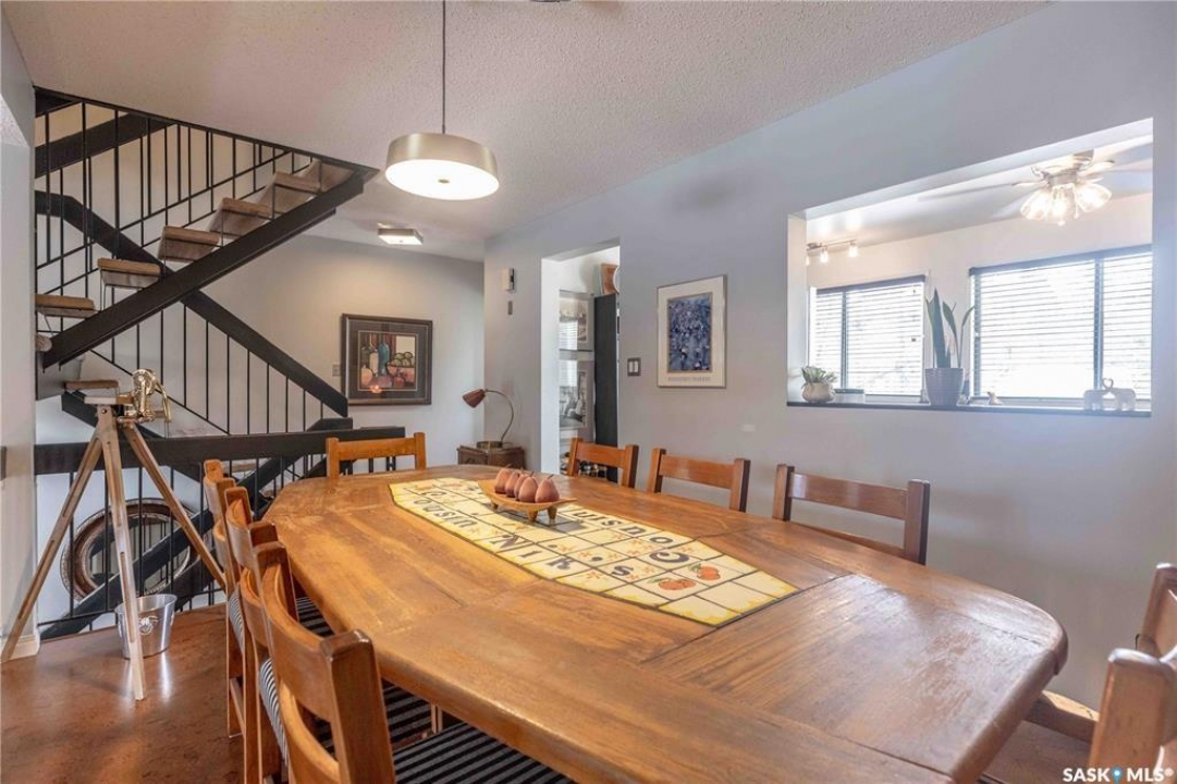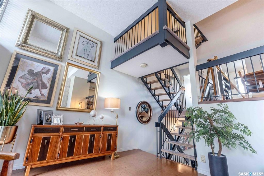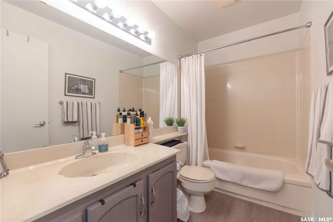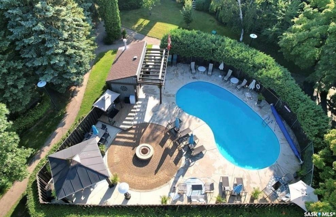 Classy best describes this tastefully designed townhouse in the sought-after Aspen Chase community, ideally located just steps from the river and all that the Meewasin Valley has to offer. Upon entry, you're welcomed by a spacious foyer that sets the tone for the home. The main living area features soaring vaulted ceilings and large windows that showcase beautiful views of the surrounding grounds while filling the space with natural light. Just off the living room, patio doors lead to a private, generously sized deck—perfect for relaxing or entertaining. The kitchen is equipped with newer stainless steel appliances and flows seamlessly into the dining area, making it ideal for hosting family and friends. A conveniently placed 2-piece powder room completes this level. Upstairs, the third floor offers a spacious primary bedroom with a walk-in closet and a 4-piece ensuite. Two additional bedrooms and another full 4-piece bathroom provide plenty of room for family or guests. The lower level includes a laundry area and additional storage space for added convenience. Enjoy the beautifully maintained grounds year-round, complete with an outdoor swimming pool, lounging area, and barbecue space—perfect for unwinding and fostering a true sense of community. Additional highlights include a single attached garage with direct entry, newer furnace, hot water heater, central air conditioning, and a natural gas barbecue hookup.