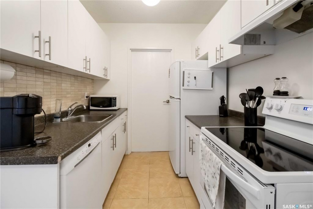 Welcome to this beautifully maintained top-floor condo in the popular Wildwood neighborhood. Perfect for first time buyers, students and investors. This bright and inviting 2-bedroom, 1 bathroom unit offers a functional layout with a warm west-facing exposure, filling the space with natural light and the perfect setting to enjoy sunsets on your updated balcony. The home has seen numerous updates including newer windows, an upgraded kitchen and 4-piece bathroom. You will appreciate the spacious bedrooms and large closets with built-in organizers. The open layout living and dining area offers plenty of room for a kitchen table. The large in-suite storage room/laundry room features a full size washer and dryer, adding both convenience and extra space. Condo fees include water, heat, common insurance, reserve fund, snow removal, lawn care and janitorial services. The condo backs walking paths, Wildwood golf course and is steps to Lakewood Civic Centre as well as many amenities on 8th Street.