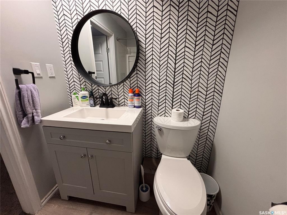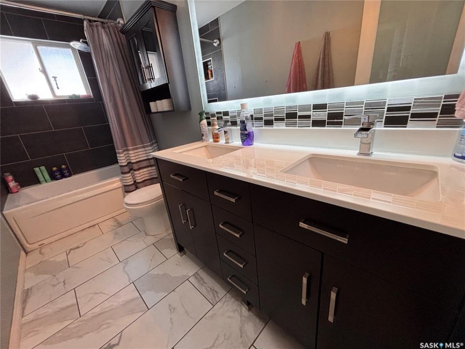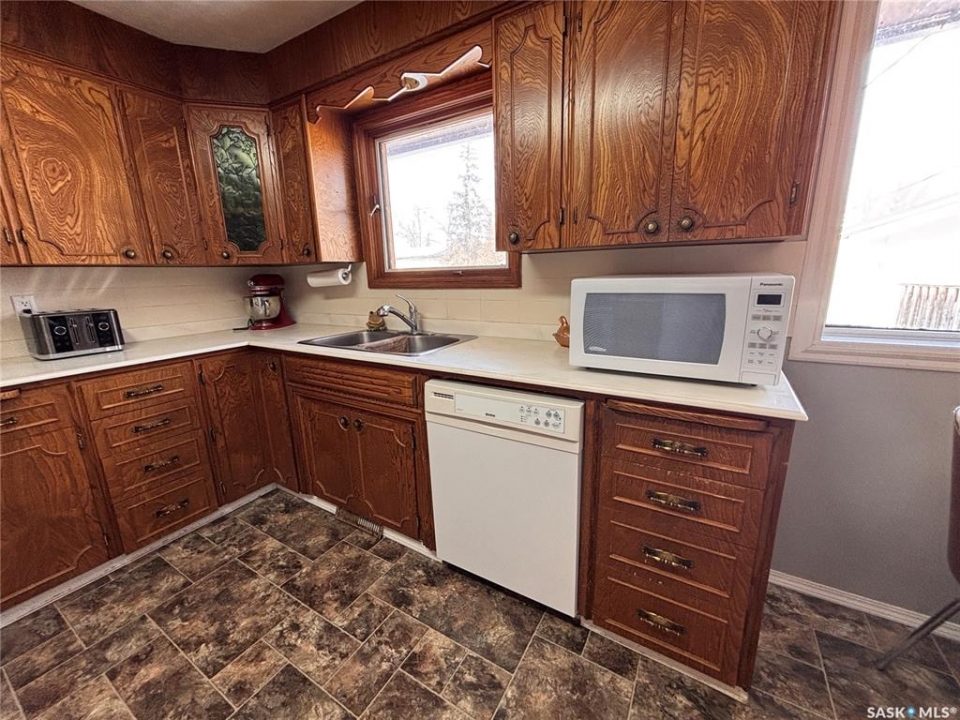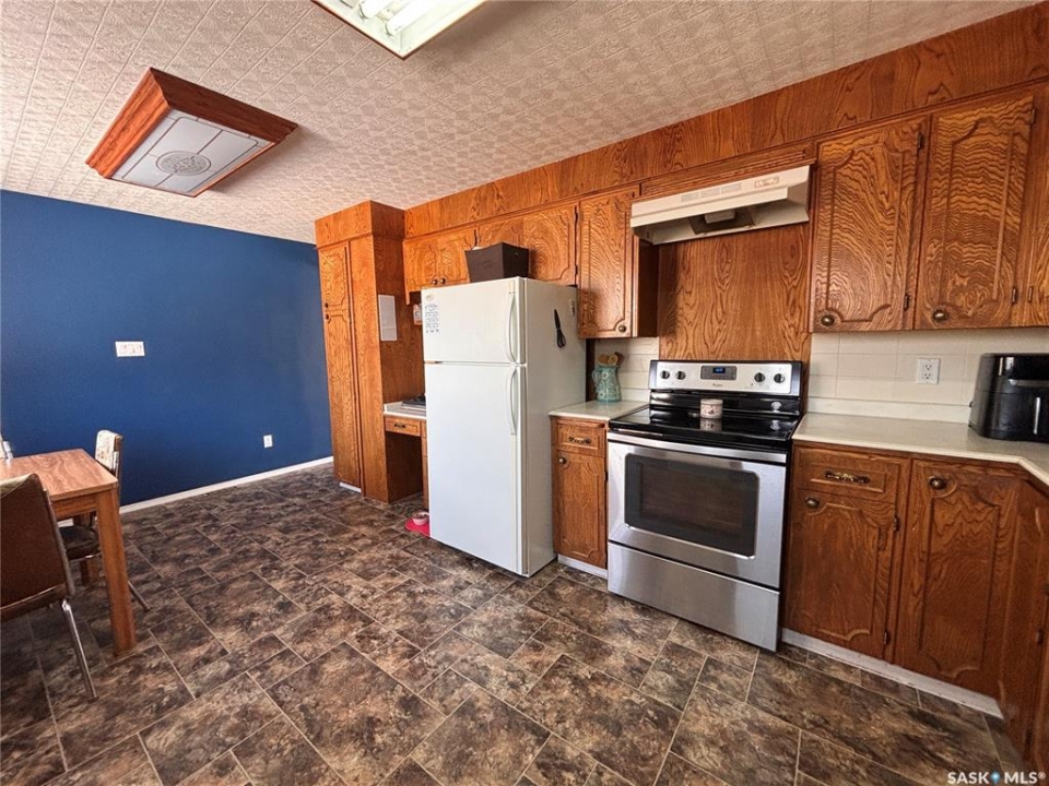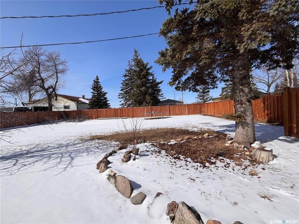 Welcome to this spacious and well-maintained home located on a double lot in the quiet community of Alsask! Offering over 1,100 sq ft of living space, this property provides plenty of room for families both inside and out. The main floor features a bright and expansive living room alongside a large, functional kitchen with fridge and hood fan included —perfect for everyday living and entertaining. You'll find two bedrooms on the main level, including an oversized primary bedroom, as well as a beautifully appointed bathroom complete with heated tile floors, a large tub with shower, and double sinks. At the back of the home, a convenient porch area offers ample storage and garden doors that lead directly to a spacious deck—ideal for enjoying the fully fenced yard. The property also includes access to a double detached garage, providing plenty of room for parking and storage. The updated basement adds even more living space, featuring new drywall, trim, doors, and carpet. A generous family room creates the perfect gathering area, with access to the utility room just off this space. Down the hall, you'll find a full 4-piece bathroom and two additional well-sized bedrooms. Situated on a large double lot, this property offers excellent outdoor space and privacy. Don't miss your chance to own this versatile and move-in ready home—call today to book your private viewing!