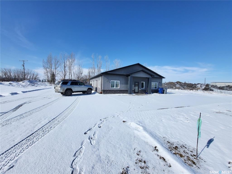 Commercial Office Building – Vanscoy, SK Lot 4, Block B, Plan 81S42576 Well-maintained 2,400 sq. ft. commercial office building located in Vanscoy, Saskatchewan, offering excellent access with both paved and gravel road approaches. Built in 2013, this property sits on 0.55 acres with approximately 140 ft of frontage and ample onsite parking. The building features wood frame and masonry construction and is serviced with natural gas, public water line, municipal sewer, power, and phone. Heating is provided by an energy-efficient natural gas forced air furnace, along with air conditioning for year-round comfort. Inside, the building includes two 2-piece bathrooms and functional office space suitable for a variety of commercial uses. Additional exterior improvements include two concrete pads measuring approximately 40' x 30' and 90' x 30', providing flexibility for equipment storage, additional structures, or outdoor operations. The property is currently vacant but has strong income potential and could be rented for approximately $3,500 per month triple net, making it an attractive opportunity for investors. Property Highlights • 2,400 sq. ft. commercial building • Built in 2013 • 0.55 acre lot • Natural gas forced-air heating & air conditioning • Two 2-piece bathrooms • Two concrete pads (40' x 30' and 90' x 30') • Onsite parking • Public water & municipal sewer • Vacant with potential rental income of approx. $3,500/month triple net
