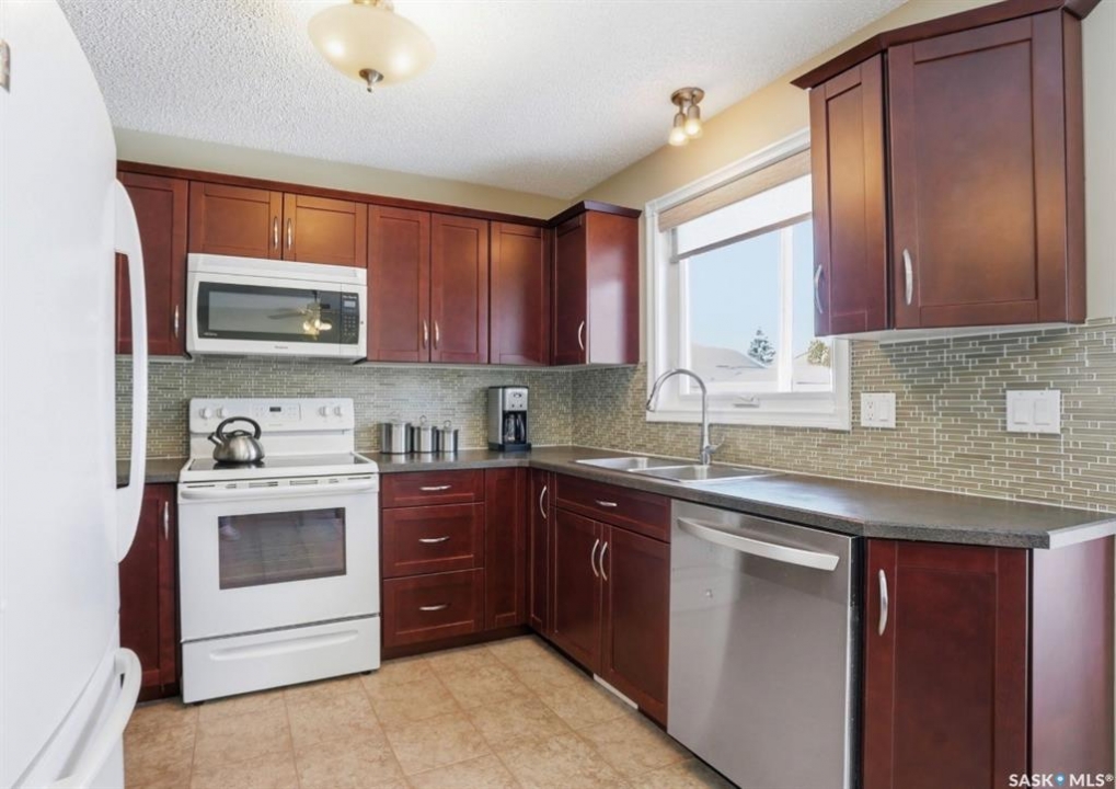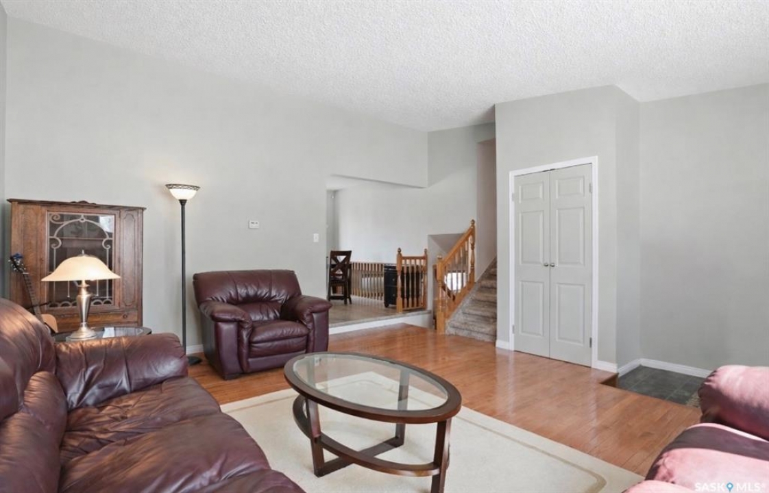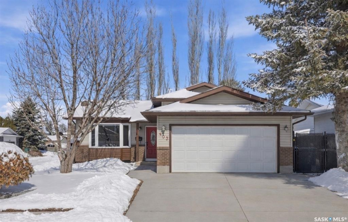 Fully developed four-level split located in the beautiful community of LakeRidge, set on a desirable corner lot on a quiet crescent. This extremely well-maintained family home offers 1,011 sq. ft. on two levels, PLUS TWO MORE additional fully developed levels providing exceptional living space. The exterior presents beautiful, manicured landscaping that truly stands out in the neighbourhood. This yard is the envy of the neighborhood! Inside, you're welcomed into a bright, spacious living room featuring hardwood flooring and a large front window, flowing into the updated kitchen with solid classic wood cabinets and dining area. From here, enjoy views of the backyard, complete with a newer two-tier treated deck—perfect for summer barbecues and family gatherings. The upper level offers three spacious bedrooms and an updated four-piece bathroom with a one- piece tub surround. Just a few steps down from the main, the third level features a very spacious family room and games area with large raised windows that bring in plenty of natural light, along with an additional three--piece bathroom—an ideal space for relaxing or entertaining. There is even more space in this home! The fully developed fourth level includes three finished rooms, currently used as a laundry area, den, and office, along with additional storage and utility space. This home has been lovingly maintained and includes numerous updates: underground sprinklers (front and back), maintenance-free fencing, fabulous two-tier deck, furnace (2008), hot water tank (2008), central air (2005), central vacuum (never used), shingles (2011), replaced windows (2020), updated kitchen (2012), and hardwood flooring in the living room and hall. An excellent opportunity to own a fully developed home in one of Saskatoon's (eastside) established and desirable areas with two excellent schools close by, and parks, shopping and restaurants. Presentation of offers Monday Apr 13, 5:00 PM.