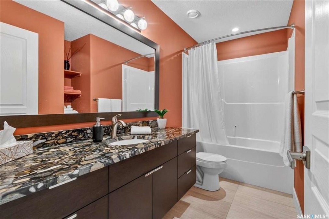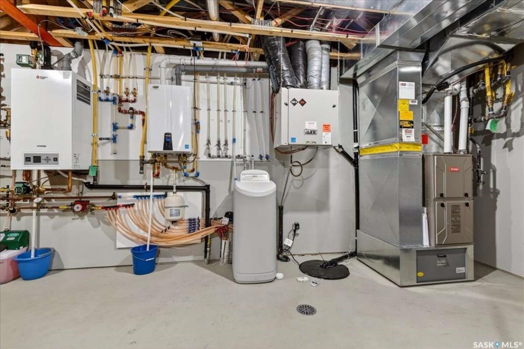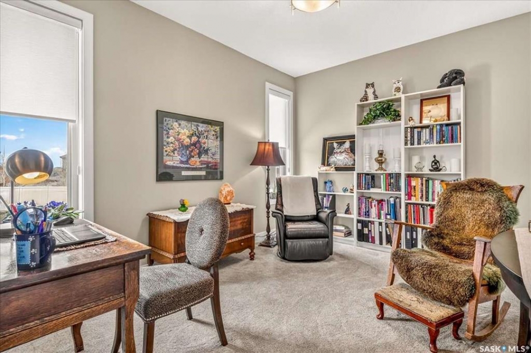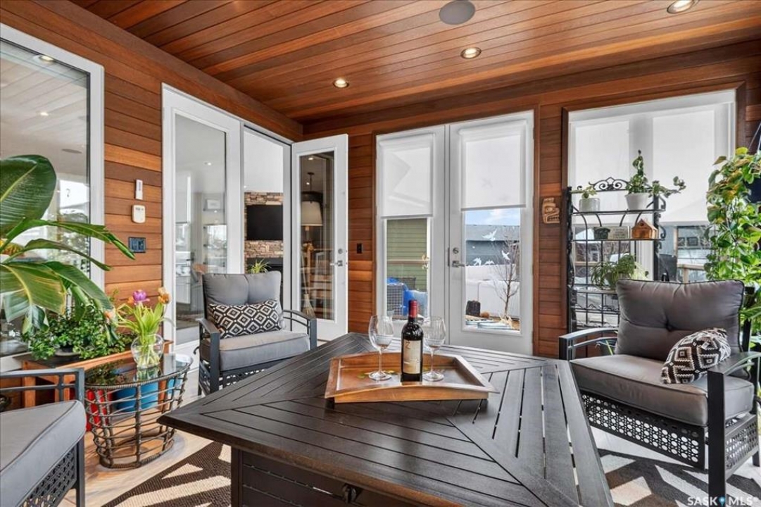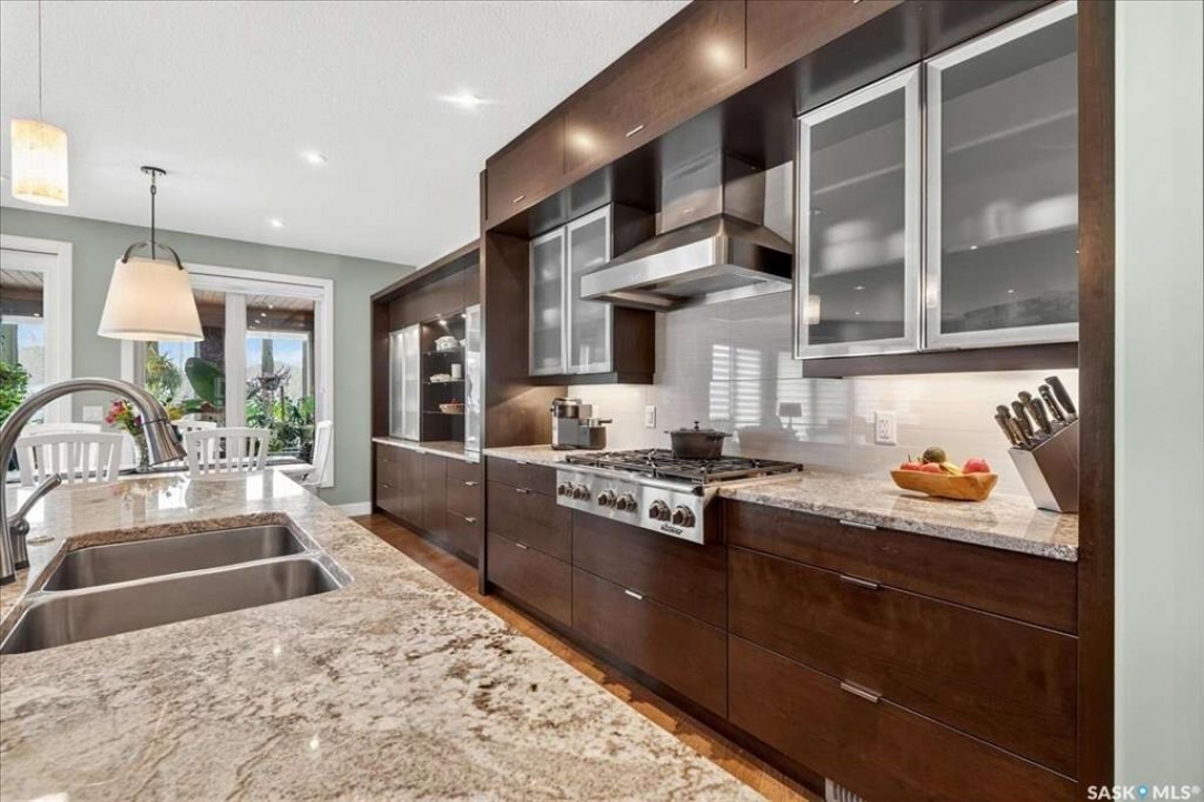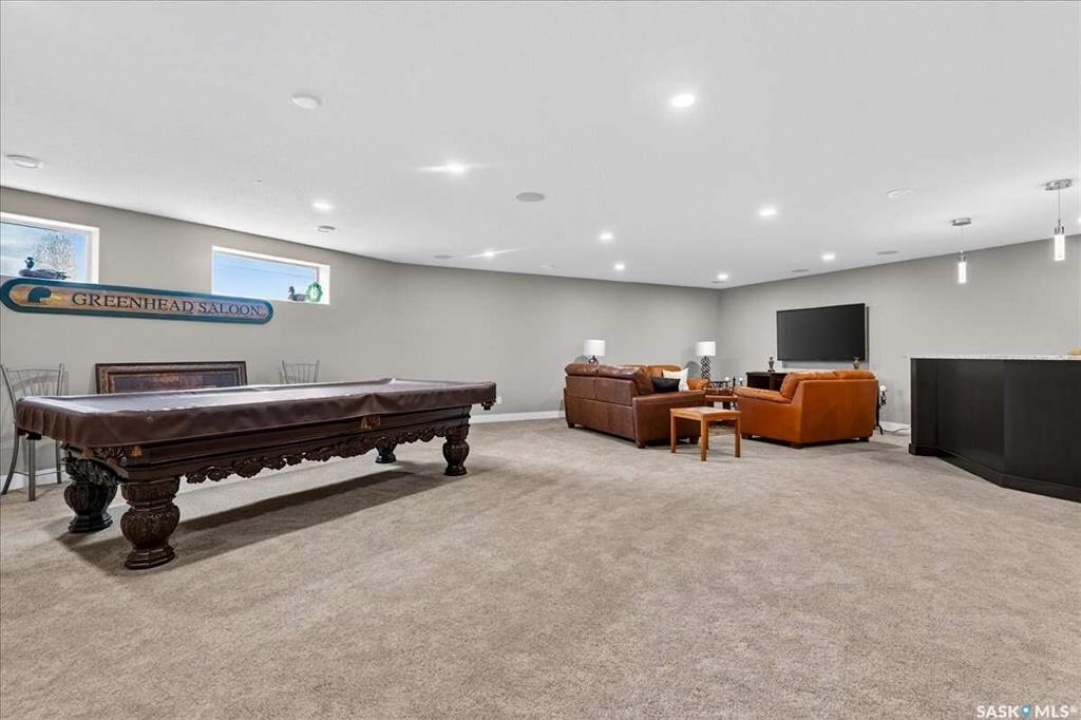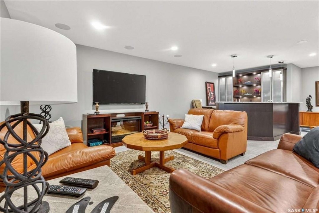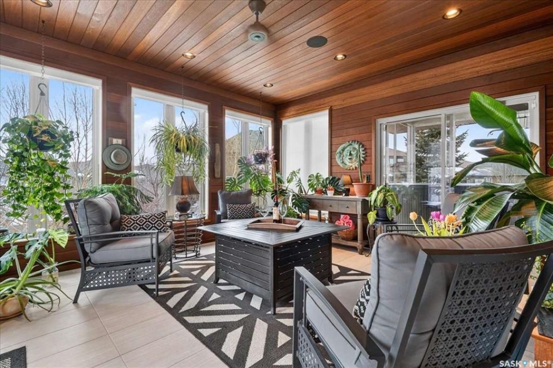 For more information, please click the "More Information" button. 4134 Timber Creek Place, Regina, Saskatchewan S4V 3G7 is a beautifully crafted custom Munro home offering 2,273 sq ft on the main floor, designed with high-end finishes throughout. The home welcomes you with 9-foot ceilings, hardwood flooring, and large windows with electric light-filtering blinds that bring in abundant natural light. The open-concept layout features a spacious living room with a stunning stone gas fireplace, built-in shelving, and cabinetry. The kitchen centers around a large island with granite countertops and includes premium appliances such as a Decro 6-burner gas stove, wall oven, microwave, Sub-Zero fridge/freezer, and a walk-in pantry. The dining area includes matching cabinetry and opens to a four-season sunroom with radiant in-floor heating, along with an adjacent screened and covered space featuring a Hot Springs hot tub. The primary bedroom is generously sized with a large closet and a luxurious ensuite featuring a soaker tub, custom tiled shower, and dual sinks. The main floor also includes an additional bedroom, bathroom, den, and a laundry room with custom cabinetry. The finished basement offers two more bedrooms, a 4-piece bathroom, and a large recreation room with a granite bar and appliances, ideal for entertaining. The mechanical room includes a Control-4 system managing heating, cooling, sound, and TV, plus a Sub-Zero freezer. The garage, basement, and sunroom all feature in-floor heating supported by a Triangle Tube boiler, Navien system, and Bryant furnace. The triple garage includes 15-foot ceilings, epoxy heated floors, and a vehicle lift. Outside features include a patio, planters, mature trees, a Generac generator, gemstone lighting, and a security system, with snow and lawn care handled by the bare-land strata.