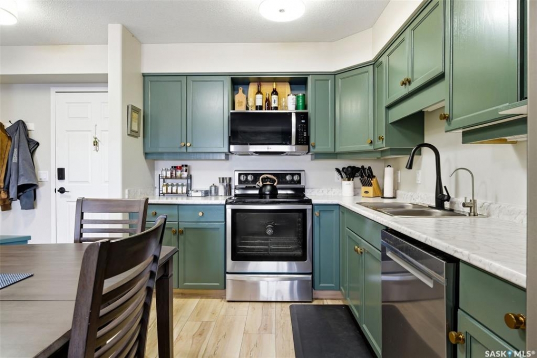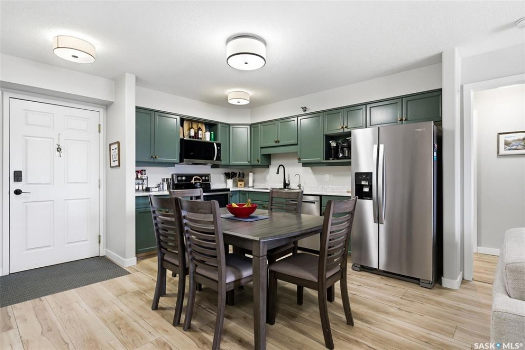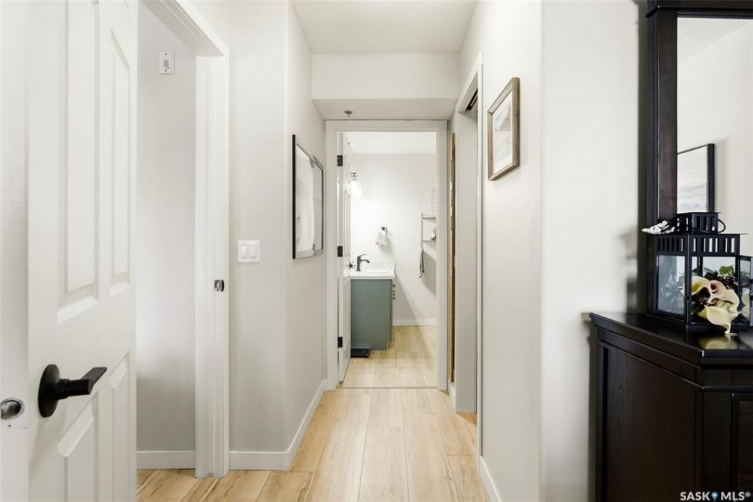 Welcome to 303–100 5th Avenue in Regina Beach—enjoy lake living without the upkeep. Positioned on the top floor, this fully updated 2 bedroom, 2 bathroom condo offers a quiet, light-filled retreat just steps from the shoreline. The main living space is open and inviting, with large windows that draw in natural light and create a warm, comfortable setting for both everyday living and hosting. Recent updates run throughout the home, including new flooring, fresh paint, updated lighting, and refined finishes that give the space a clean, cohesive feel. The kitchen has been refreshed with new appliances, refreshed cabinetry offering thoughtful storage and a functional layout. Step outside to your private, west-facing balcony—an ideal place to unwind and take in the evening light. Both bedrooms are well-sized, including a primary suite designed for comfort and privacy. Additional updates include refreshed plumbing fixtures, hardware, and a new dryer—details that contribute to a truly move-in ready experience. Heated underground parking keeps your vehicle protected year-round, with dedicated storage conveniently located just in front of your stall. Residents also enjoy access to a shared amenities lounge, elevator, and the ease of condo fees that include the majority of utilities. Set within walking distance to the beach, the Regina Beach Golf Club, and local shops and dining, this is a lifestyle location—perfect for those who value simplicity, access to nature and a slower pace. Lake life is calling!