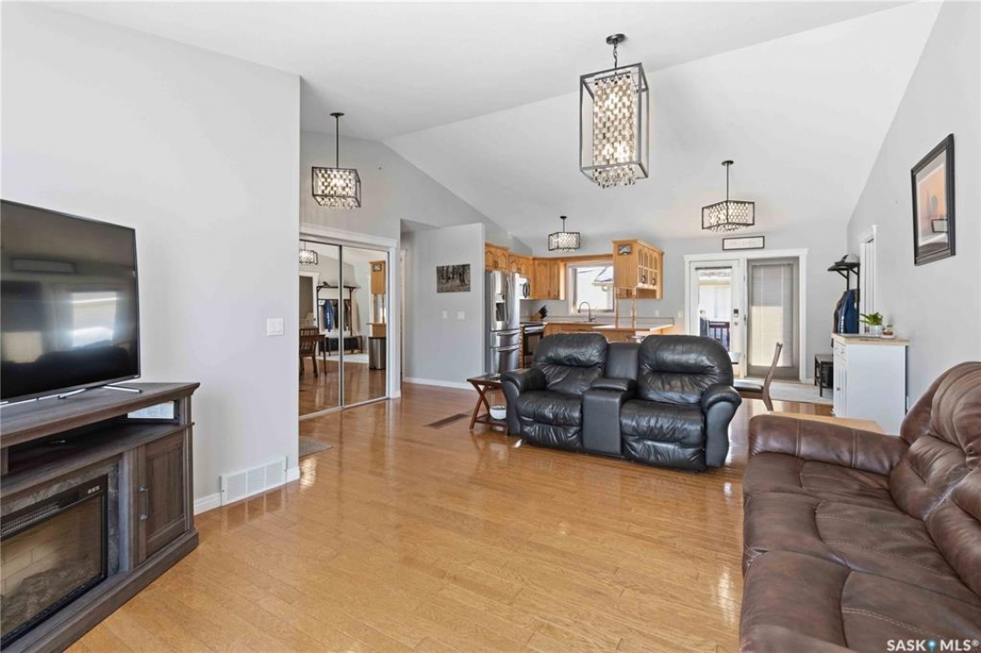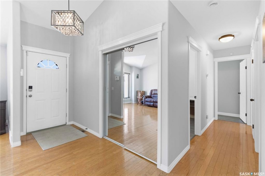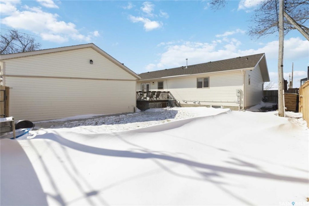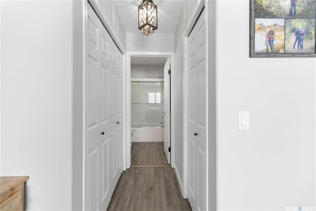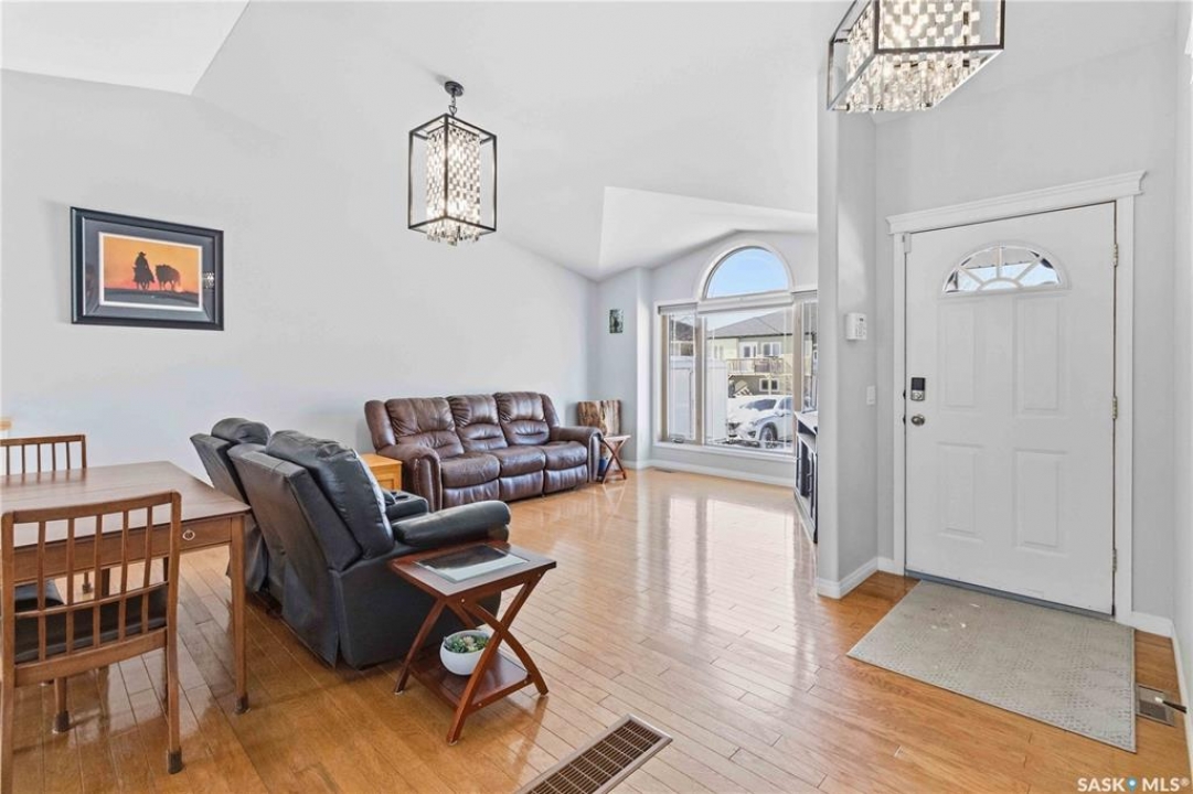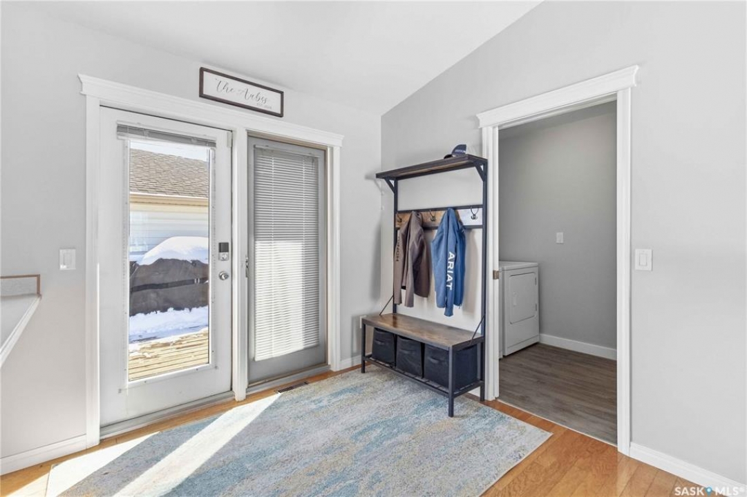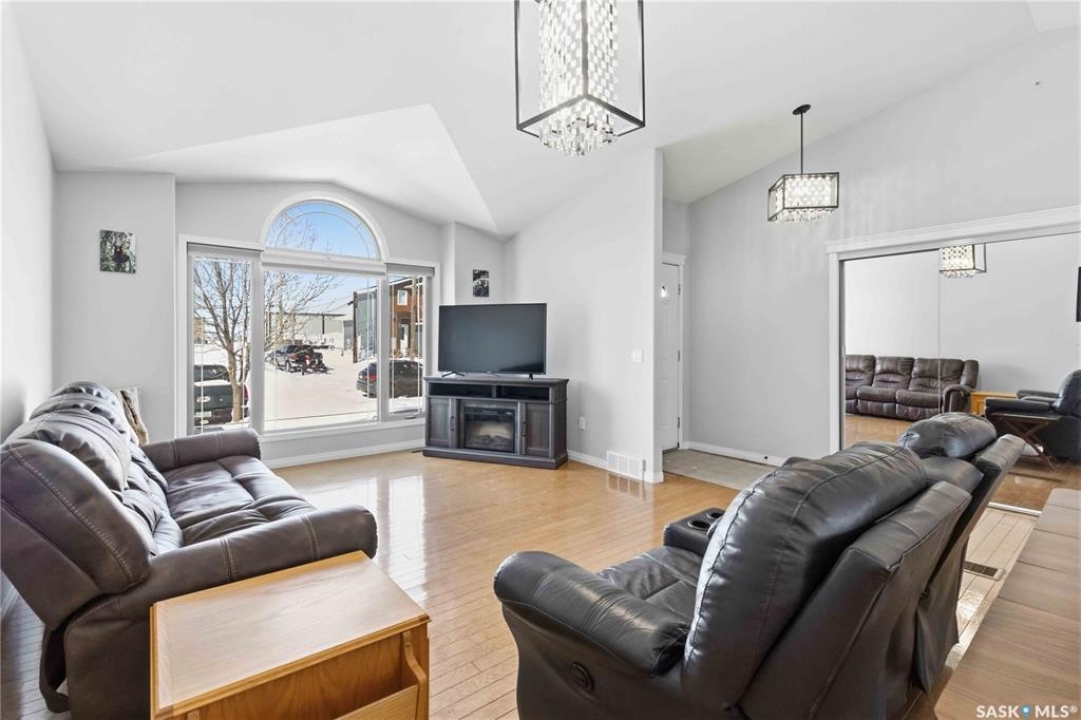 Welcome to this immaculate, 5-bedroom, 4-bathroom home located in the thriving community of Martensville—offering exceptional value with a rare two-bedroom, two-bathroom LEGAL BASEMENT SUITE! The thoughtful home design suits a variety of lifestyles with the potential for a mortgage helper or investment option, while a convenient interior access door to the suite allows the home to function seamlessly for one family if desired—perfect for multi-generational living or growing families seeking extra space. From the moment you arrive, you'll appreciate the inviting curb appeal highlighted by a charming front veranda—perfect for enjoying your morning coffee. Step inside to a bright and welcoming living room featuring vaulted ceilings that create an open, airy feel. The well-appointed kitchen and dining area offer both functionality and style. Main floor laundry and a large storage area adds everyday convenience. The spacious primary bedroom includes generous closet space and a private en suite, while two additional bedrooms and a full bathroom complete the main level. Downstairs, you'll find a standout feature: a modern and rare two-bedroom, two-bathroom legal basement suite with a private entrance and separate laundry for convenience and privacy for both levels. The former front-attached garage has been thoughtfully converted into a versatile bonus space—perfect for easy grocery unloading, bike storage, or additional organization—with direct access to the home. Central air conditioning finishes off the home, ensuring year-round comfort. Outside, the impressive 70x100 lot provides plenty of room to enjoy. A heated 26x30 detached garage is a dream for hobbyists or additional parking, while the deck and patio area with gas BBQ hookup make outdoor entertaining effortless. This is a rare opportunity to own a beautifully maintained home with income potential in one of Saskatchewan's most desirable communities—don't miss the chance to make it yours!