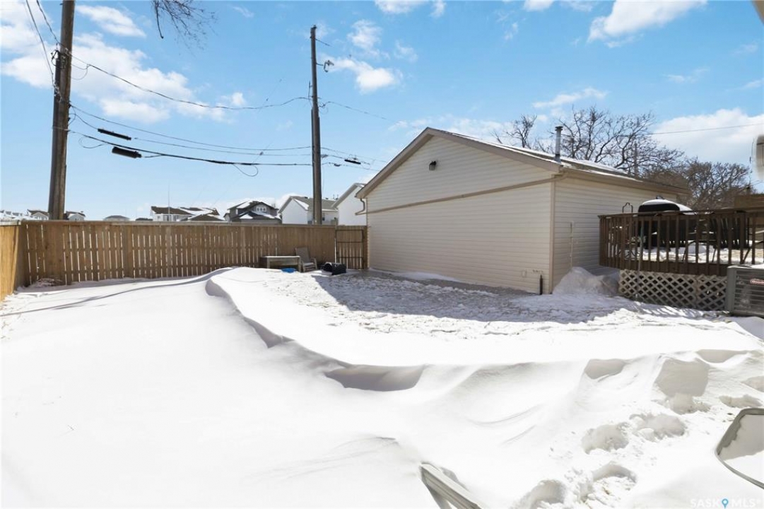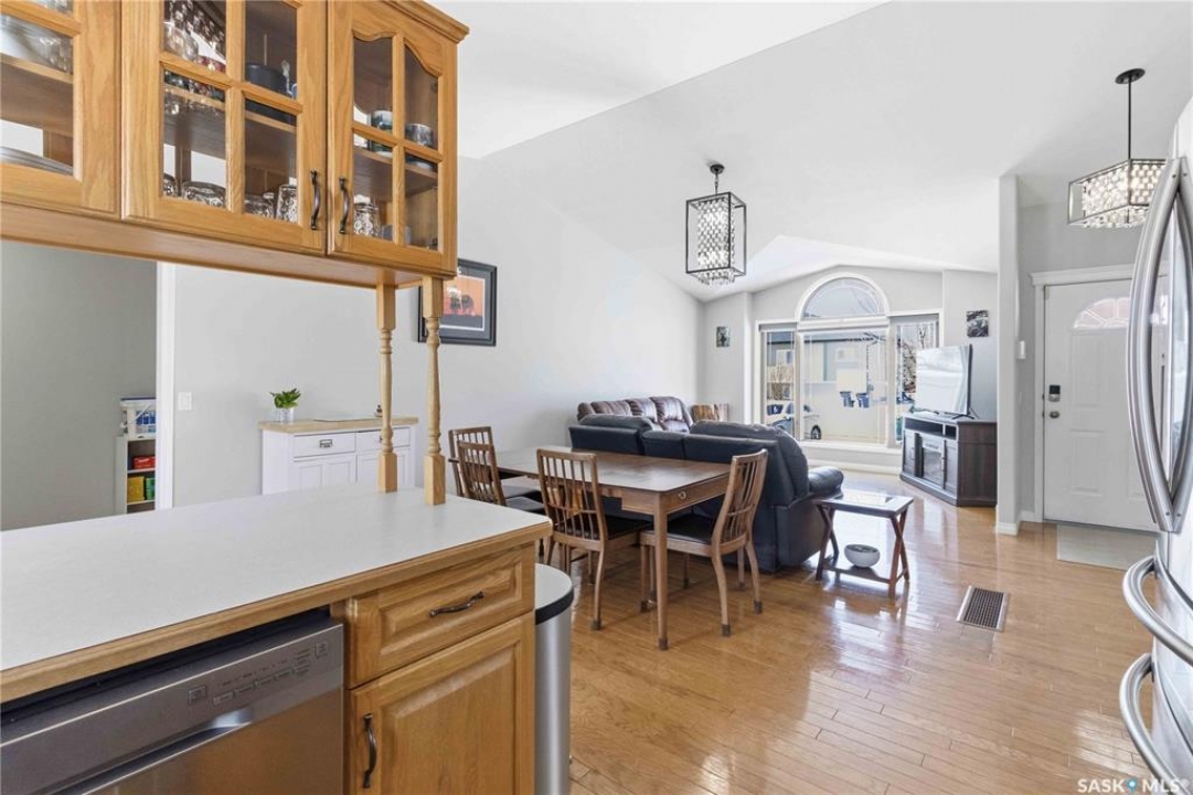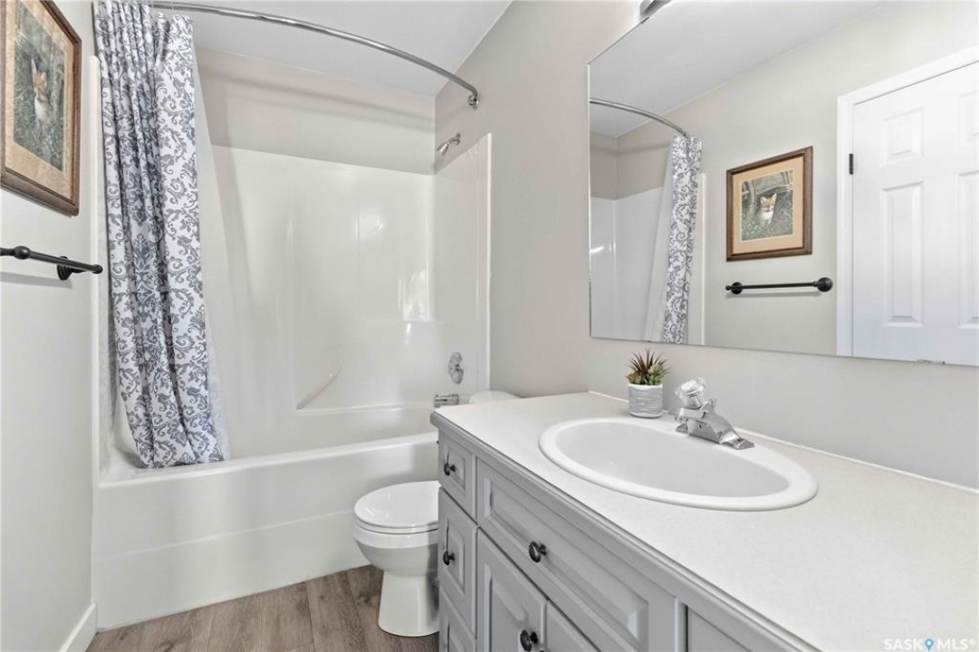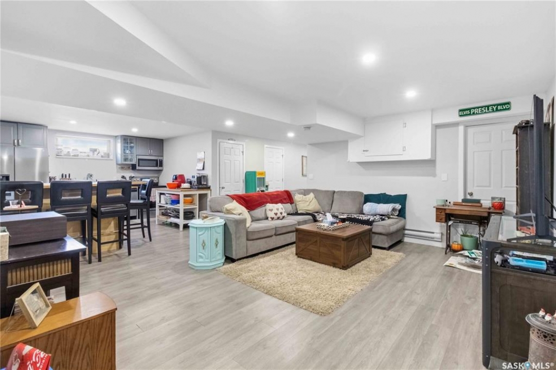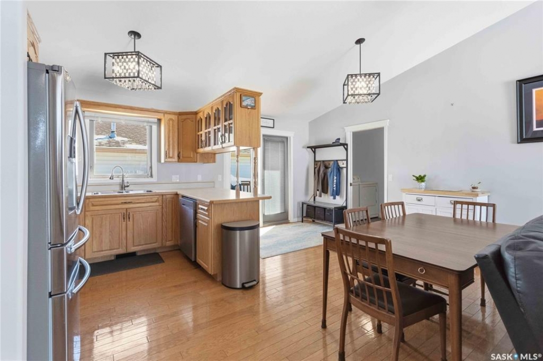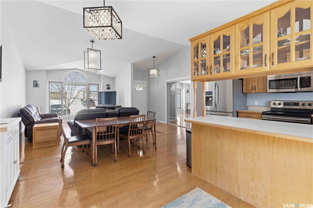 Welcome to this immaculate, 5-bedroom, 4-bathroom home located in the thriving community of Martensville—offering exceptional value with a rare two-bedroom, two-bathroom LEGAL BASEMENT SUITE! The thoughtful home design suits a variety of lifestyles with the potential for a mortgage helper or investment option, while a convenient interior access door to the suite allows the home to function seamlessly for one family if desired—perfect for multi-generational living or growing families seeking extra space. From the moment you arrive, you'll appreciate the inviting curb appeal highlighted by a charming front veranda—perfect for enjoying your morning coffee. Step inside to a bright and welcoming living room featuring vaulted ceilings that create an open, airy feel. The well-appointed kitchen and dining area offer both functionality and style. Main floor laundry and a large storage area adds everyday convenience. The spacious primary bedroom includes generous closet space and a private en suite, while two additional bedrooms and a full bathroom complete the main level. Downstairs, you'll find a standout feature: a modern and rare two-bedroom, two-bathroom legal basement suite with a private entrance and separate laundry for convenience and privacy for both levels. The former front-attached garage has been thoughtfully converted into a versatile bonus space—perfect for easy grocery unloading, bike storage, or additional organization—with direct access to the home. Central air conditioning finishes off the home, ensuring year-round comfort. Outside, the impressive 70x100 lot provides plenty of room to enjoy. A heated 26x30 detached garage is a dream for hobbyists or additional parking, while the deck and patio area with gas BBQ hookup make outdoor entertaining effortless. This is a rare opportunity to own a beautifully maintained home with income potential in one of Saskatchewan's most desirable communities—don't miss the chance to make it yours!