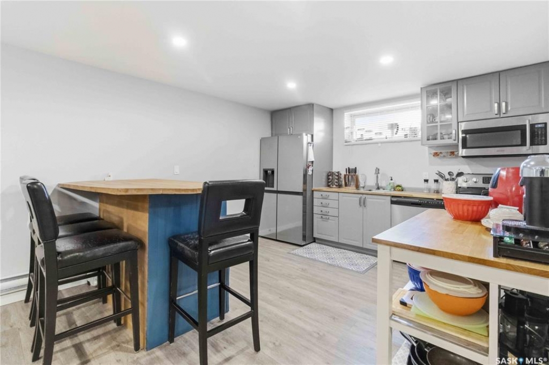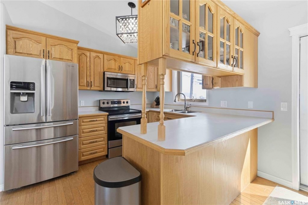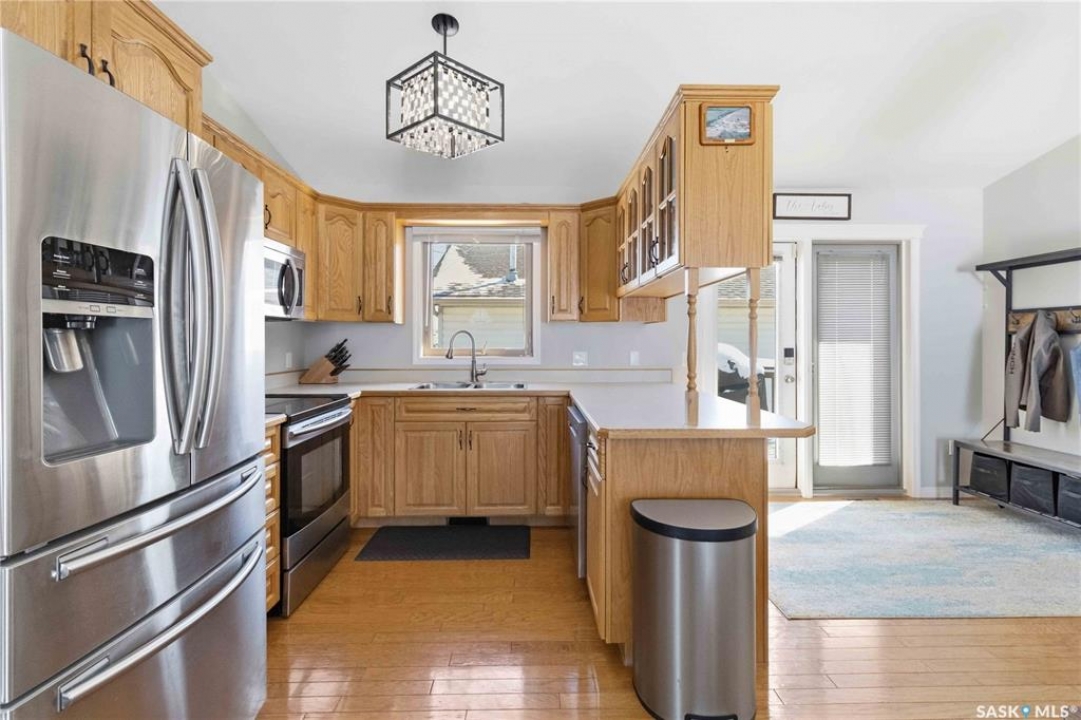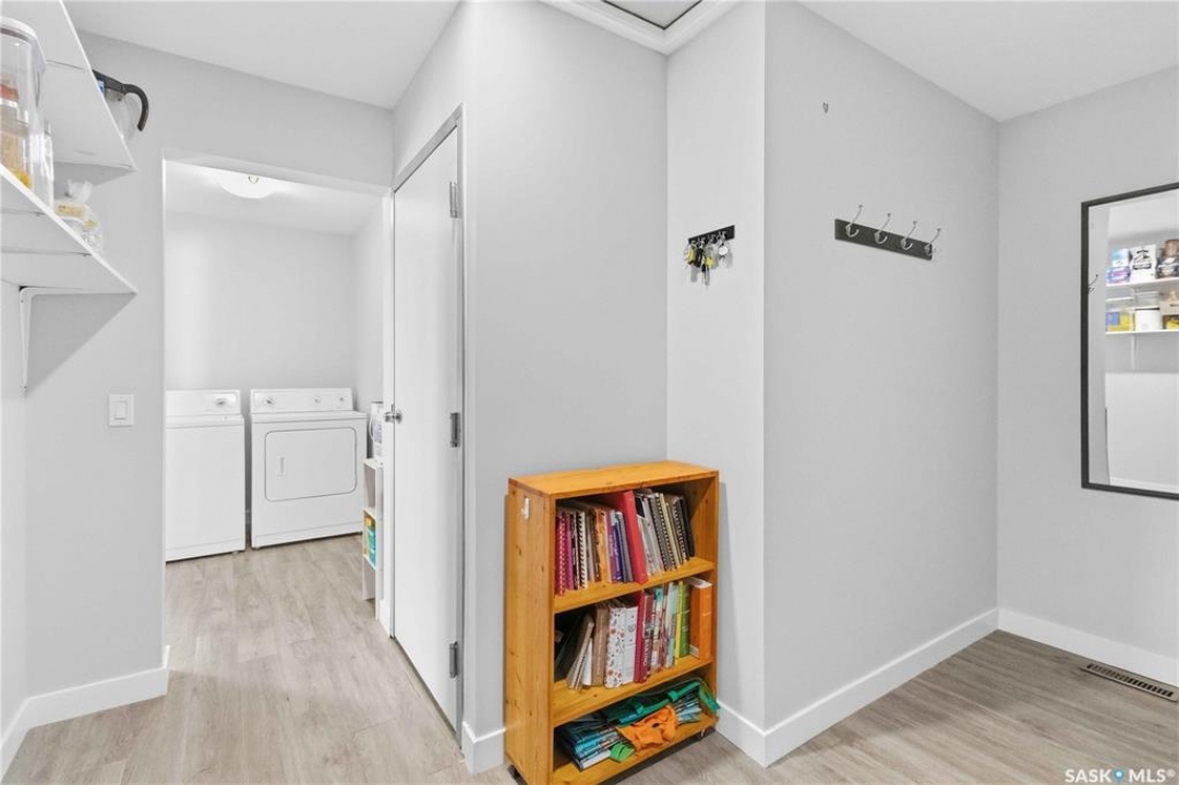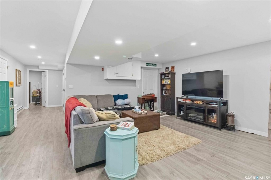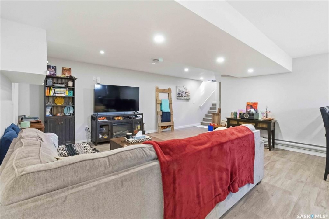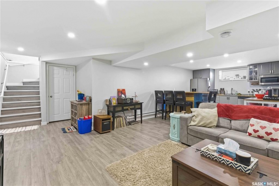 Welcome to this immaculate, 5-bedroom, 4-bathroom home located in the thriving community of Martensville—offering exceptional value with a rare two-bedroom, two-bathroom LEGAL BASEMENT SUITE! The thoughtful home design suits a variety of lifestyles with the potential for a mortgage helper or investment option, while a convenient interior access door to the suite allows the home to function seamlessly for one family if desired—perfect for multi-generational living or growing families seeking extra space. From the moment you arrive, you'll appreciate the inviting curb appeal highlighted by a charming front veranda—perfect for enjoying your morning coffee. Step inside to a bright and welcoming living room featuring vaulted ceilings that create an open, airy feel. The well-appointed kitchen and dining area offer both functionality and style. Main floor laundry and a large storage area adds everyday convenience. The spacious primary bedroom includes generous closet space and a private en suite, while two additional bedrooms and a full bathroom complete the main level. Downstairs, you'll find a standout feature: a modern and rare two-bedroom, two-bathroom legal basement suite with a private entrance and separate laundry for convenience and privacy for both levels. The former front-attached garage has been thoughtfully converted into a versatile bonus space—perfect for easy grocery unloading, bike storage, or additional organization—with direct access to the home. Central air conditioning finishes off the home, ensuring year-round comfort. Outside, the impressive 70x100 lot provides plenty of room to enjoy. A heated 26x30 detached garage is a dream for hobbyists or additional parking, while the deck and patio area with gas BBQ hookup make outdoor entertaining effortless. This is a rare opportunity to own a beautifully maintained home with income potential in one of Saskatchewan's most desirable communities—don't miss the chance to make it yours!