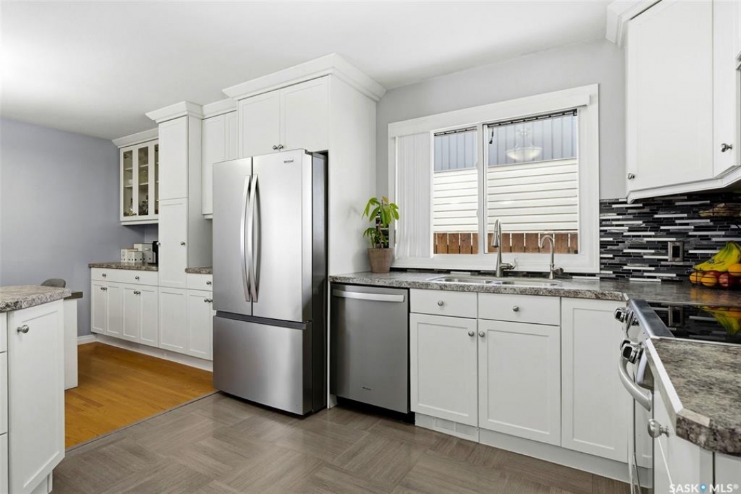 Welcome to 108 Matheson Crescent. A fantastic option for a first-time couple or an established family looking for more square footage. This property has received many important updates over the years, offers incredible storage space, and is beautifully located in the north end. Upon entering the home, you step into a large foyer; around the corner, you're greeted by a huge main floor where the living room, dining area, and kitchen are open and connected. The kitchen underwent a major transformation, adding drawers, an upright pantry, a drink fridge, and stainless steel appliances (the fridge is brand new). The island is a true showstopper, offering plenty of room for pizza and entertaining. The dining room is spacious and complemented by additional functional cabinetry. Up on the second level, you'll find the main 4-piece bathroom, a spacious primary bedroom, and two large secondary bedrooms, all featuring large windows and ample closet space. Down on the third level, you'll find a huge rec space, complemented by a custom dry bar with a concrete top, a gas fireplace, and direct access to the garage, while large windows make the space feel bright and usable. The bar area can easily be converted into a 4th bedroom with an egress window if someone desires. The fourth level provides additional living space, currently set up as a kids' play area and a gym, along with a laundry/utility room that offers built-in storage and updated washer and dryer units. The backyard is a great space, featuring a new patio (2019), a gazebo with built-in misters to cool off the south-facing yard, and usable raised garden beds. The home also offers an 18x23 attached garage, updated windows, an updated electrical panel, an updated sewer line (2008), and a new front patio (2025). This home has so much to offer. Contact your real estate professional for more information.