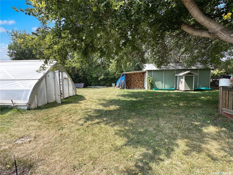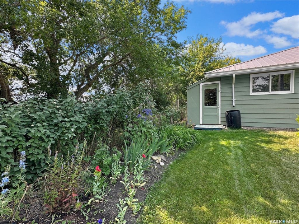 Welcome to the charming community of Edgeley, just a short 30-minute commute to Regina—offering the perfect blend of small-town ease with an acreage-like setting. Tucked within the RM of South Qu'Appelle, this hidden gem delivers space, privacy, and a lifestyle that's increasingly hard to find. Set on a huge, beautifully maintained lot, this property is a dream for anyone craving a more self-sufficient way of living. Enjoy your own garden, greenhouse, large shed, and wood storage (wood included), along with an incredible variety of established perennials and edibles including grapes, apples, haskaps, pie cherries, plums, raspberries, asparagus, and mature shrubs and flowers. It's a truly turnkey opportunity to grow your own food and embrace country living—without sacrificing convenience. The home itself is immaculate and feels like a romantic country retreat. A spacious entry welcomes you in, leading to a warm and inviting kitchen featuring a striking real metal backsplash and a large pantry. The dining area is bright and open, perfect for everyday living or hosting. The main floor also offers a versatile office that could easily function as a bedroom, a beautifully updated bathroom with charming antique-style fixtures, and a comfortable bedroom. Newer windows throughout enhance both efficiency and natural light. Downstairs, you'll find an additional bedroom, a convenient half bath, a generous laundry area, and a cold room ideal for food storage. A cozy wood stove adds to the home's character, while the high-efficiency gas furnace keeps utility costs manageable. If you've been searching for a peaceful, turn-key property with space to breathe, grow, and live more intentionally—while still enjoying an easy commute to the city—this is it. Contact your favorite local agent for details and your private showing.