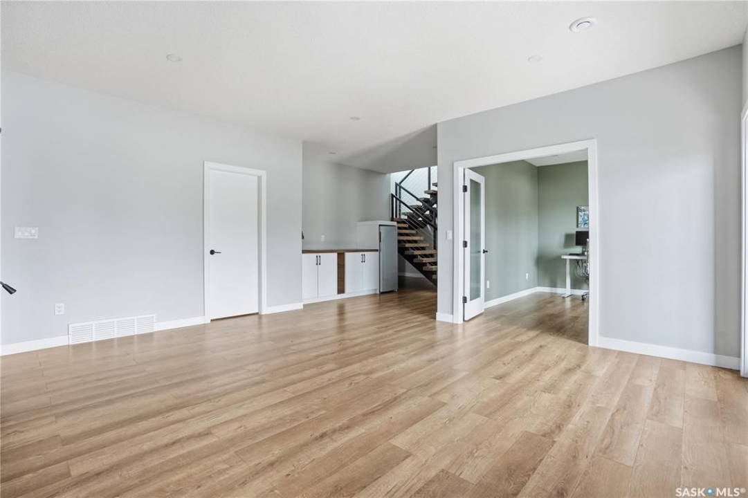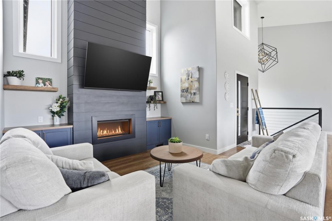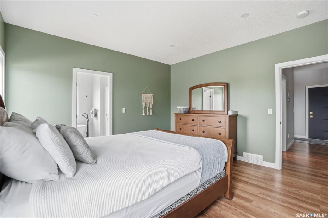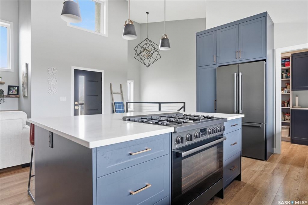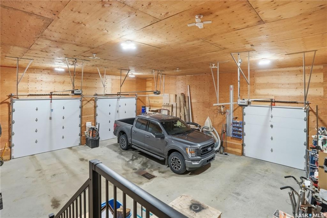 Welcome to acreage life on just over 10 acres with direct highway access, only 30 minutes to the city. This 2022 custom home was built with extraordinary craftsmanship and features throughout. Upon entering the front entrance, you are welcomed into an expansive great room with tons of natural light and towering vaulted ceilings. The custom kitchen is east facing with plenty of windows allowing you to enjoy the morning sun either sitting at the huge quartz topped island or through the access and on your large deck. The island houses a 36" bosch gas range for the fussiest of chefs. Plenty of storage is everywhere with plenty of cabinetry as well as the walk-in pantry. The dining area supports a large table for large family gatherings. The living room is focused on a gas fireplace with room for a flat-screen above. The back entrance comes in off of your huge 36x32 heated and insulated garage with a 2-pce bath and a convenient locker closet room. The Primary bedroom is well appointed with a 5 pce ensuite, featuring his/her sinks, a doorless shower and soaker tub. A walk-in closet, with direct access to the main floor laundry is a well planned touch. The other side of main floor features 2 large bedrooms and 4 piece bath. Downstairs you will find plenty of natural light from the walk-out deesign. A huge rec-room is centered around wood burning fireplace. A well lit office, 4th bedroom, 3 piece bath with custom shower and wet bar round out the basement. The property runs off of town water, is primarily supplimented with solar electricity and has in-floor heat throughout basement, garage as well as ensuite and main bath upstairs. Too many features to list them all, book your personal showing today.