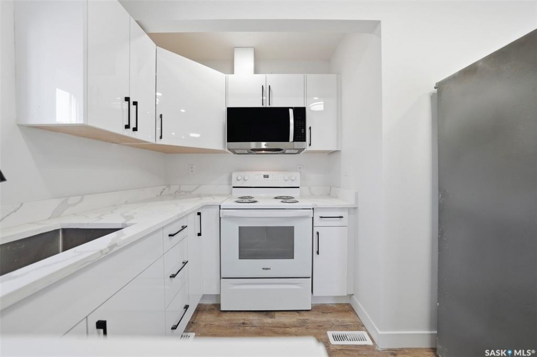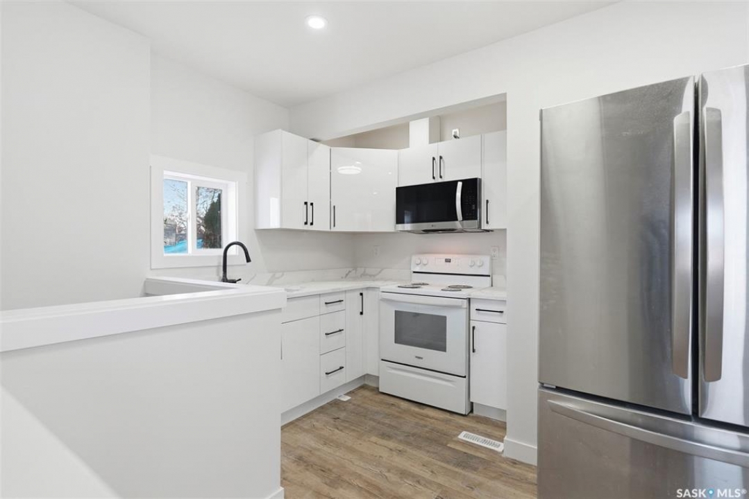 Welcome to 1001 23rd St W — a beautifully fully renovated corner home in a prime Saskatoon location! This charming property offers 2 spacious bedrooms and 2 modern washrooms, perfect for comfortable living or a great investment opportunity. Ideally situated just behind 22nd Street and minutes from downtown, you'll love the convenience of being within walking distance to a wide range of amenities, including shops, restaurants, transit, and more. The corner lot provides added privacy, extra natural light, and great curb appeal. Inside, the home has been thoughtfully updated with stylish finishes, creating a fresh and inviting atmosphere throughout. Whether you're a first-time buyer, downsizer, or investor, this move-in-ready home offers both comfort and convenience in an unbeatable location. Don't miss your chance to own this beautifully upgraded property in the heart of Saskatoon!