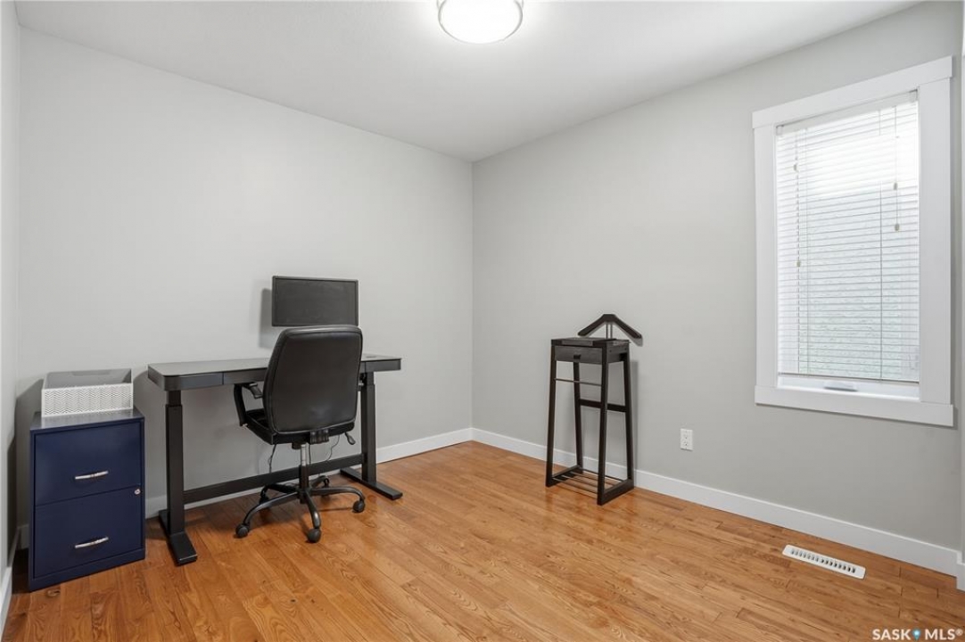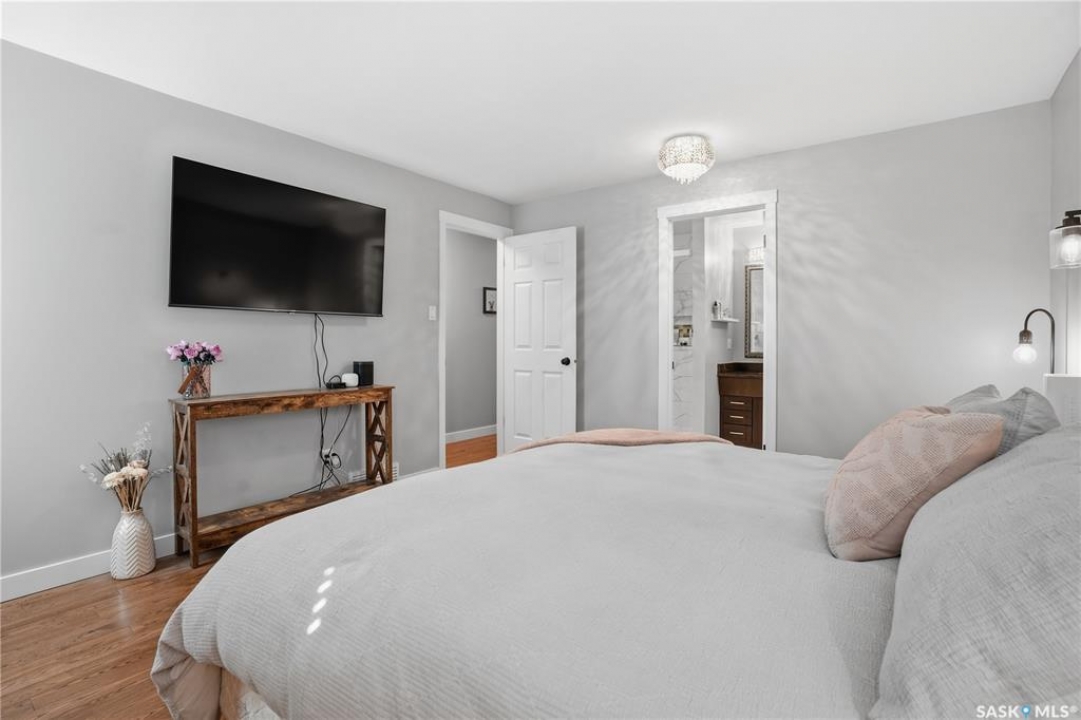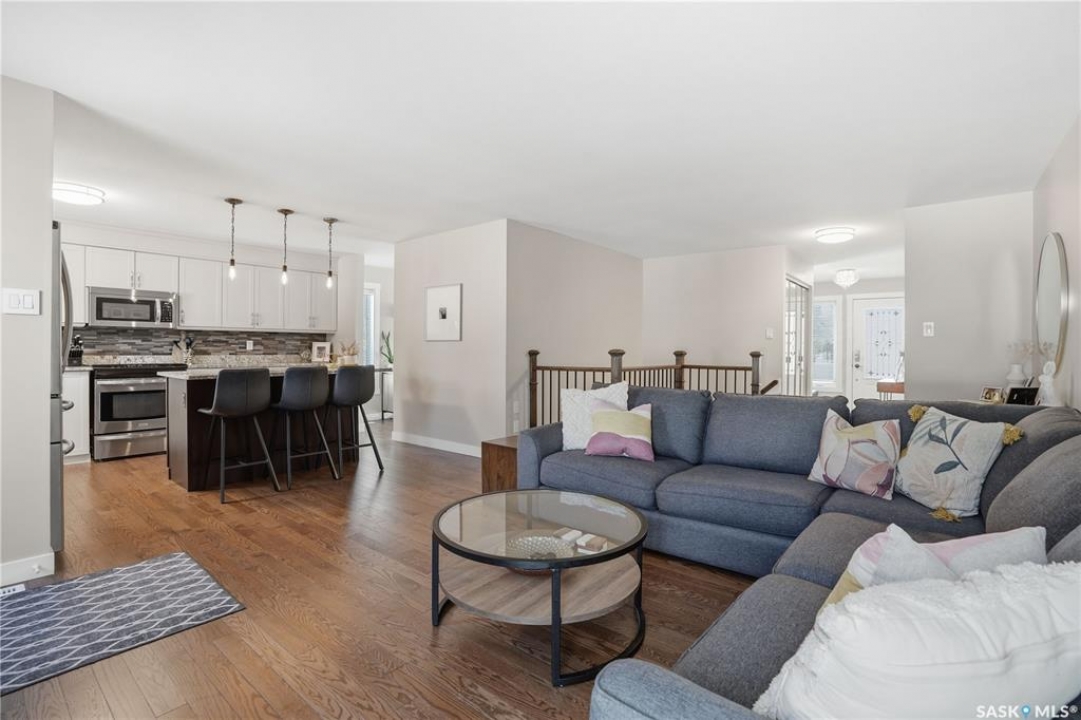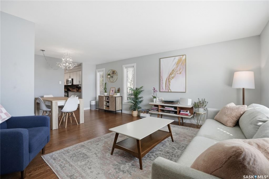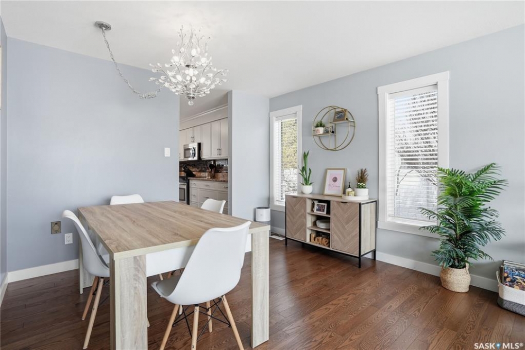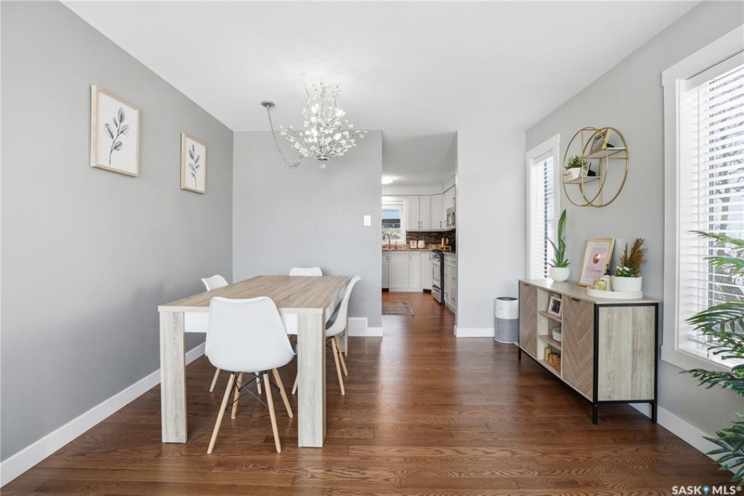 Welcome to 2206 Mahony Cres. This beautiful bungalow is located in Regina's highly sought-after community of Gardiner Park. Built in 1982, this truly impeccable 1,587 sq ft home is sure to impress! Upon entry, the warmth of sunshine paired with neutral colors is relaxing & offers a peaceful energy throughout the stylish, exquisite home. The entry welcomes you into a lovely front living area with large south-facing windows & showcases rich hardwood flooring & an airy, light feel. A natural flow from one room to the next is seamless, & the classic dining area is both timeless & versatile. The kitchen is the heart of the home & this one is a true highlight offering great space, extensive cabinetry, granite, tiled backsplash, an abundance of drawers & cabinets, updated appliances, & modern eat-up island. The cozy family with a gas fireplace & direct access to the backyard is convenient & impressive. Completing the main floor is a tiled full bathroom with quartz sink, large laundry room with storage, & three generous-sized bedrooms with the primary bedroom featuring an elegant ensuite with tiled shower, marble flooring, barn door & more! The fully developed basement adds a tremendous amount of extra living space, with 2 bedrooms (1 bedroom doesn't have a closet), workshop area, den, storage, roughed-in-plumbing area for a future bathroom, & areas perfect to relax in. Step outside to a backyard retreat with a huge composite deck, gazebo, gas bbq hook up, a shed, & it is fully fenced with mature trees. Worth noting: kitchen ('18), front driveway ('21), shingles ('19), hi-eff furnace & AC ('18), flooring, added attic insulation to R50 ('21), gas fireplace ('18), alarm system ('19), refresh of paint, & more! Lastly, a double garage (20x21) completes the home. Location is ideal - close to a park, shopping, a school, & east-end amenities! In a fantastic location, with loads of upgrades, this truly move-in ready, modern bungalow is a rare find in a family-friendly area.
