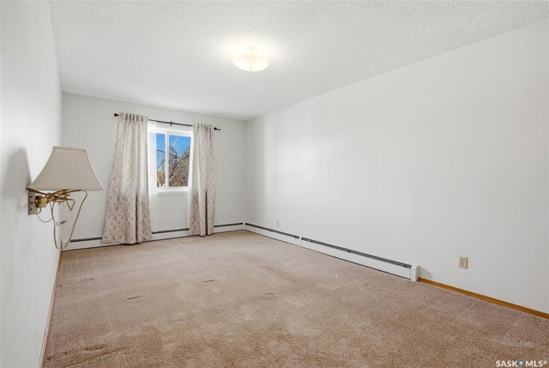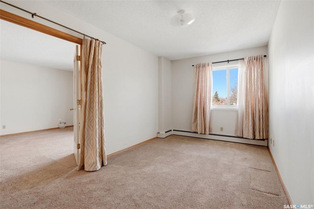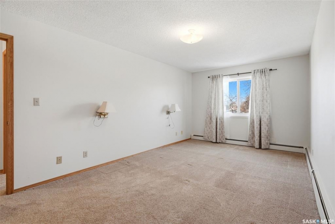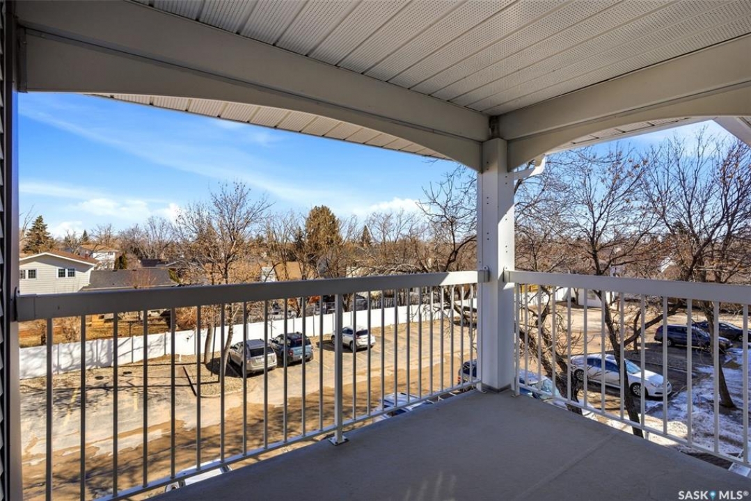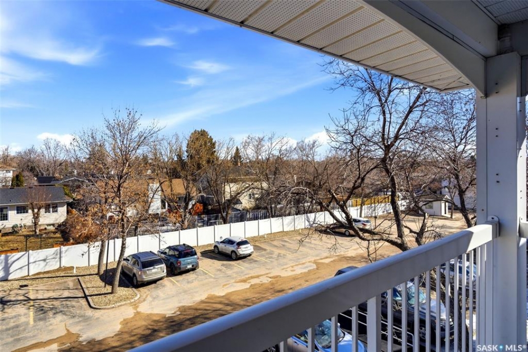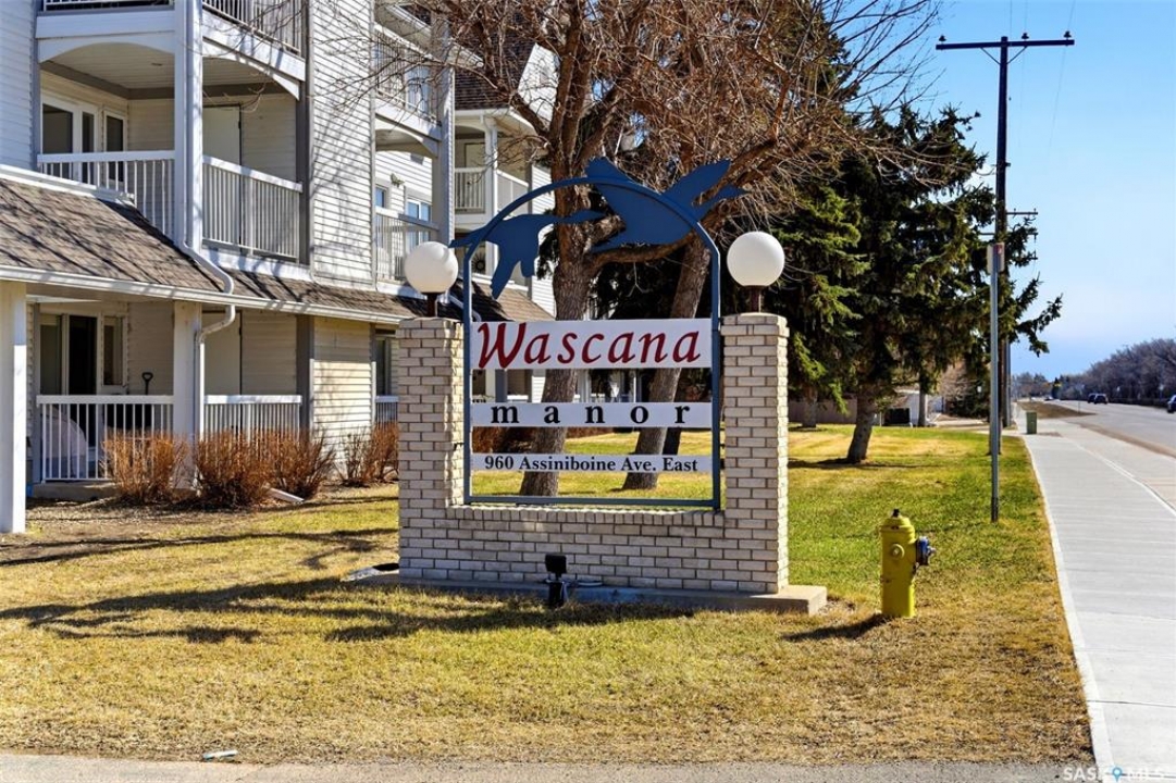 Welcome to Wascana Manor at 960 Assiniboine Avenue, set in Regina's sought-after University Park neighbourhood. This well-kept building offers a quiet, low-maintenance lifestyle just steps from walking paths and Wascana Park. This 1,163 sq ft corner top floor unit features two bedrooms and two bathrooms. Large upgraded windows bring in plenty of natural light, giving the open layout a bright, comfortable feel. The kitchen is designed with both everyday use and entertaining in mind, overlooking a spacious living area with direct access to a private balcony. The second bedroom, set behind double doors, works well as a guest room, office, or flex space. The primary bedroom offers generous proportions, a walk-in closet, and a convenient two-piece ensuite. Down the hall, you will find two additional storage closets along with a dedicated laundry room that provides more space than typically seen in condo living. A full four-piece bathroom completes the unit. Additional features include in-suite and balcony storage, a second storage unit on the third floor, elevator access, one designated parking stall (with option to rent a 2nd spot) and access to a common amenities room and fitness area. A solid opportunity to own a spacious condo in an established southeast-end location with easy access to parks, walking paths, and everyday amenities.