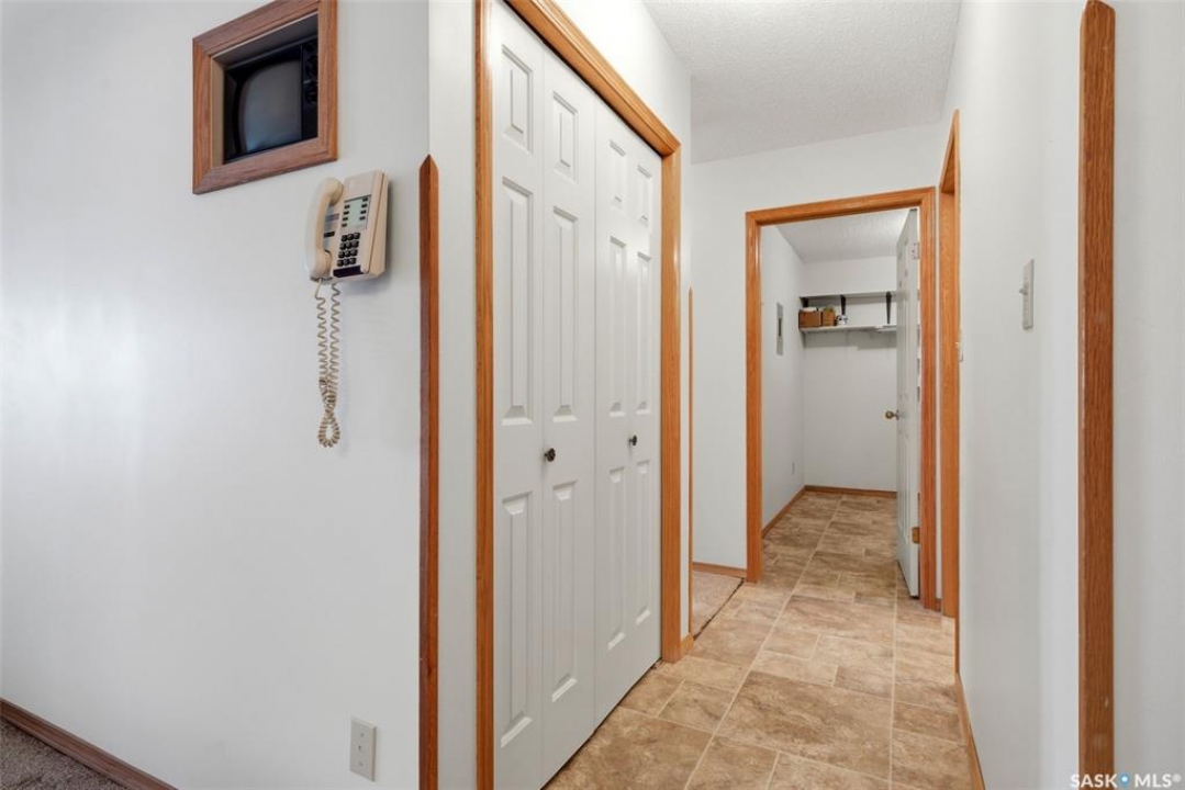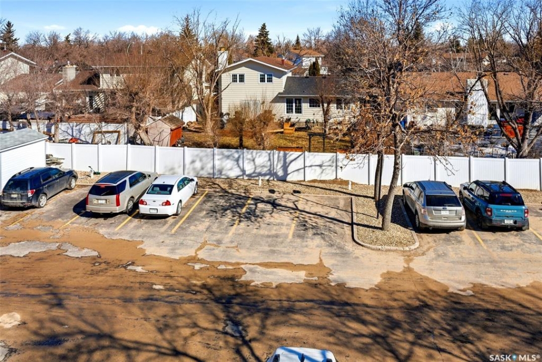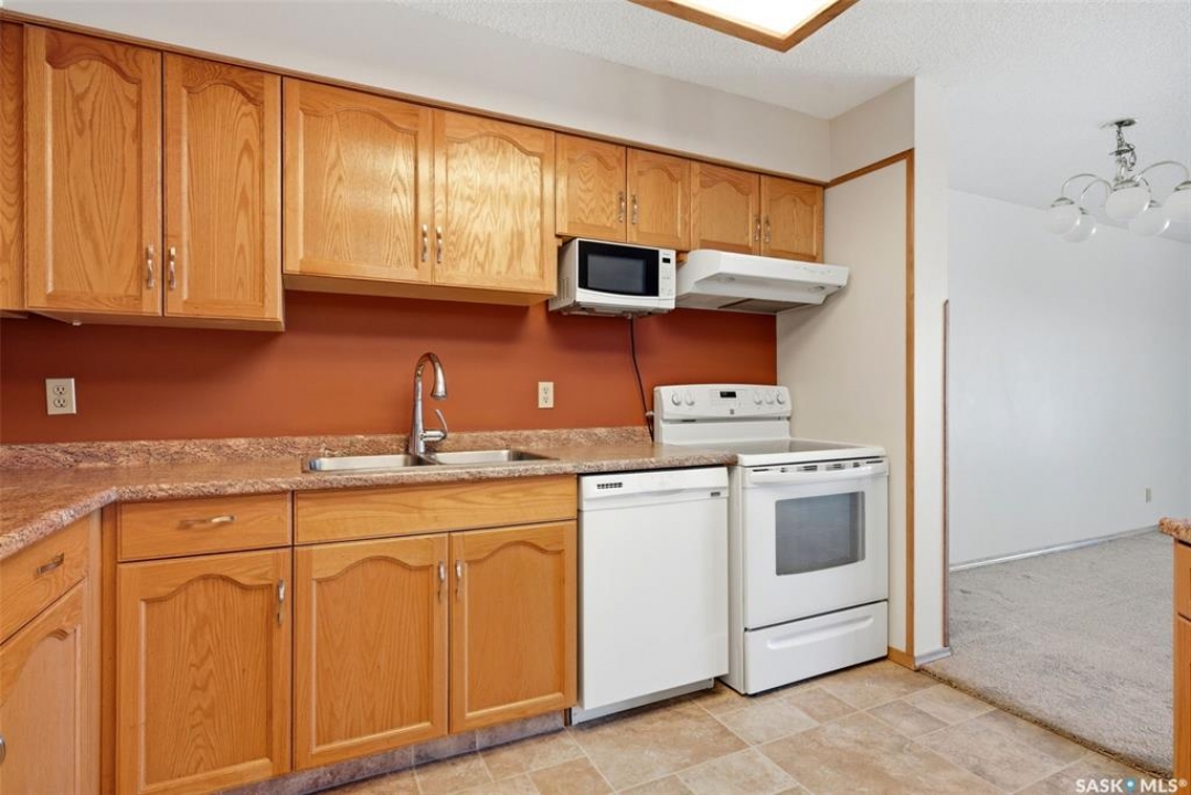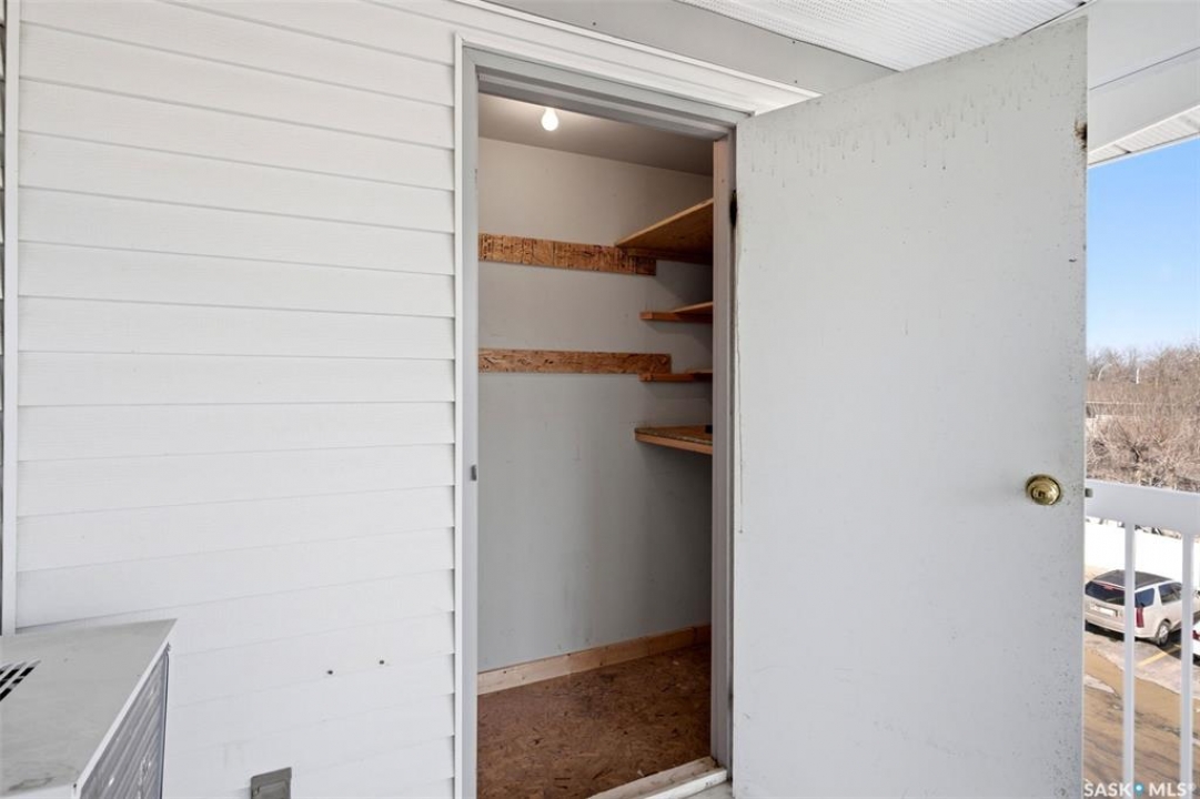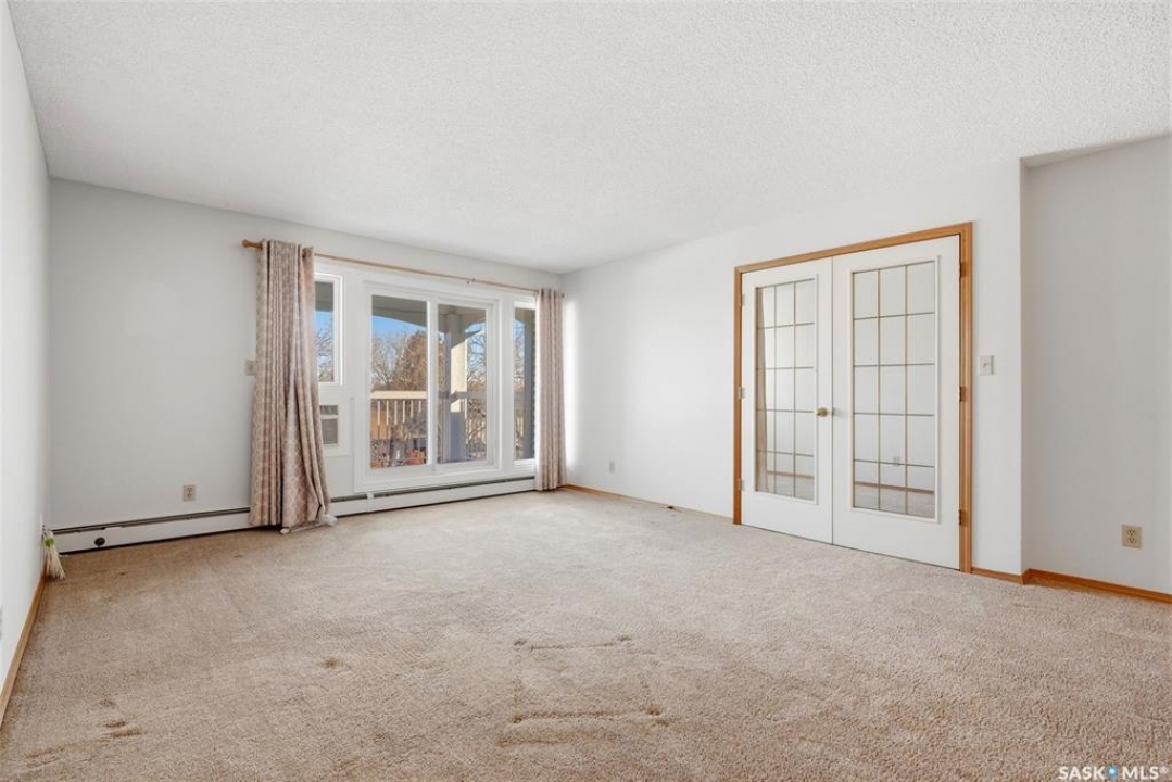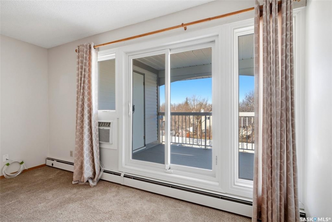 Welcome to Wascana Manor at 960 Assiniboine Avenue, set in Regina's sought-after University Park neighbourhood. This well-kept building offers a quiet, low-maintenance lifestyle just steps from walking paths and Wascana Park. This 1,163 sq ft corner top floor unit features two bedrooms and two bathrooms. Large upgraded windows bring in plenty of natural light, giving the open layout a bright, comfortable feel. The kitchen is designed with both everyday use and entertaining in mind, overlooking a spacious living area with direct access to a private balcony. The second bedroom, set behind double doors, works well as a guest room, office, or flex space. The primary bedroom offers generous proportions, a walk-in closet, and a convenient two-piece ensuite. Down the hall, you will find two additional storage closets along with a dedicated laundry room that provides more space than typically seen in condo living. A full four-piece bathroom completes the unit. Additional features include in-suite and balcony storage, a second storage unit on the third floor, elevator access, one designated parking stall (with option to rent a 2nd spot) and access to a common amenities room and fitness area. A solid opportunity to own a spacious condo in an established southeast-end location with easy access to parks, walking paths, and everyday amenities.