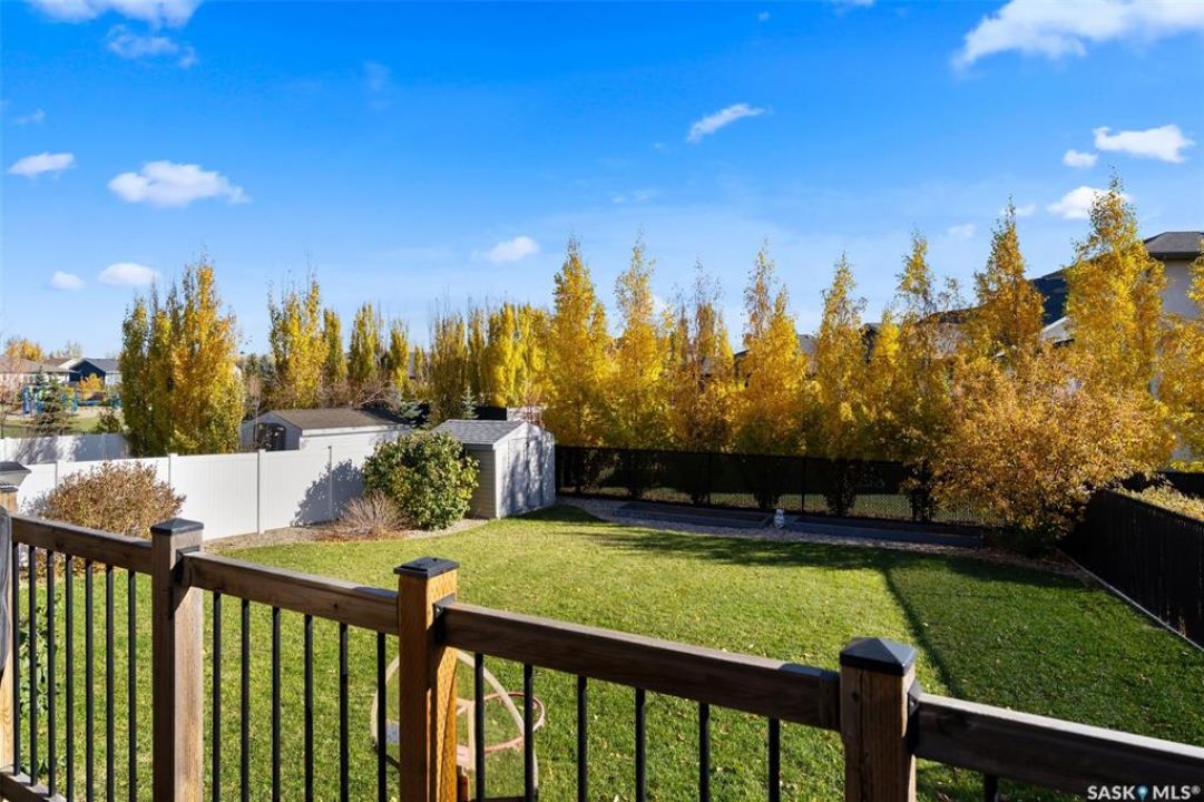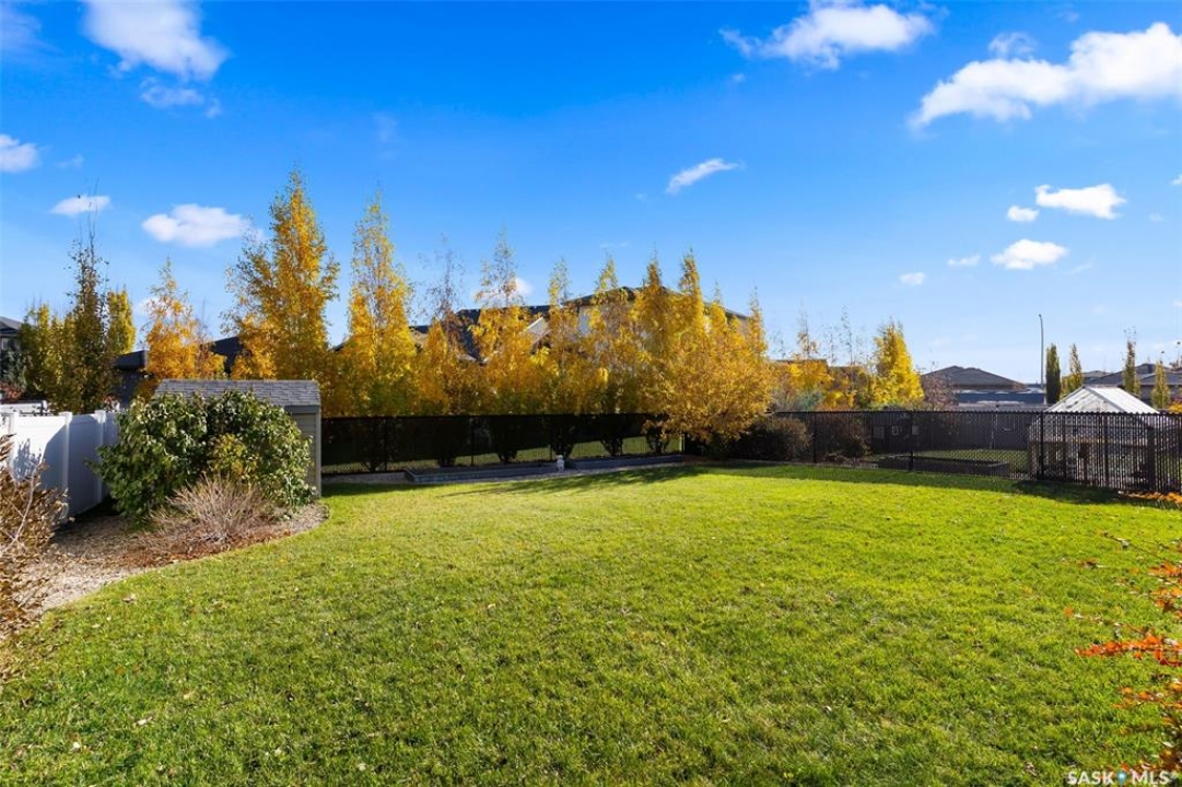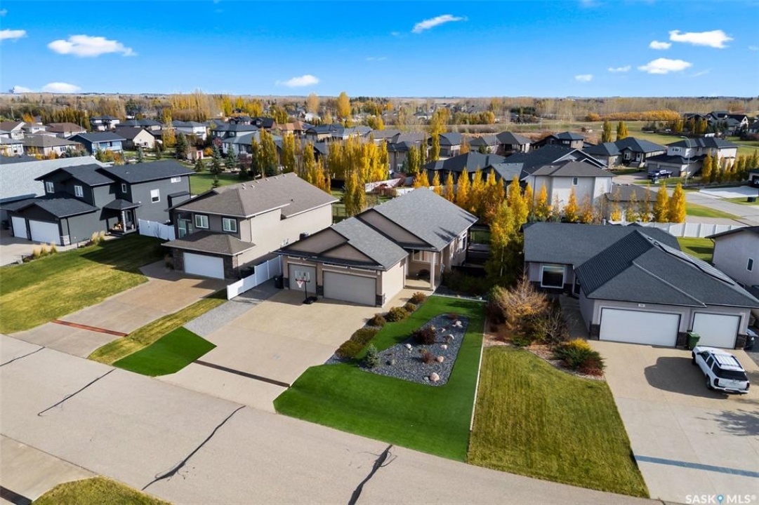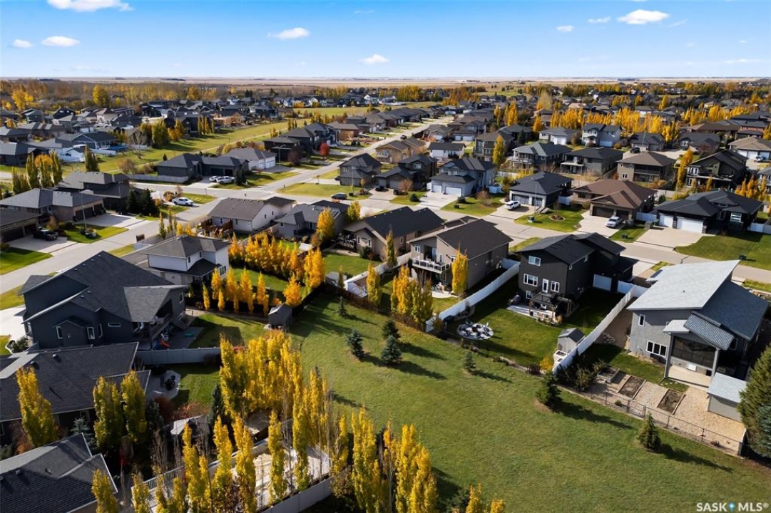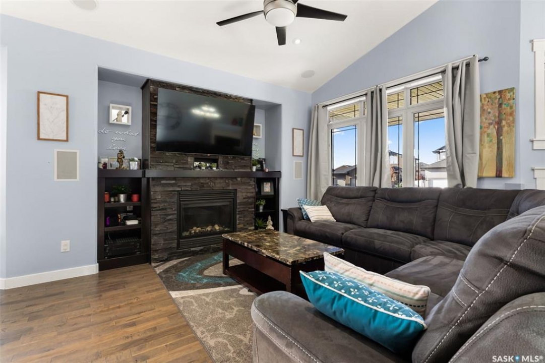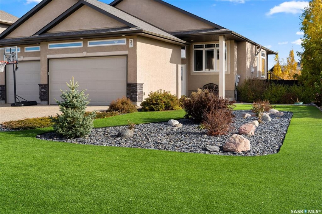 Welcome to 37 Churchill Crescent, White City – A move-in-ready family home just minutes from Regina and an easy walk to the brand-new school. From the moment you arrive, the xeriscaped front yard delivers jaw-dropping curb appeal with almost zero upkeep. Step inside to soaring vaulted ceilings, designer pot lights, and sunlight pouring across the open main floor. A stacked-stone gas fireplace anchors the living room, flowing seamlessly into the dining area and a chef-worthy kitchen featuring rich espresso maple cabinetry, granite counters, a huge eat-up island, walk-in pantry, and direct access to the covered veranda for effortless indoor-outdoor living. The private primary suite is a true retreat with its own deck door, spa-like 4-piece ensuite, and spacious walk-in closet. Two more bright bedrooms with clever recessed closets, a stylish 4-piece main bath, and convenient main-floor laundry round out the main level. Downstairs, the fully finished basement is built for fun and comfort: massive family room, dedicated games area, sleek wet bar, an oversized fourth bedroom, full 4-piece bath, and tons of storage. Builder spray-foam insulation keeps everything cozy and energy bills low. The heated 32'×26' triple garage with 14' ceilings and room for a car lift (negotiable) is a rare gem. The backyard is pure joy: hot tub, fenced dog run, raised garden beds, storage shed, underground sprinklers, and a huge covered veranda that extends the season. Meticulously maintained, loaded with upgrades, and ready for you to move in – this is the turn-key White City dream home you've been waiting for. Come fall in love today.