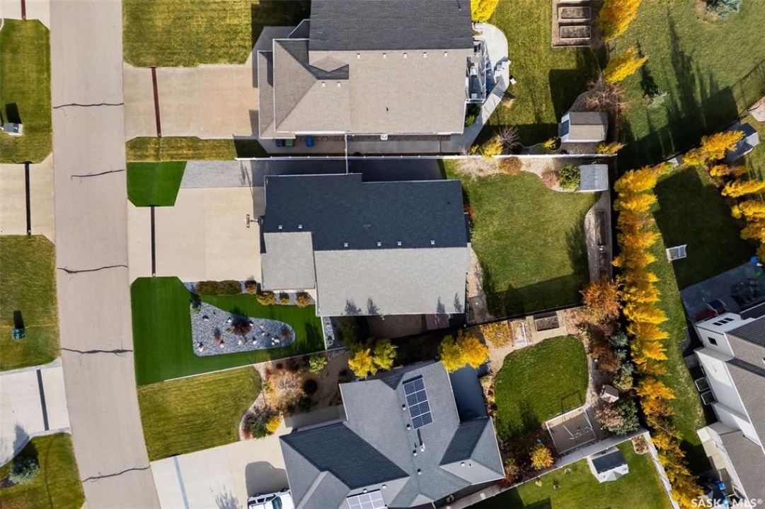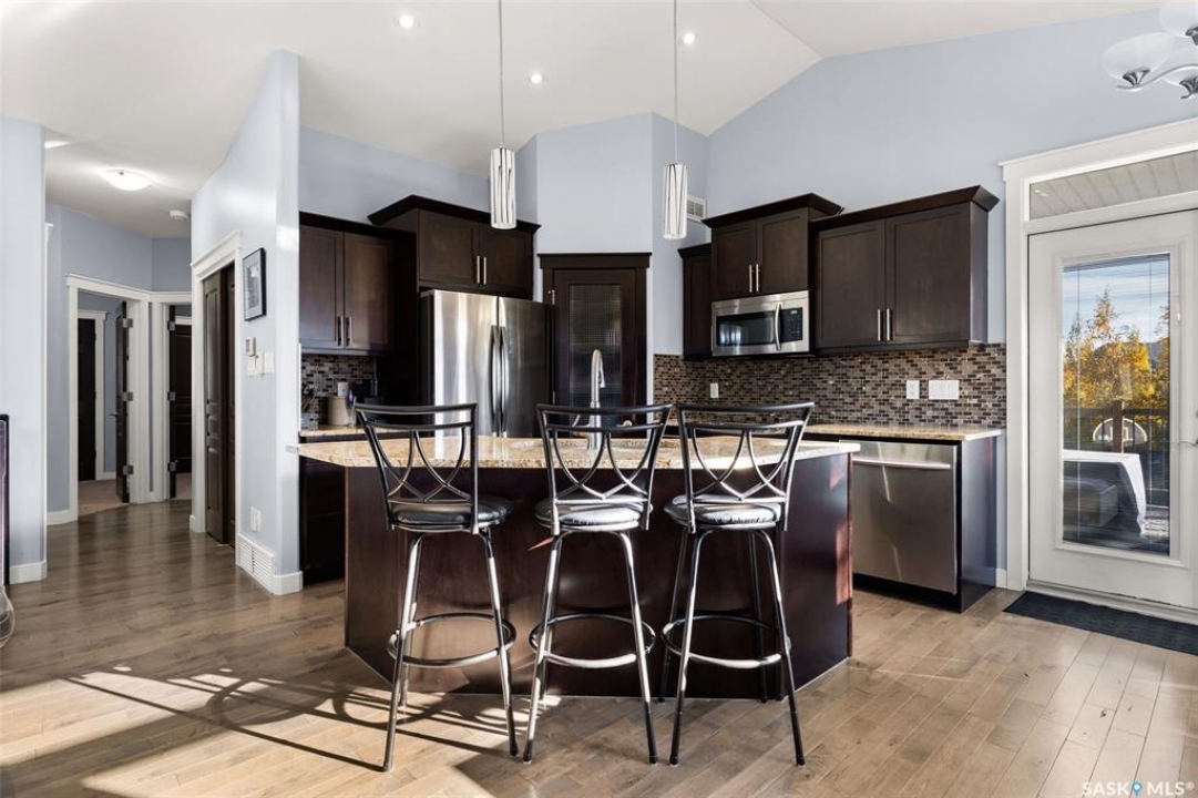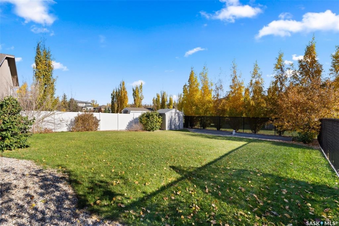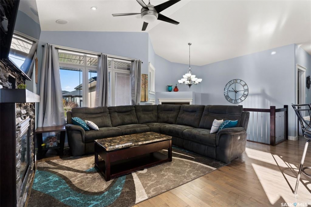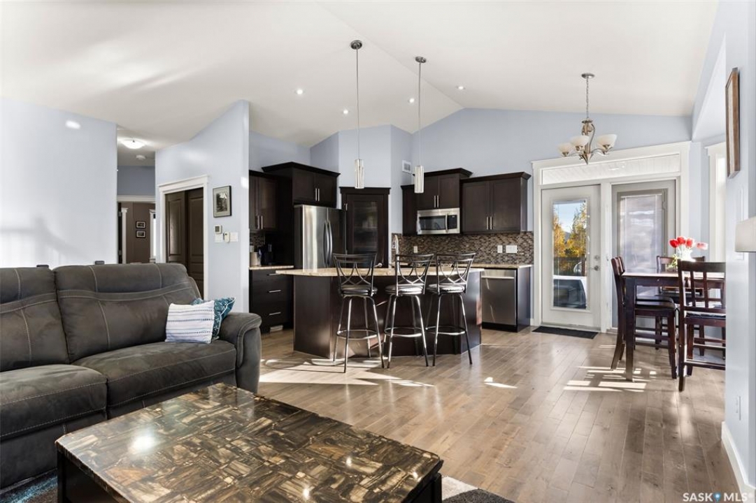 Welcome to 37 Churchill Crescent, White City – A move-in-ready family home just minutes from Regina and an easy walk to the brand-new school. From the moment you arrive, the xeriscaped front yard delivers jaw-dropping curb appeal with almost zero upkeep. Step inside to soaring vaulted ceilings, designer pot lights, and sunlight pouring across the open main floor. A stacked-stone gas fireplace anchors the living room, flowing seamlessly into the dining area and a chef-worthy kitchen featuring rich espresso maple cabinetry, granite counters, a huge eat-up island, walk-in pantry, and direct access to the covered veranda for effortless indoor-outdoor living. The private primary suite is a true retreat with its own deck door, spa-like 4-piece ensuite, and spacious walk-in closet. Two more bright bedrooms with clever recessed closets, a stylish 4-piece main bath, and convenient main-floor laundry round out the main level. Downstairs, the fully finished basement is built for fun and comfort: massive family room, dedicated games area, sleek wet bar, an oversized fourth bedroom, full 4-piece bath, and tons of storage. Builder spray-foam insulation keeps everything cozy and energy bills low. The heated 32'×26' triple garage with 14' ceilings and room for a car lift (negotiable) is a rare gem. The backyard is pure joy: hot tub, fenced dog run, raised garden beds, storage shed, underground sprinklers, and a huge covered veranda that extends the season. Meticulously maintained, loaded with upgrades, and ready for you to move in – this is the turn-key White City dream home you've been waiting for. Come fall in love today.