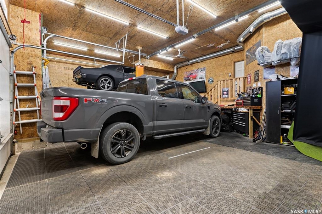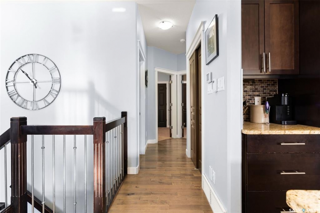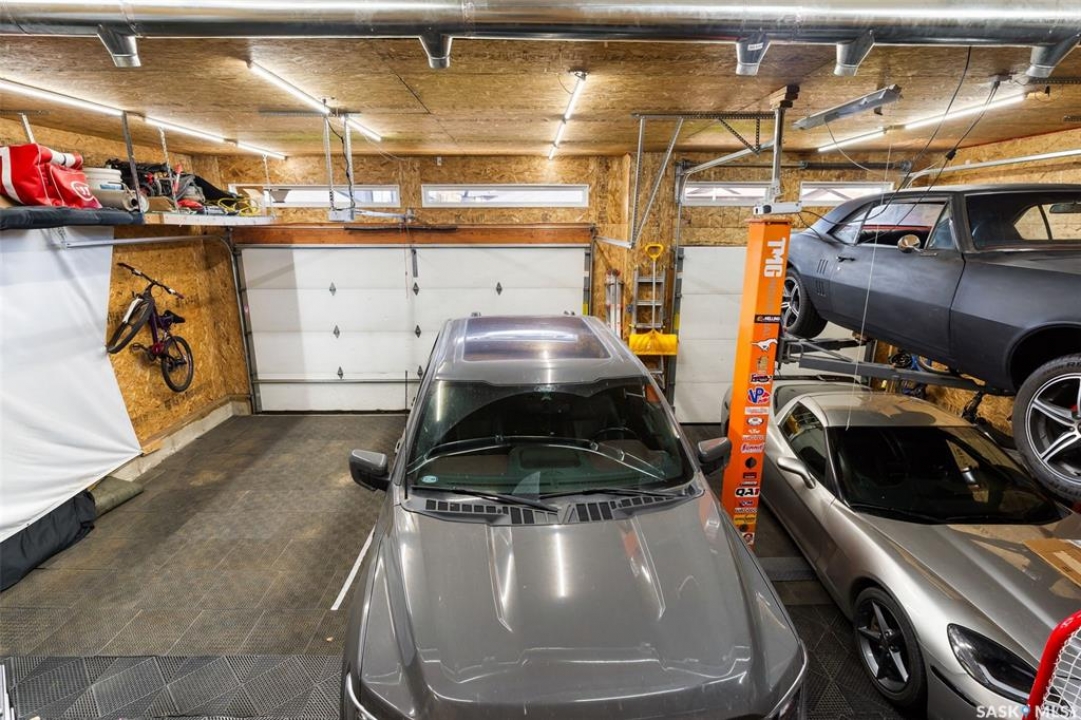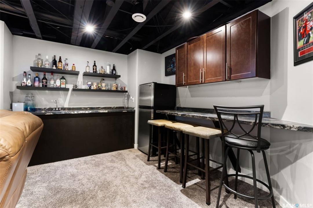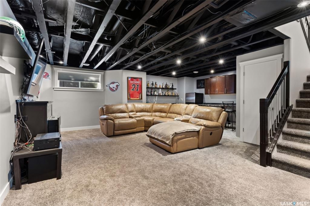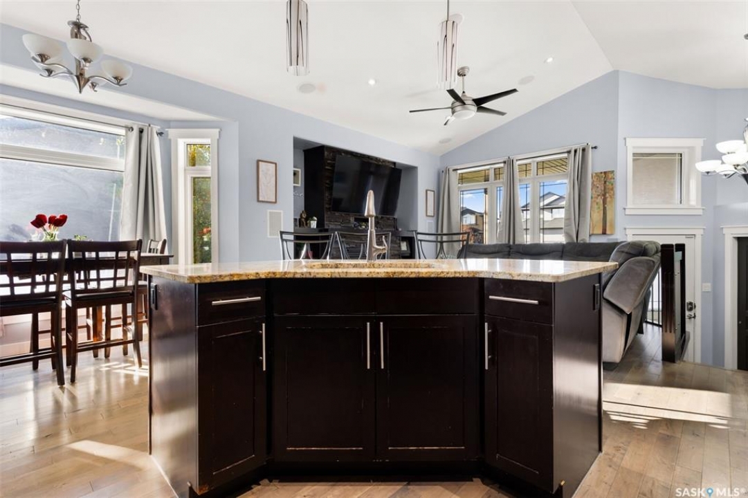 Welcome to 37 Churchill Crescent, White City – A move-in-ready family home just minutes from Regina and an easy walk to the brand-new school. From the moment you arrive, the xeriscaped front yard delivers jaw-dropping curb appeal with almost zero upkeep. Step inside to soaring vaulted ceilings, designer pot lights, and sunlight pouring across the open main floor. A stacked-stone gas fireplace anchors the living room, flowing seamlessly into the dining area and a chef-worthy kitchen featuring rich espresso maple cabinetry, granite counters, a huge eat-up island, walk-in pantry, and direct access to the covered veranda for effortless indoor-outdoor living. The private primary suite is a true retreat with its own deck door, spa-like 4-piece ensuite, and spacious walk-in closet. Two more bright bedrooms with clever recessed closets, a stylish 4-piece main bath, and convenient main-floor laundry round out the main level. Downstairs, the fully finished basement is built for fun and comfort: massive family room, dedicated games area, sleek wet bar, an oversized fourth bedroom, full 4-piece bath, and tons of storage. Builder spray-foam insulation keeps everything cozy and energy bills low. The heated 32'×26' triple garage with 14' ceilings and room for a car lift (negotiable) is a rare gem. The backyard is pure joy: hot tub, fenced dog run, raised garden beds, storage shed, underground sprinklers, and a huge covered veranda that extends the season. Meticulously maintained, loaded with upgrades, and ready for you to move in – this is the turn-key White City dream home you've been waiting for. Come fall in love today.
