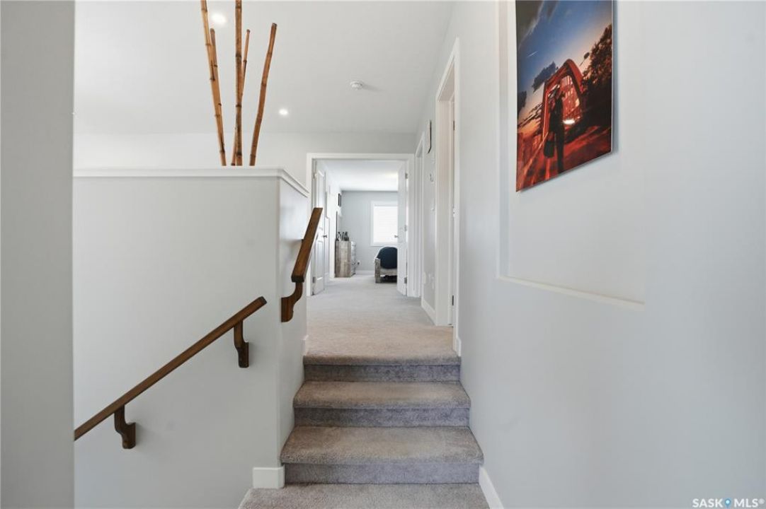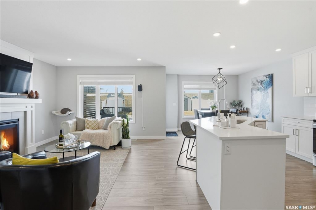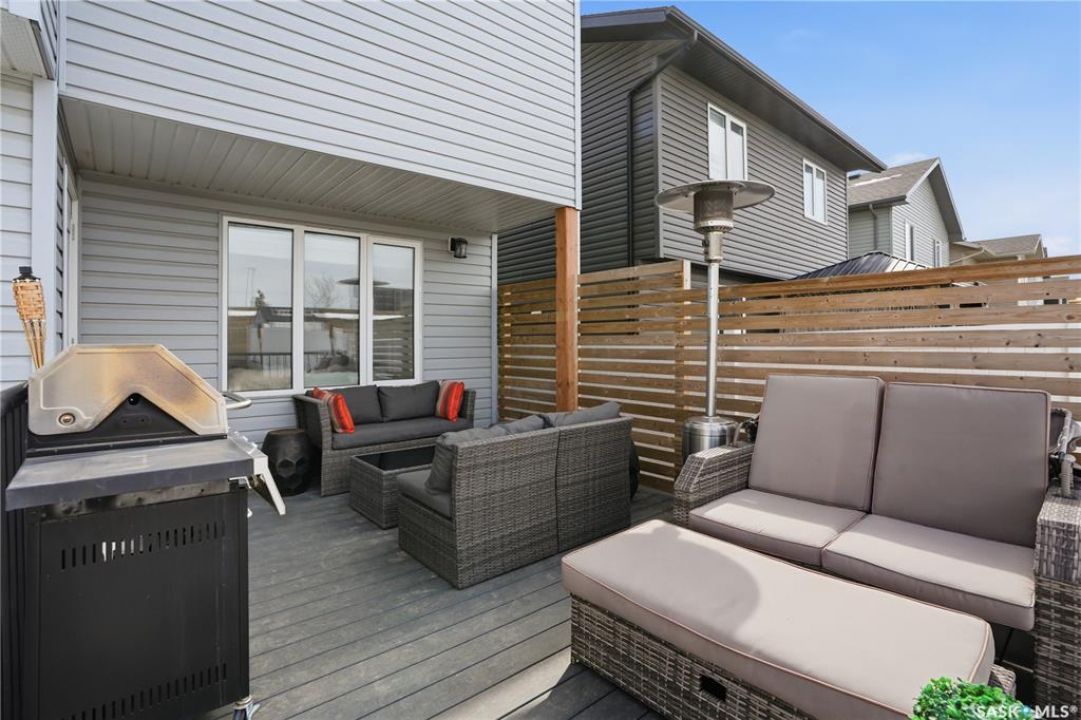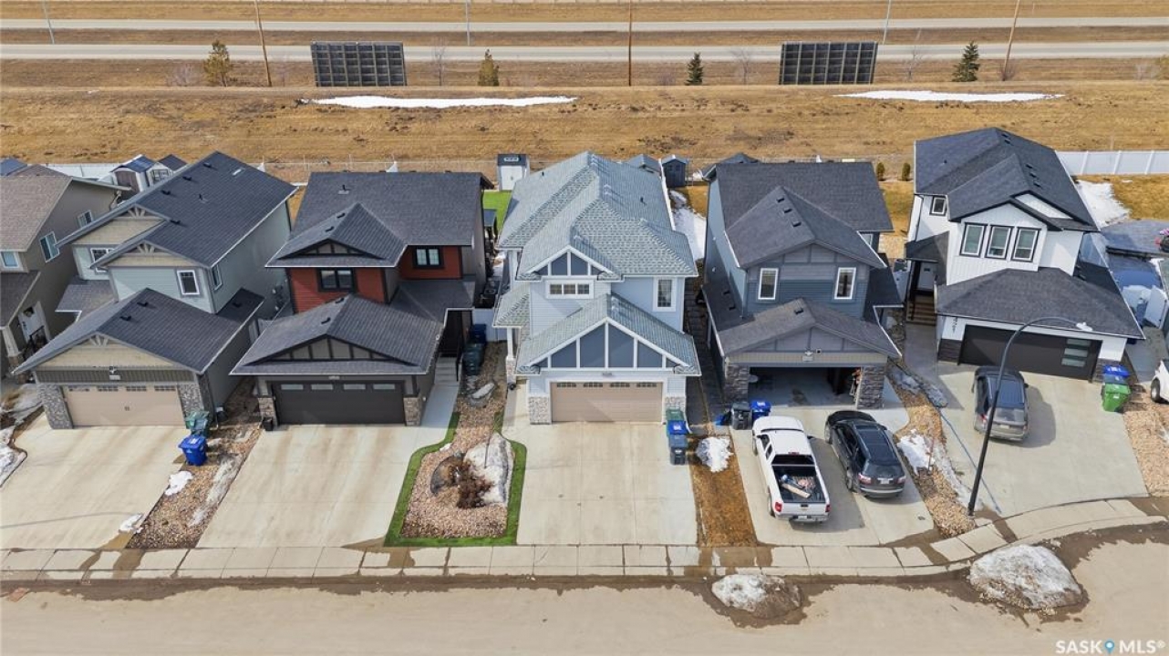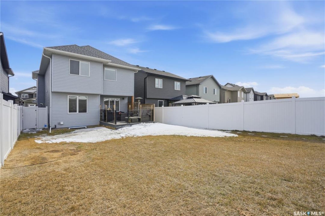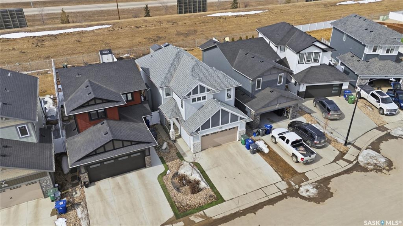 Better than brand new and truly move-in ready, this stunning two-storey home is set on one of Brighton's most sought-after, family-friendly streets. Enjoy a welcoming sense of community where kids play outside and neighbours connect, exceptional privacy with no rear neighbours. The vinyl and stone exterior offers great curb appeal, with a double concrete driveway leading to an insulated attached garage with a brand-new natural gas heater on its own smart thermostat. Step into the fully fenced west-facing backyard—perfect for family time and entertaining, featuring a composite deck with privacy wall and a 30' x 6' raised garden with inset steps, and an 8' x 10' storage shed. Inside, the bright open-concept main floor is designed for everyday living, with large windows, a cozy gas fireplace, and a stylish kitchen with white cabinetry, quartz countertops, stainless steel appliances, an oversized island, fridge with water and ice, and a convection/air fryer oven. The dining area overlooks the backyard, while a powder room and direct garage access complete the main level. Upstairs offers space for the whole family with 10-foot ceilings in the secondary bedrooms, a spacious bonus room, convenient laundry, and two generous bedrooms. The primary suite is a true retreat, featuring double French doors, a walk-in closet with custom cabinetry, and a spa-like ensuite with a deep soaker tub, oversized shower, and dual sinks. Additional highlights include an oversized A/C unit, Google Nest smart thermostat, central vacuum with attachments, recently serviced HVAC and furnace, and an unfinished basement roughed-in for future development. Located just minutes from parks, ponds, walking trails, and amenities—and only seven minutes to the University of Saskatchewan—this home offers the perfect blend of family living, community, and modern comfort. A rare opportunity on one of Brighton's best streets—this is the kind of home families wait for.